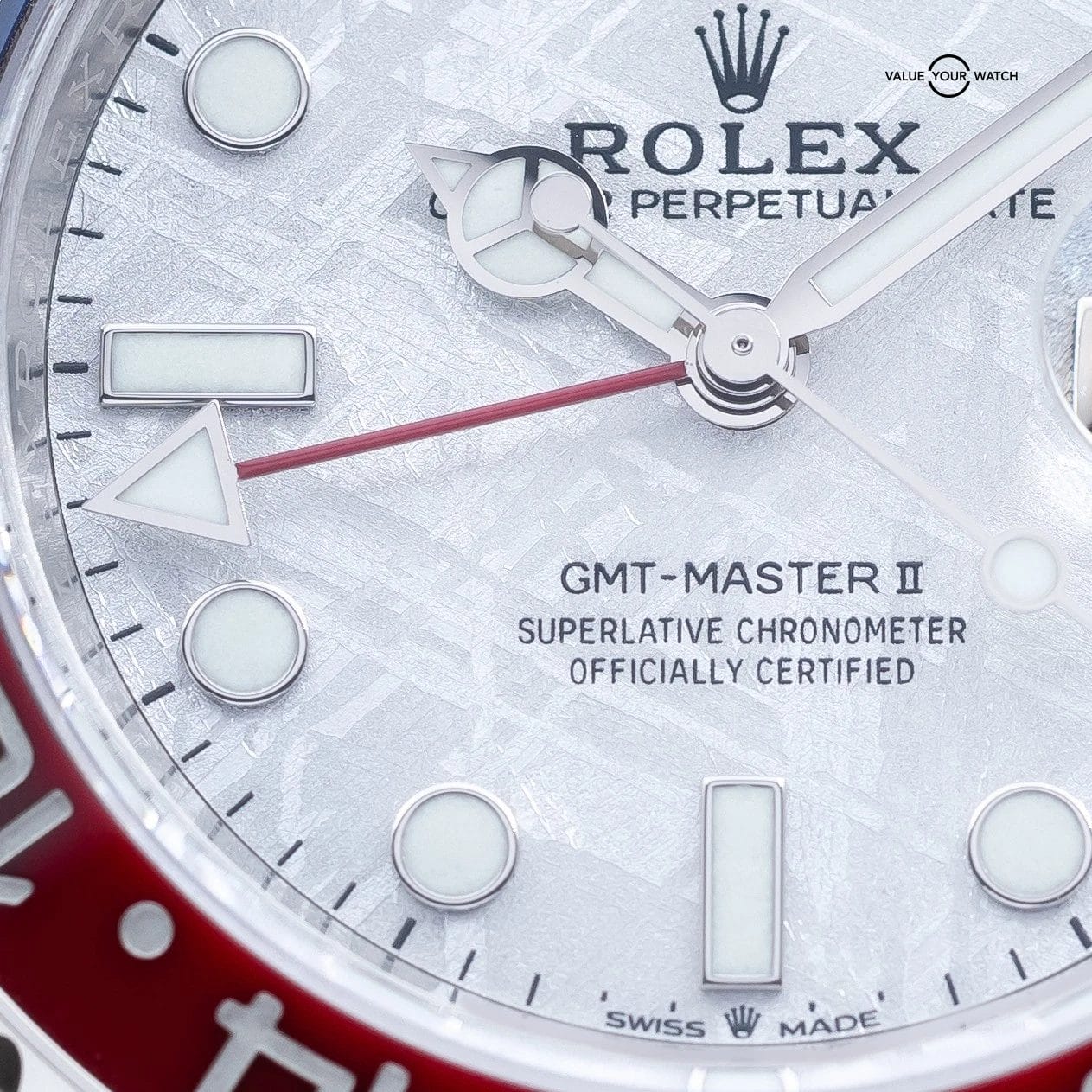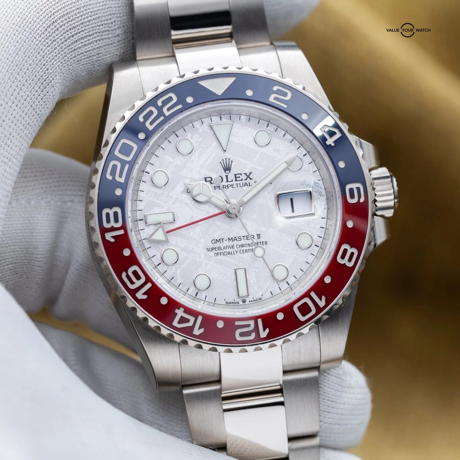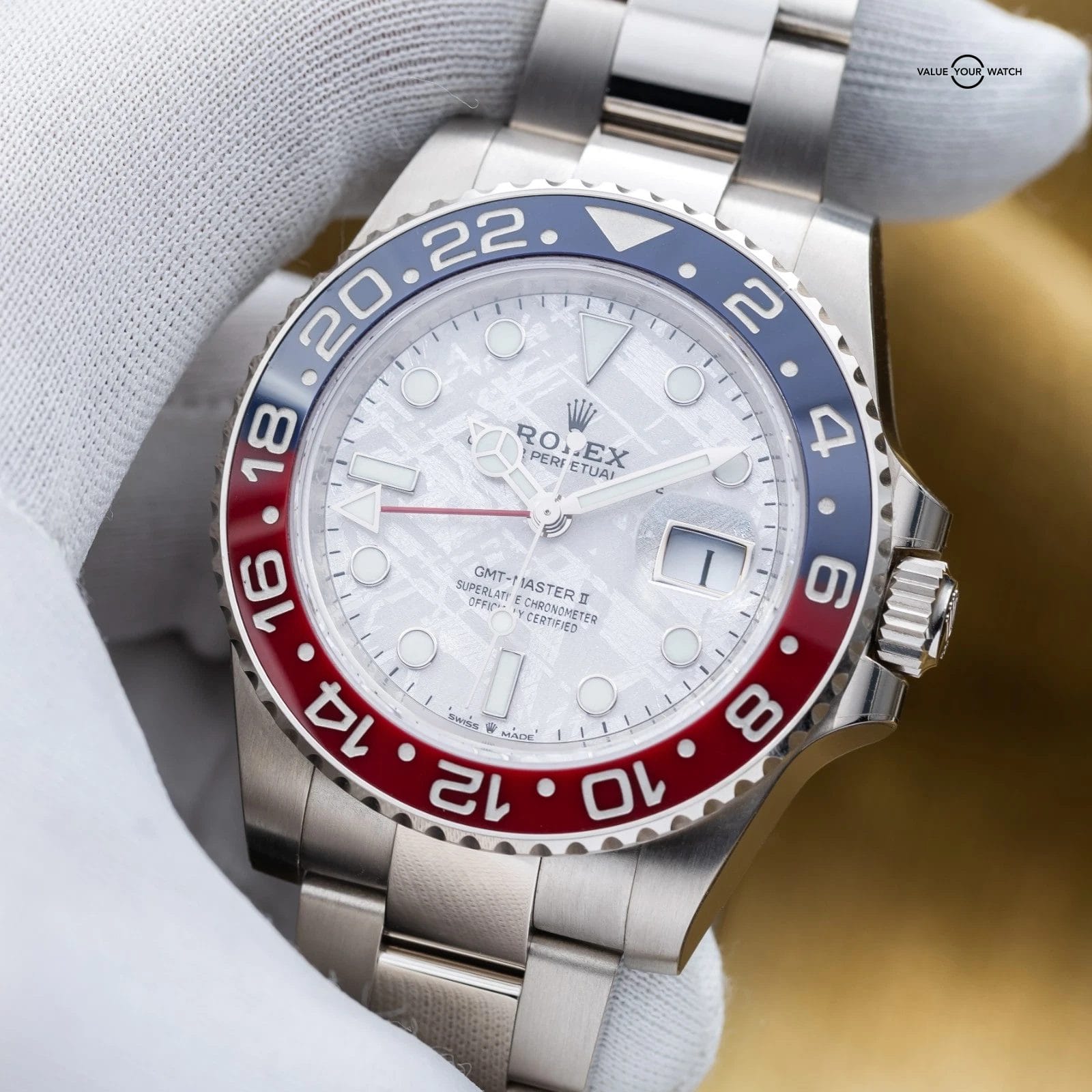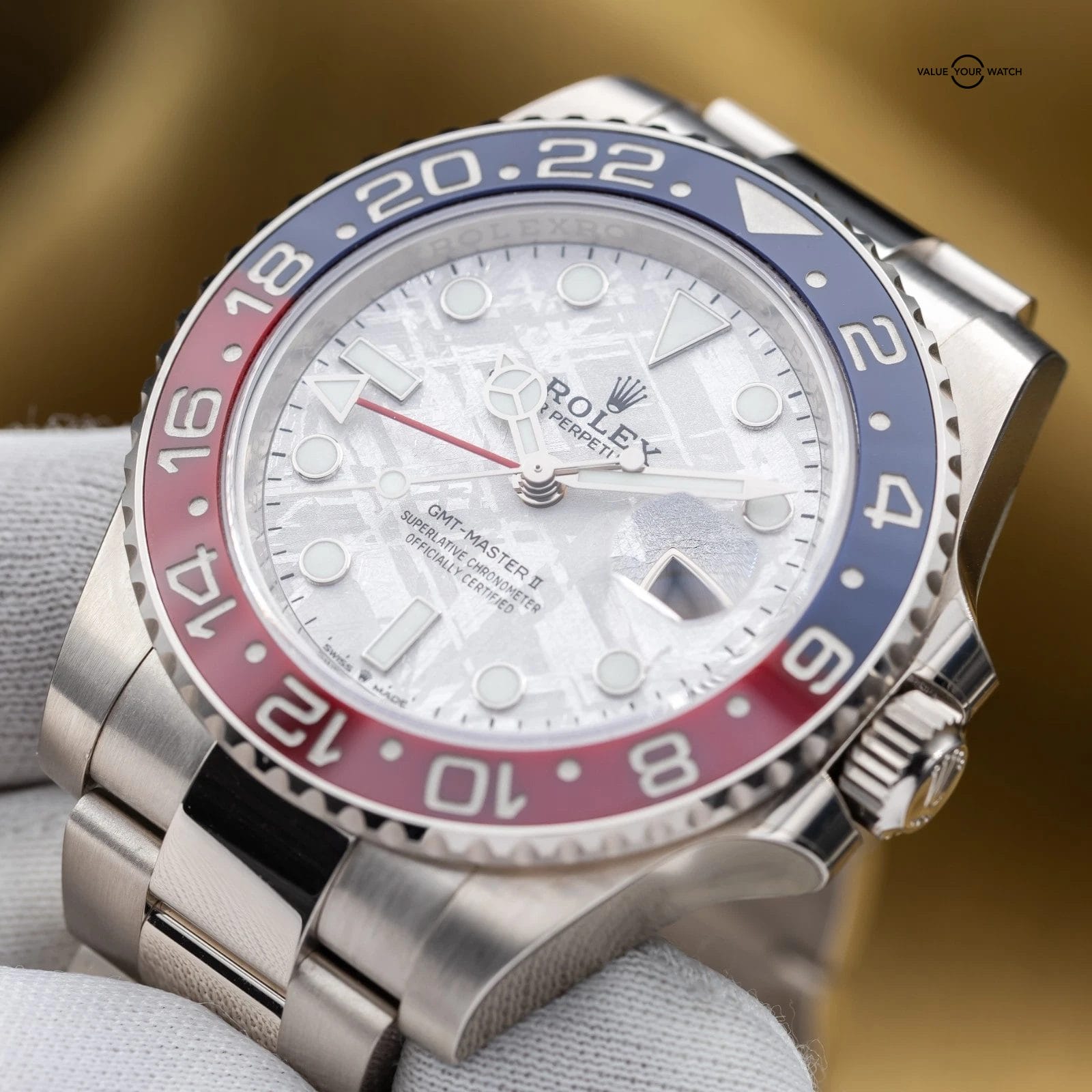 Specification: Rolex GMT Master II Pepsi Meteorite Dial White Gold 40mm 126719BLRO – Full Set