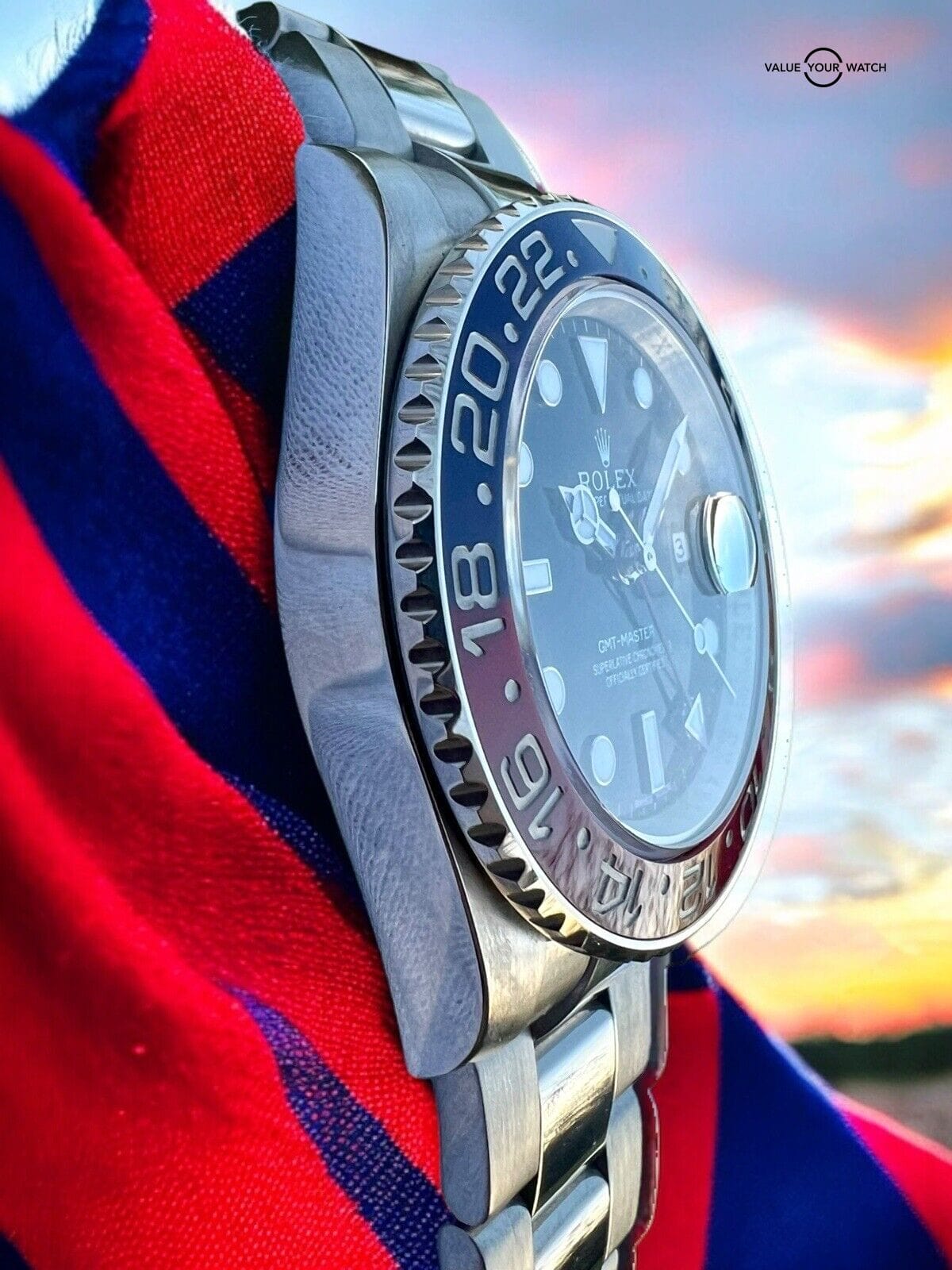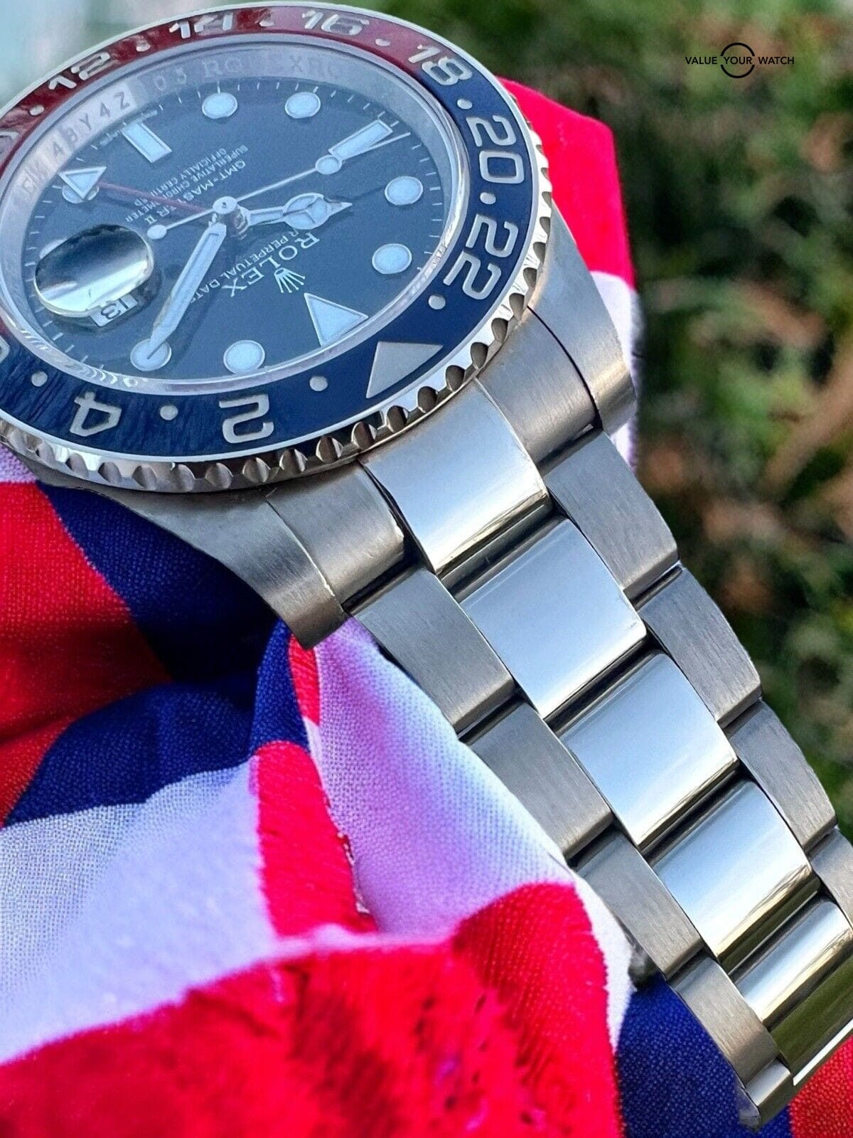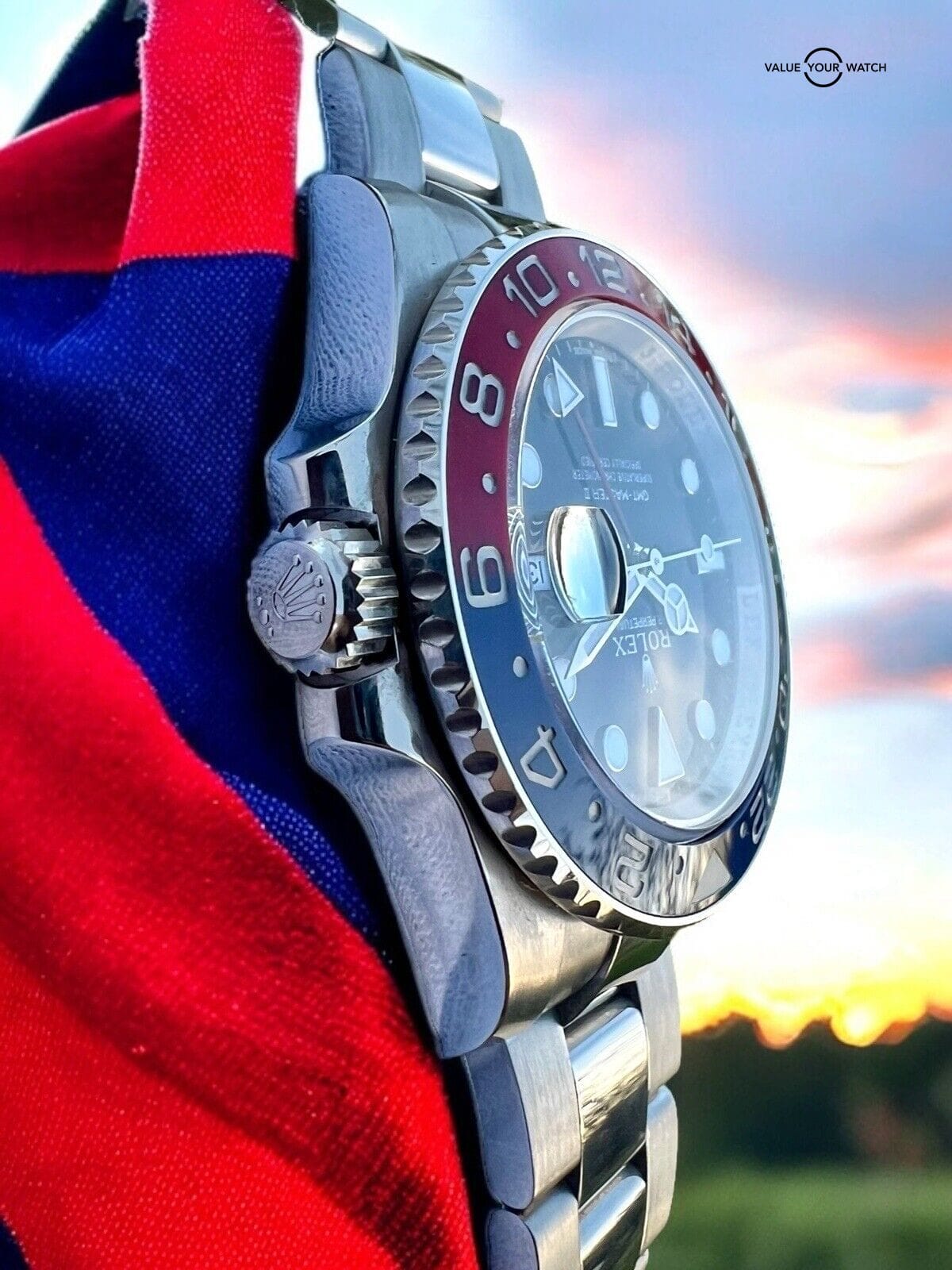 This gorgeous solid white gold GMT Master II Pepsi comes with its original box and papers/card and is in very good condition. The watch has been professionally inspected and tested and has a clean bill of health, ready for its next owner to enjoy for years to come.