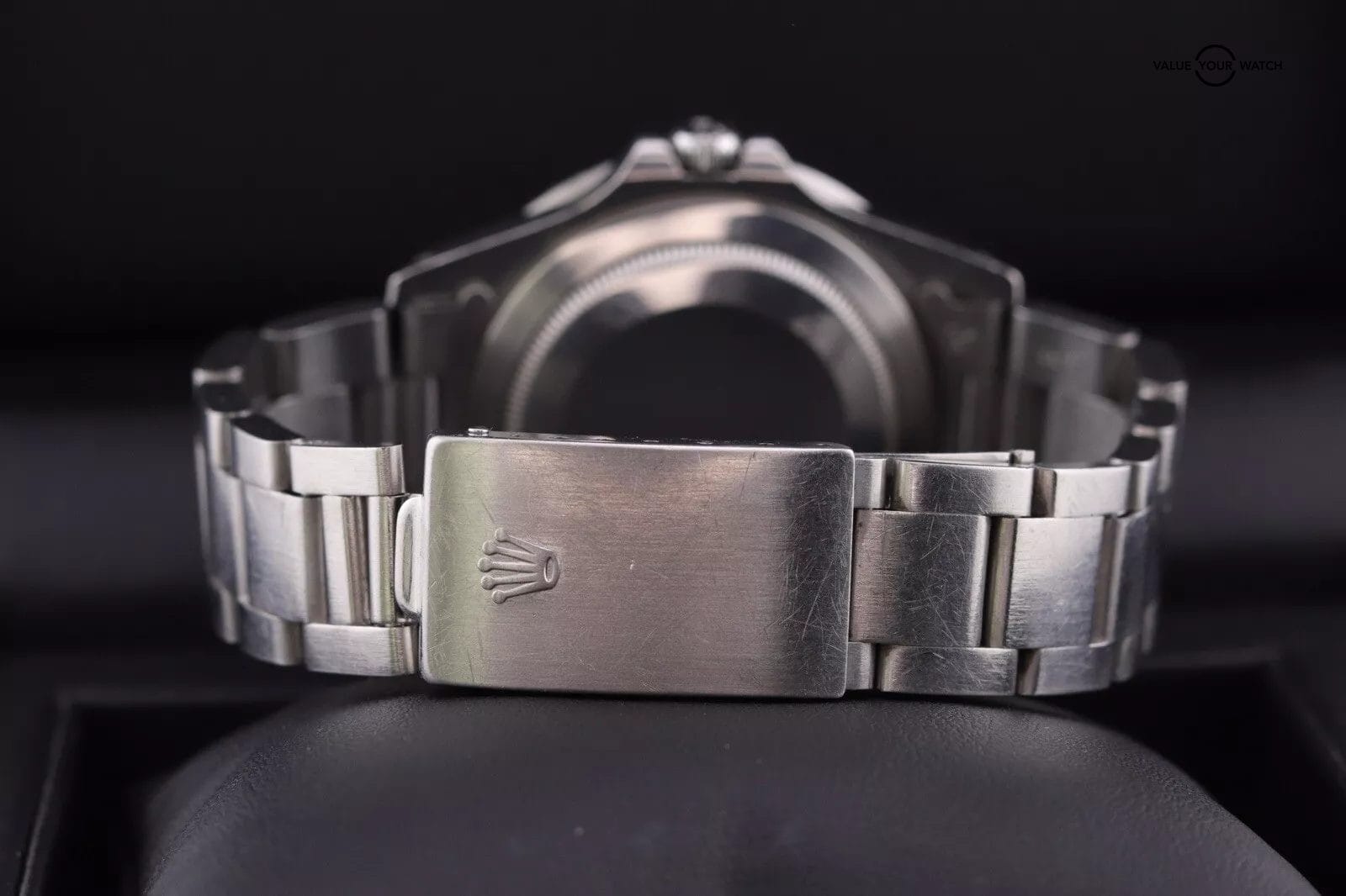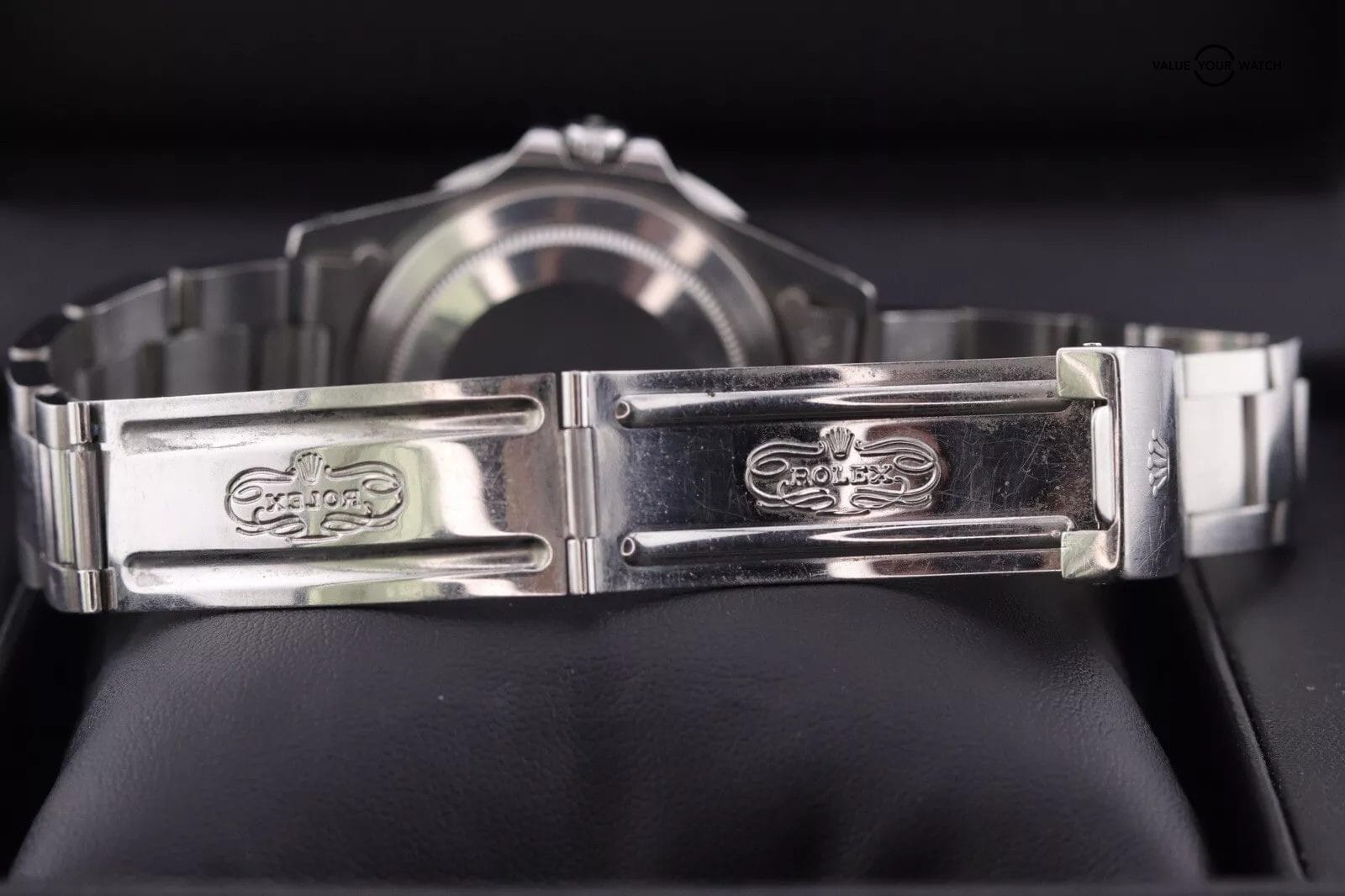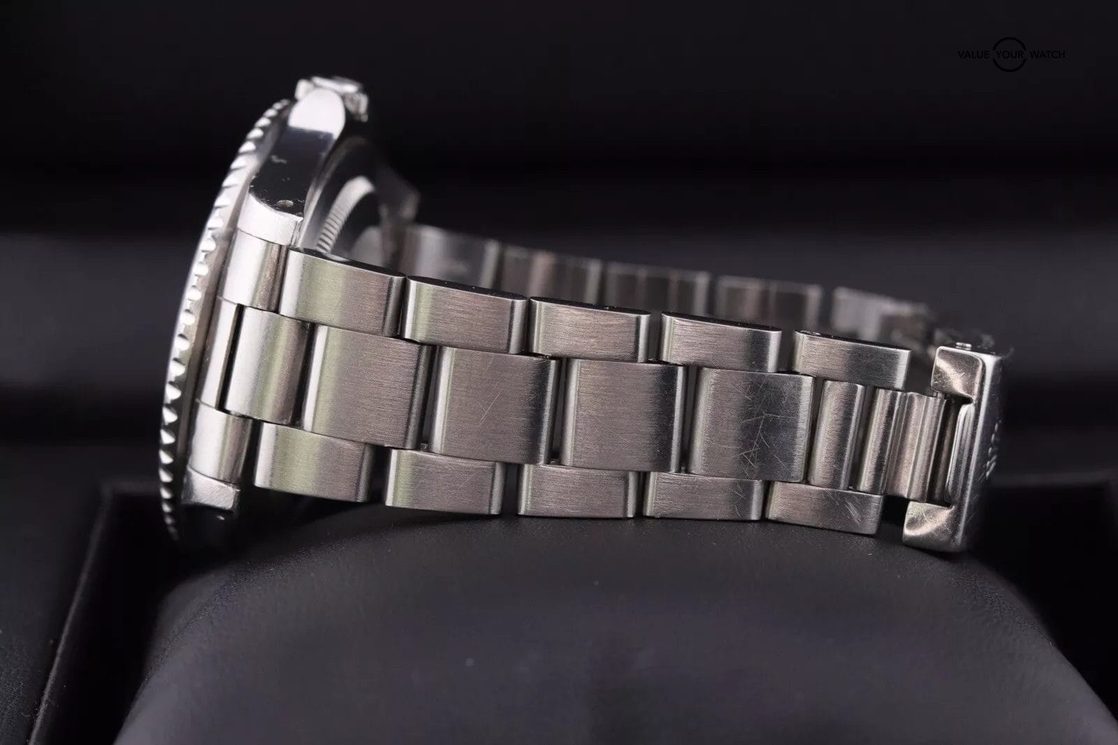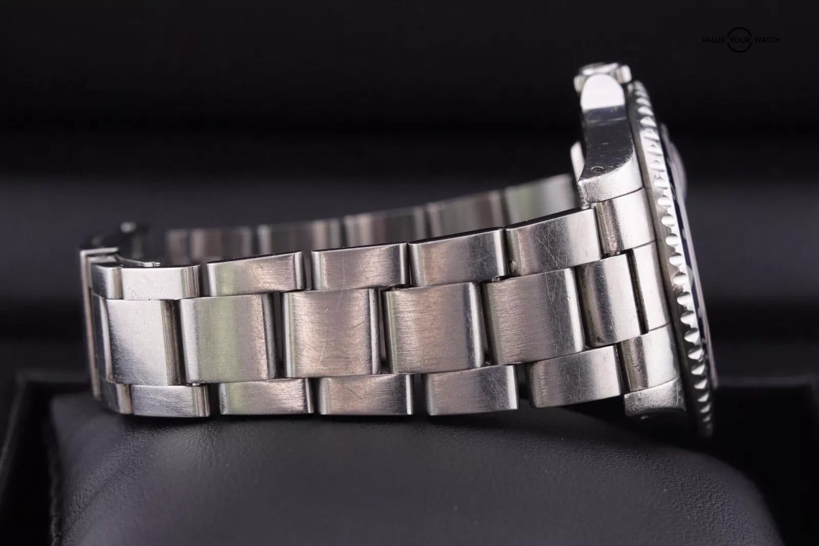 – This piece shows your typical wear for a vintage watch of its age. There are light scratches throughout the case and bracelet, a handful of deeper marks mostly on case edges, the insert has scratches, the crystal and dial are clean! The movement runs great for a vintage piece at an acceptable +13 s/d and 250 amp. The date changes on time and time setting functions are in working order.