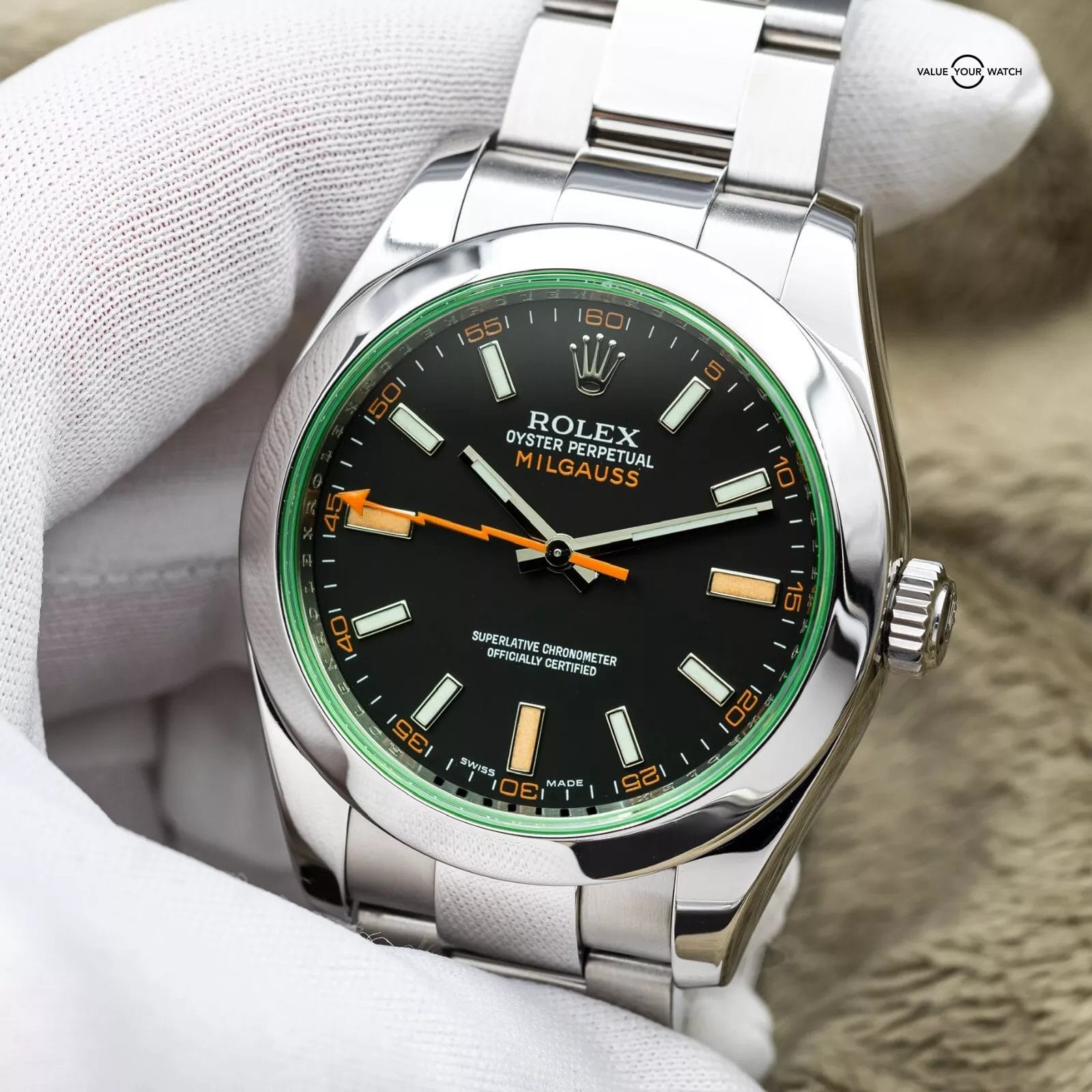 Up on offer is this recently discontinued Milgauss black dial. It is a 2012 box and papers set in immaculate condition. You can’t buy this one from Rolex anymore but this is your chance to grab one. The perfect case size at 40mm, the unique green crystal, orange lightning bolt seconds hand and anti-magnetic properties that made the Milgauss famous.