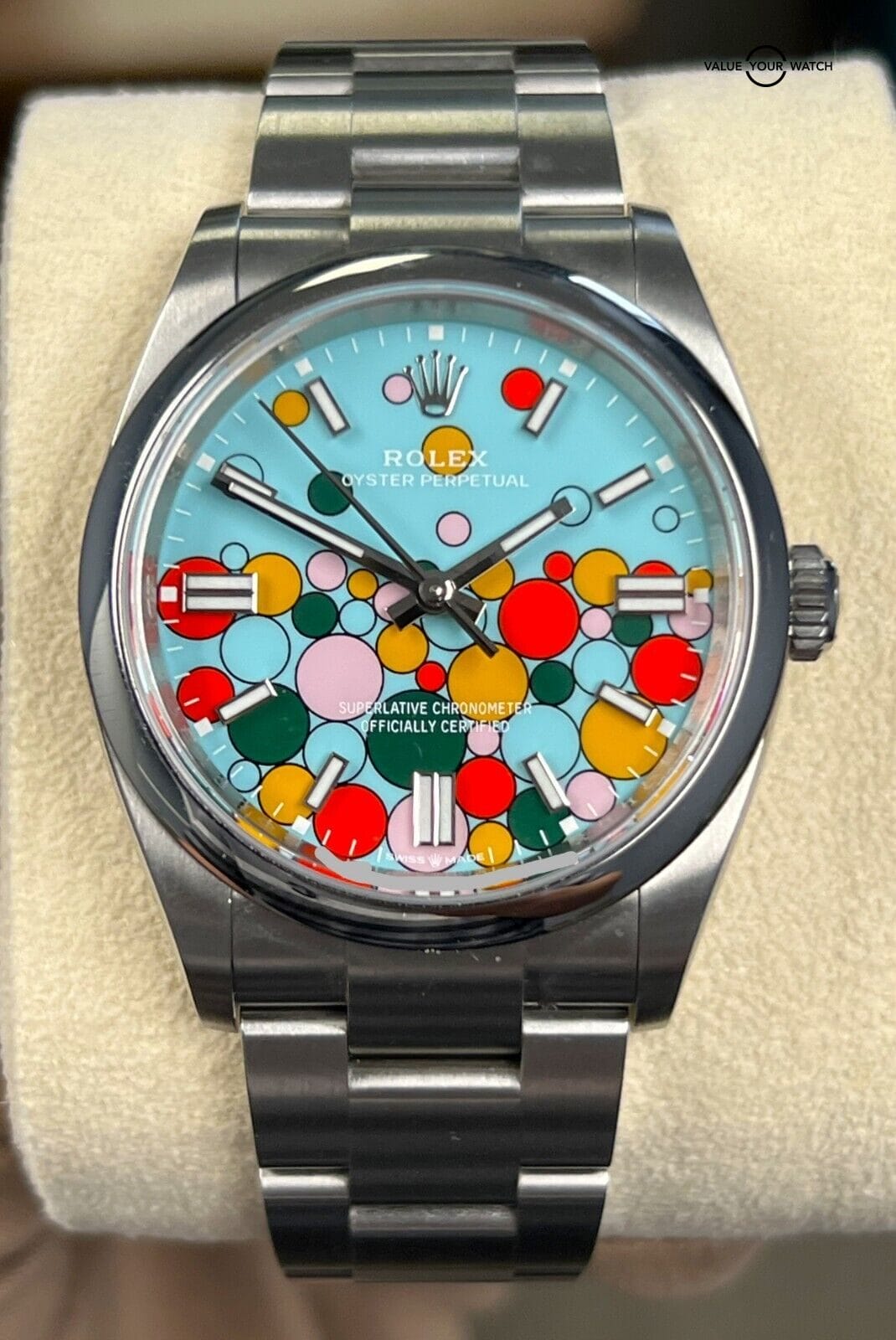 I am happy to answer all questions about the watch. Just reach out to me via messages. I have many references in the watch world and am happy to provide as many as needed. Feel free to search my username “thegolferguy” in the Rolex Forums under the “Who’s Who” section and see ample feedback.