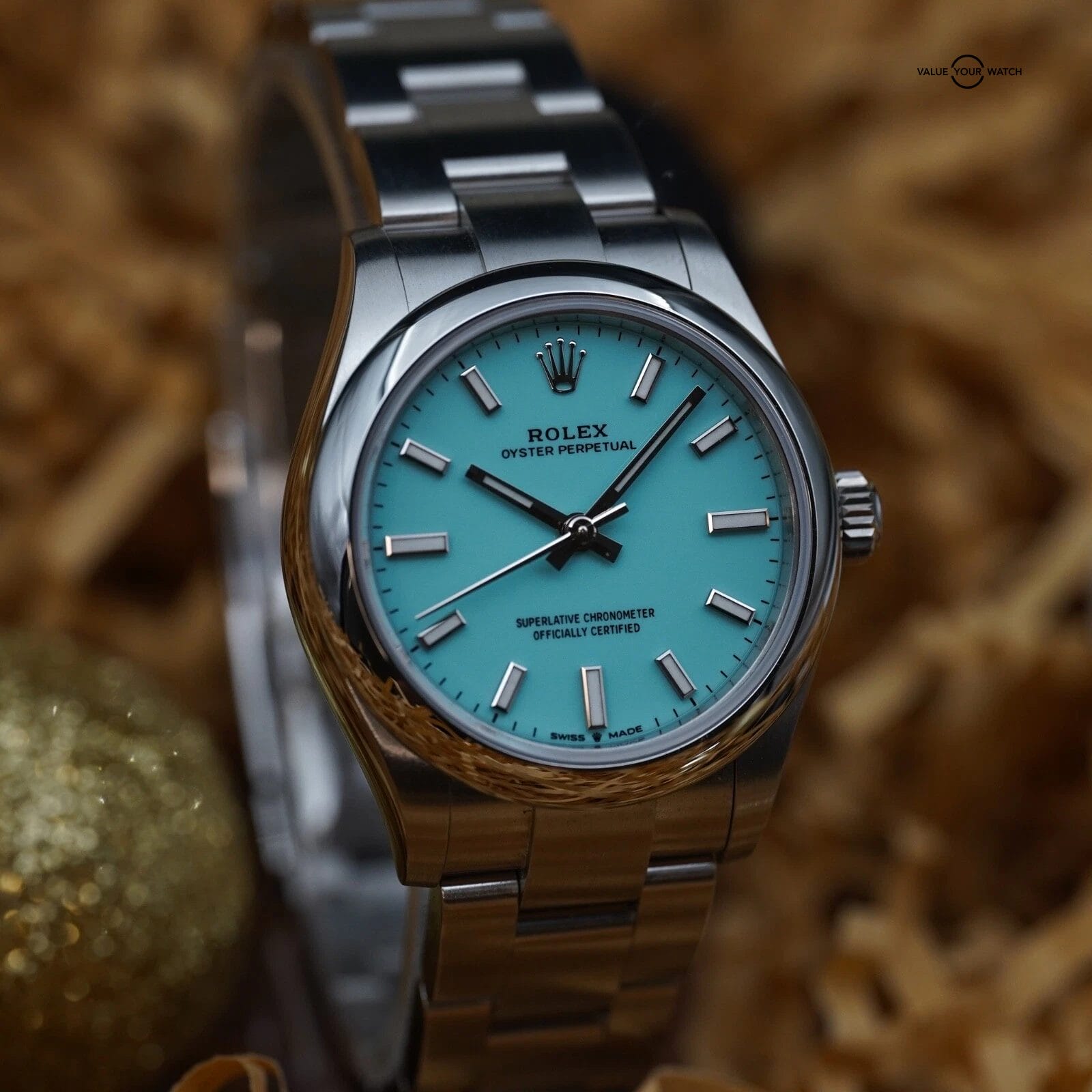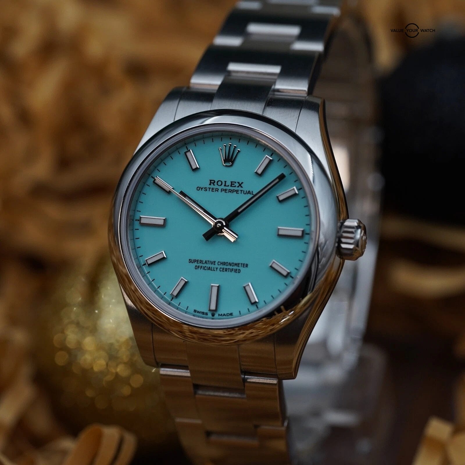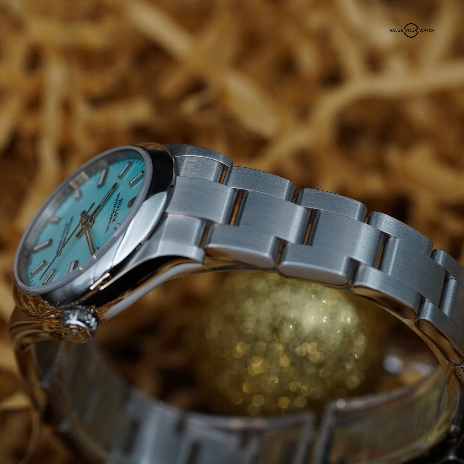 The opulent and sophisticated OP31 Turquoise Blue (“Tiffany”) dial is in a class of its own.