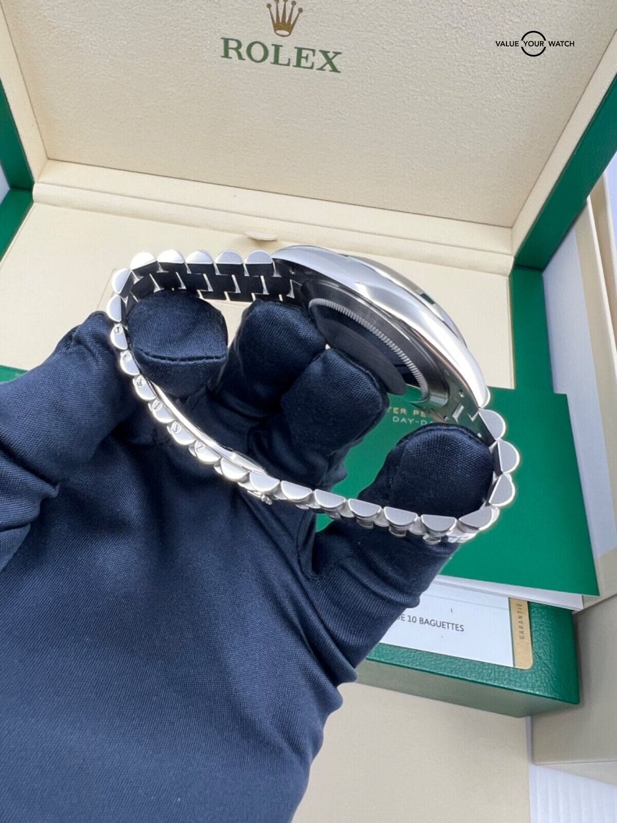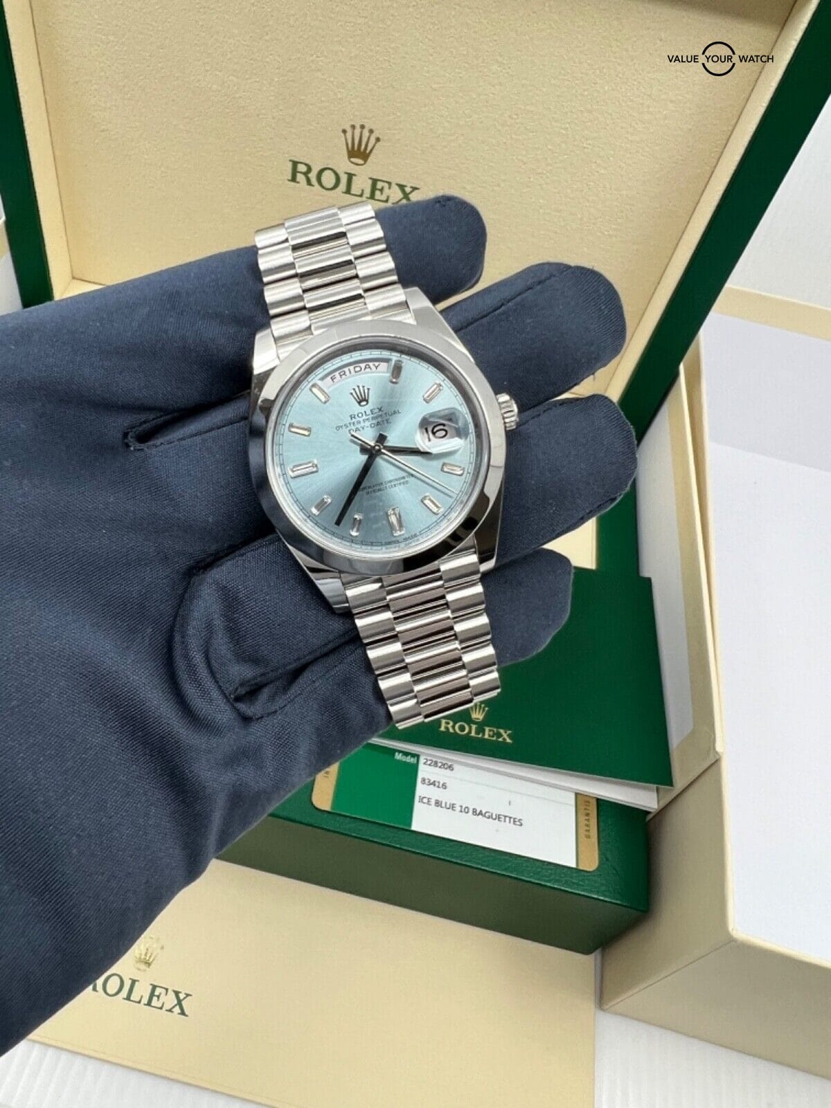 2019 MINT Papers Rolex President Day-Date 40mm Ice Blue Baguette Diamond Dial