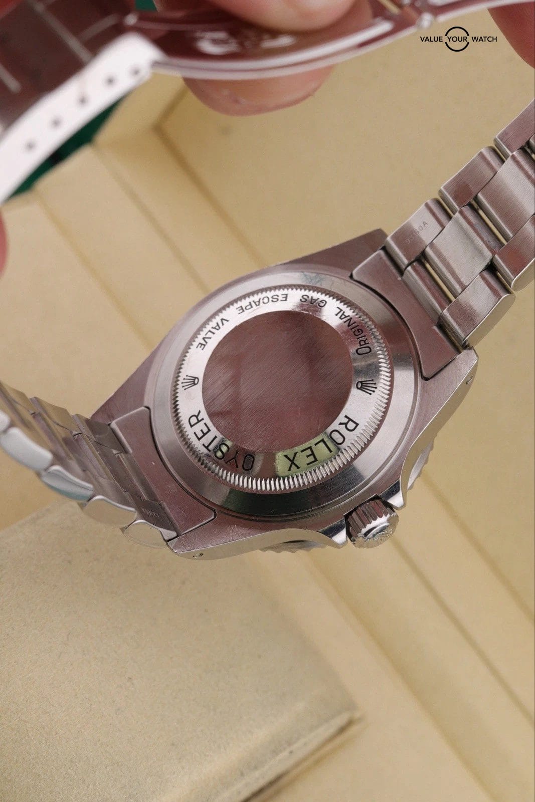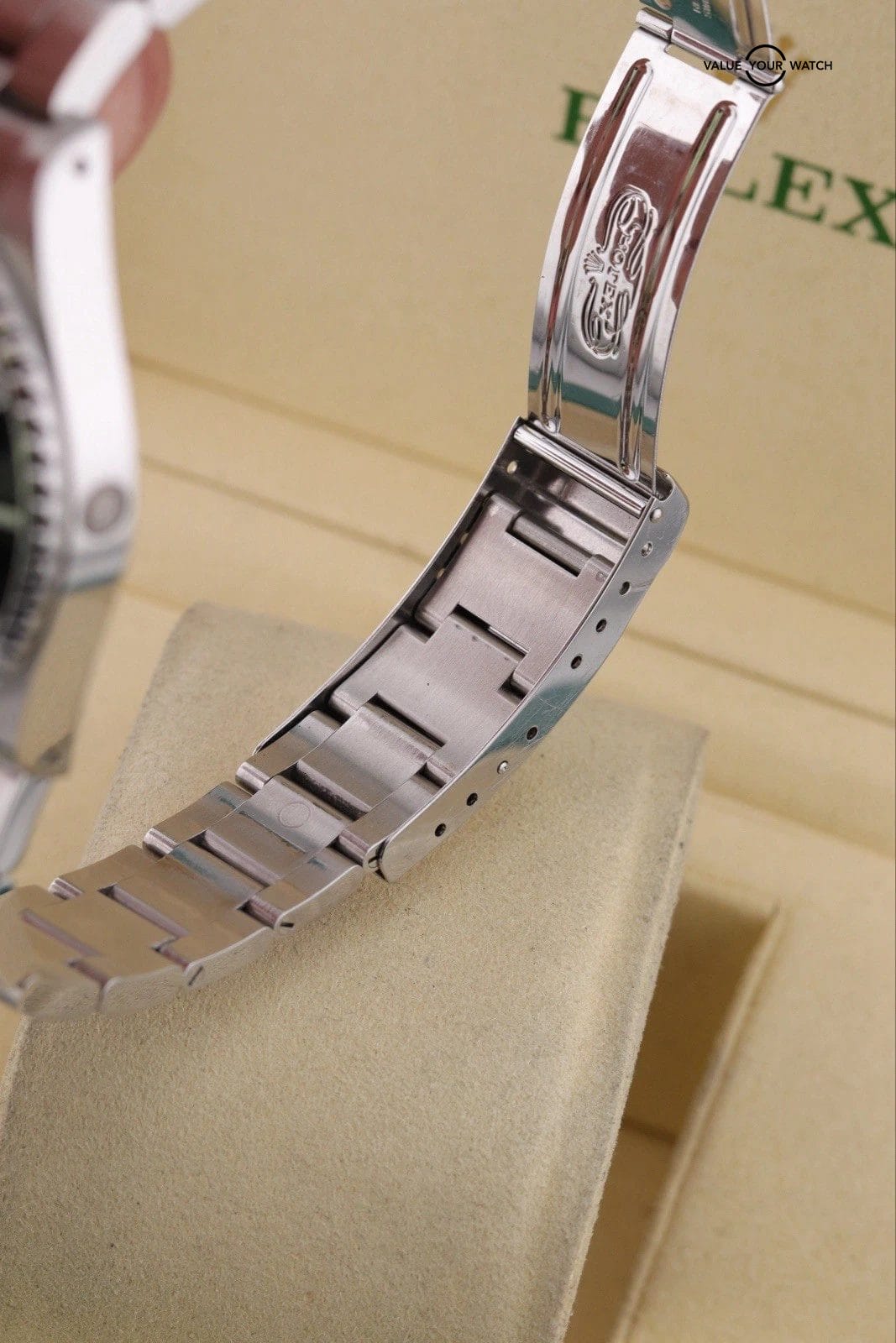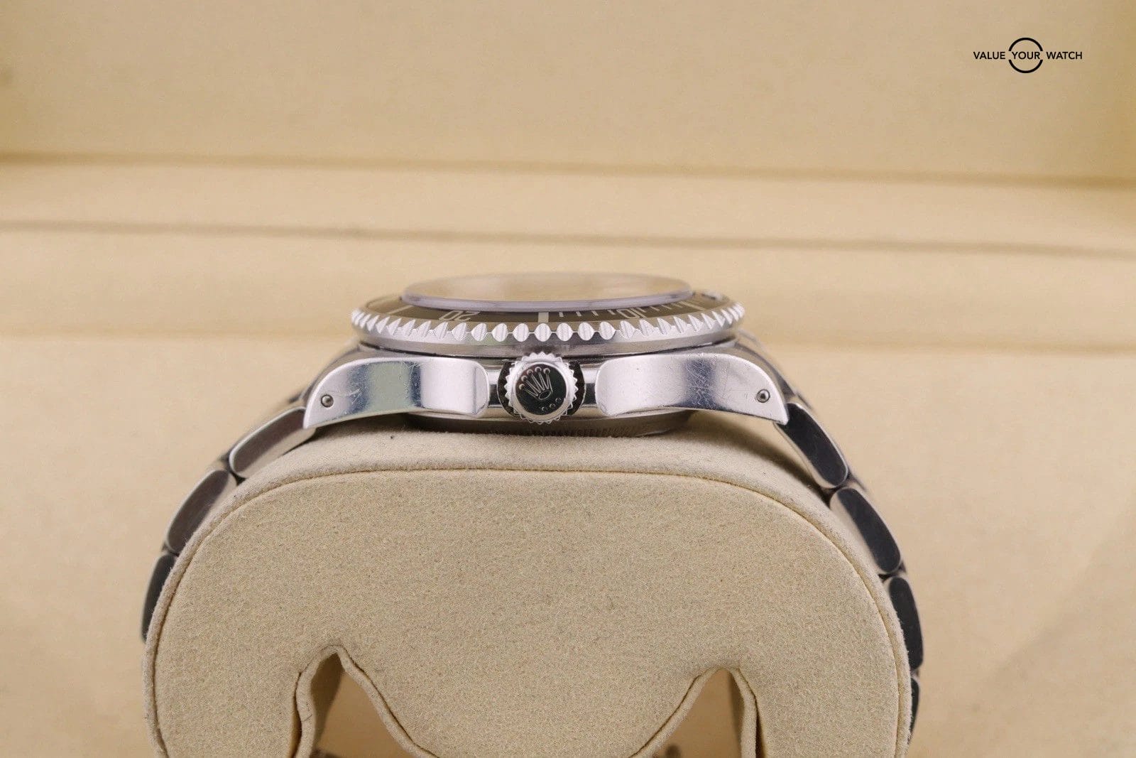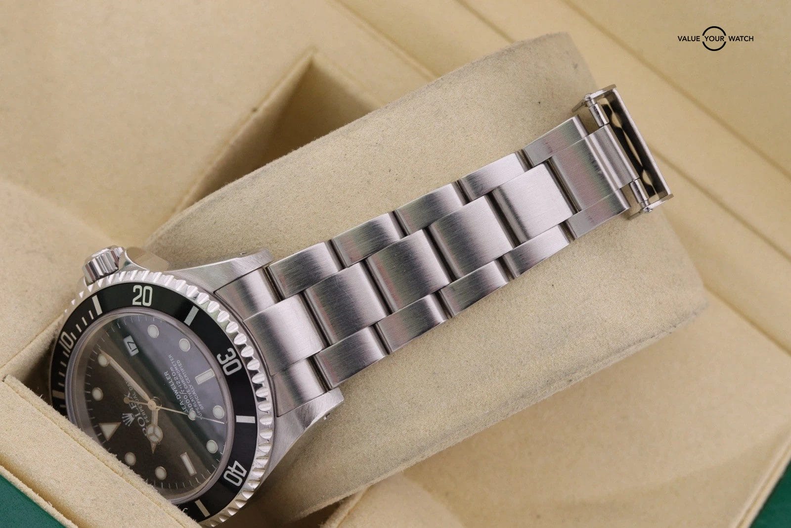 – Overall really nice example. Clean crystals and dial. The movement runs and functions as it should. Bracelet is in good shape with very little sag. Lume pip is cracked but all there. Bezel insert has light marks. There are dings and scratches throughout case x bracelet, but everything is sharp and appears unpolished. The case chamfers and edges are still sharp and clearly defined.