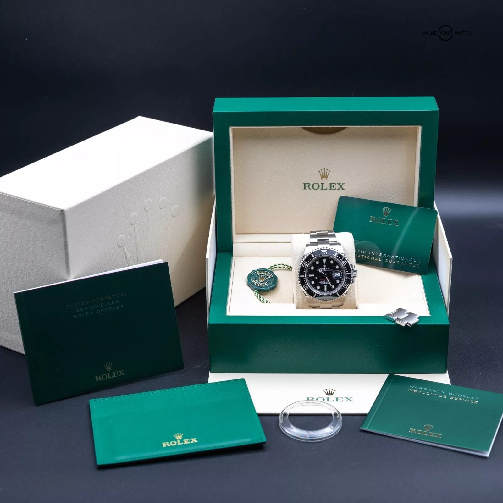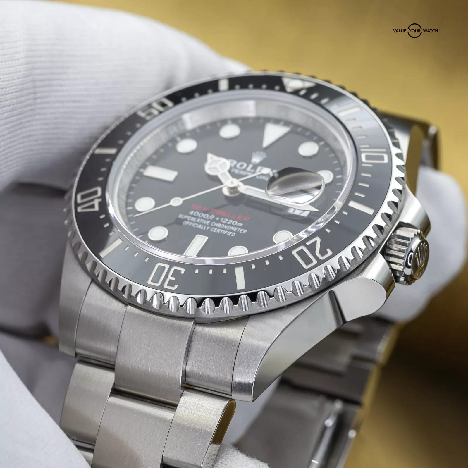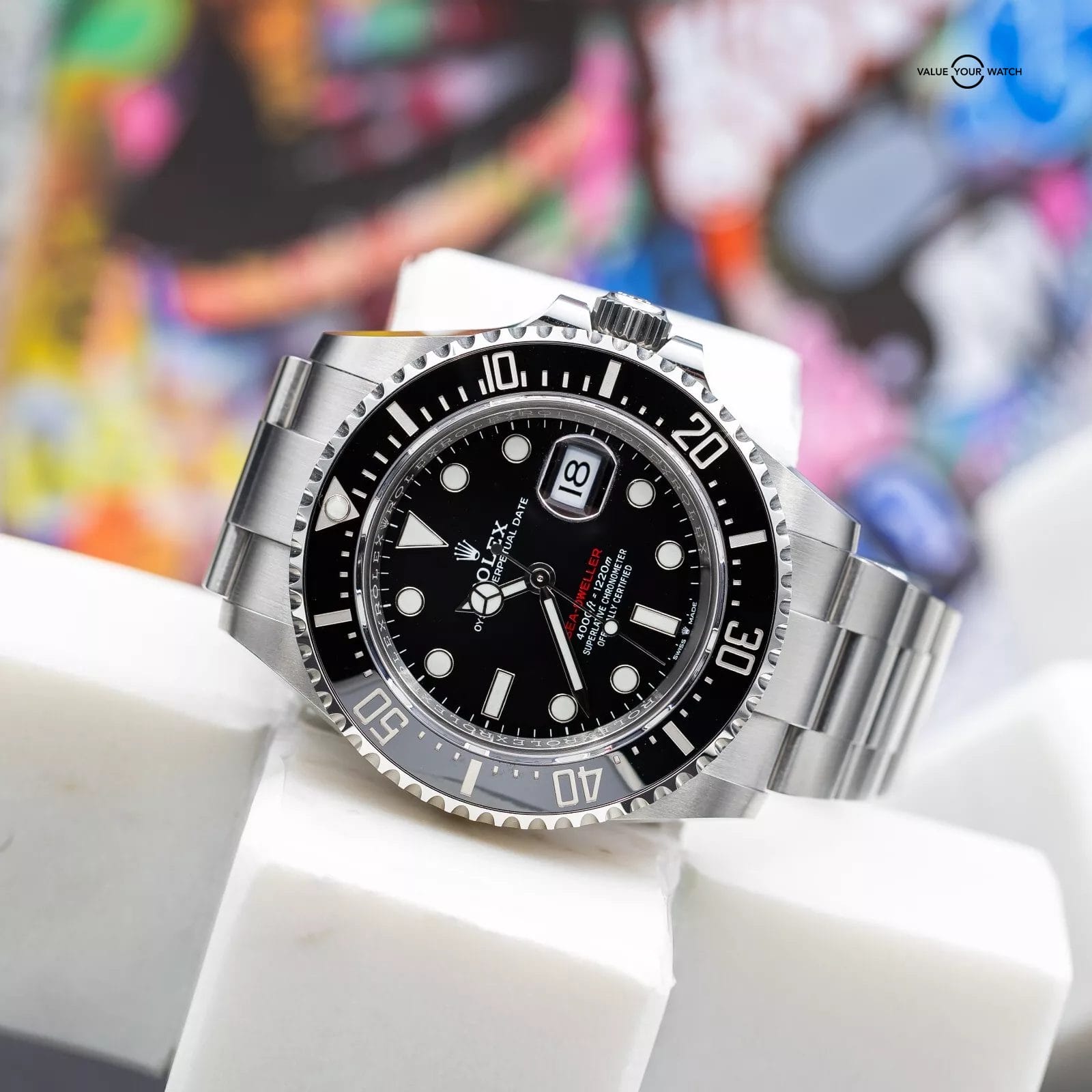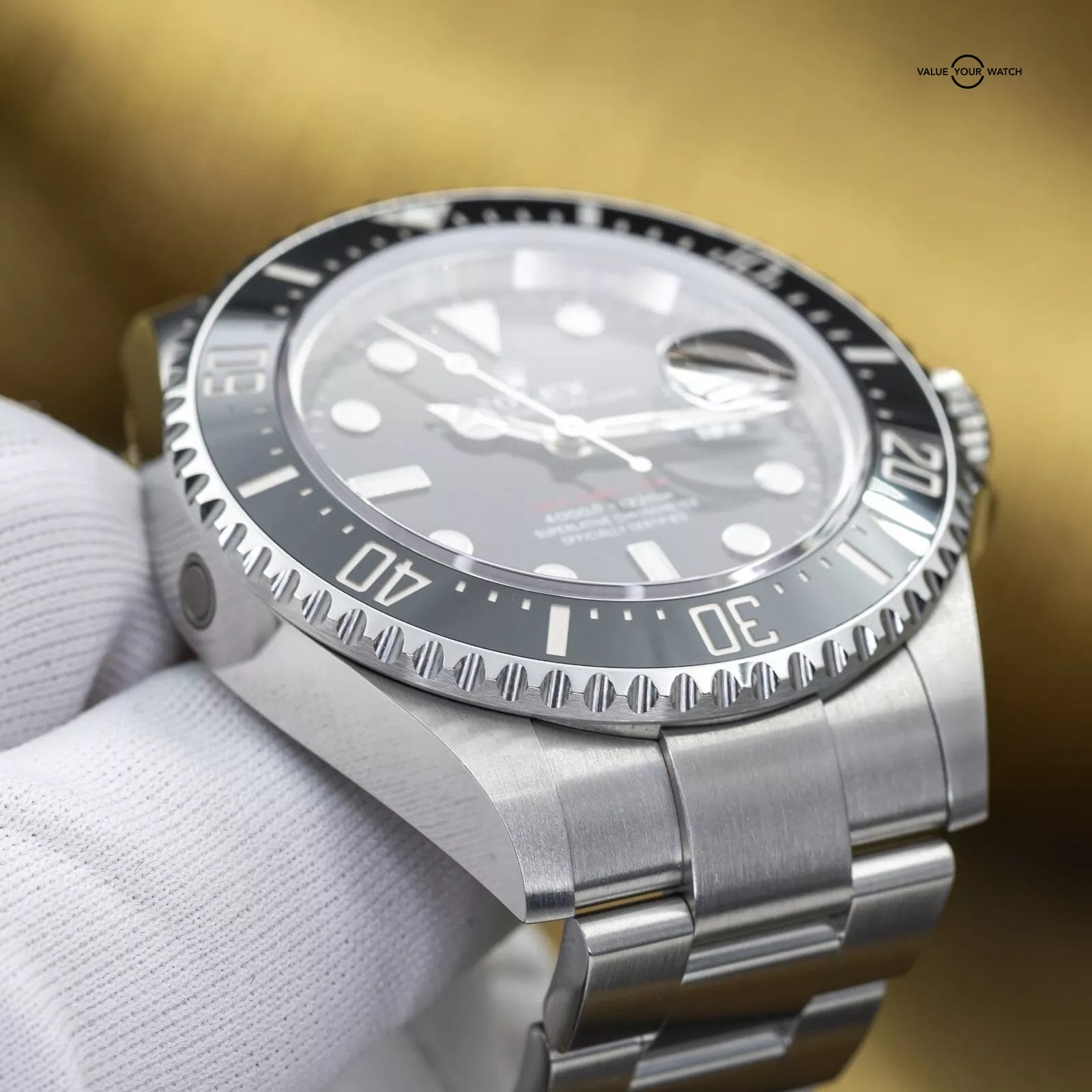 For your consideration is a near mint condition 50th Anniversary edition of the Sea-Dweller. This is the newer 43mm steel case and ceramic bezel version of the Sea-Dweller launched to commemorate 50 years since the watch was originally released. It is the first in decades to feature the red “Sea-Dweller” writing on the dial as well as the first in many years to feature the cyclops magnifier over the date. All of this plus the new movement with a 70-hour power reserve, the glide-lock clasp everyone loves, and years left on the Rolex International Warranty…you can’t go wrong!