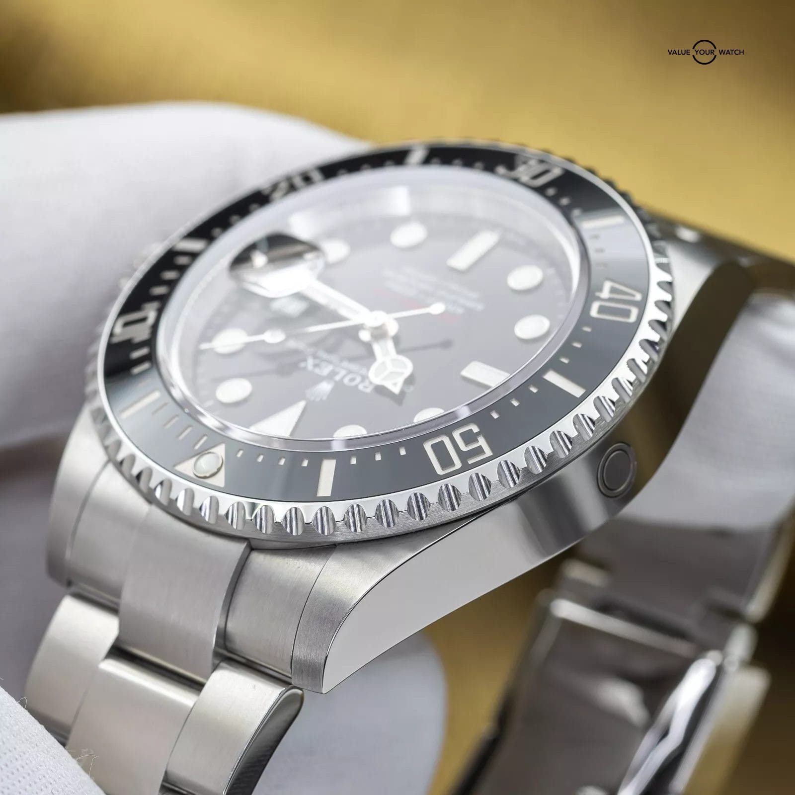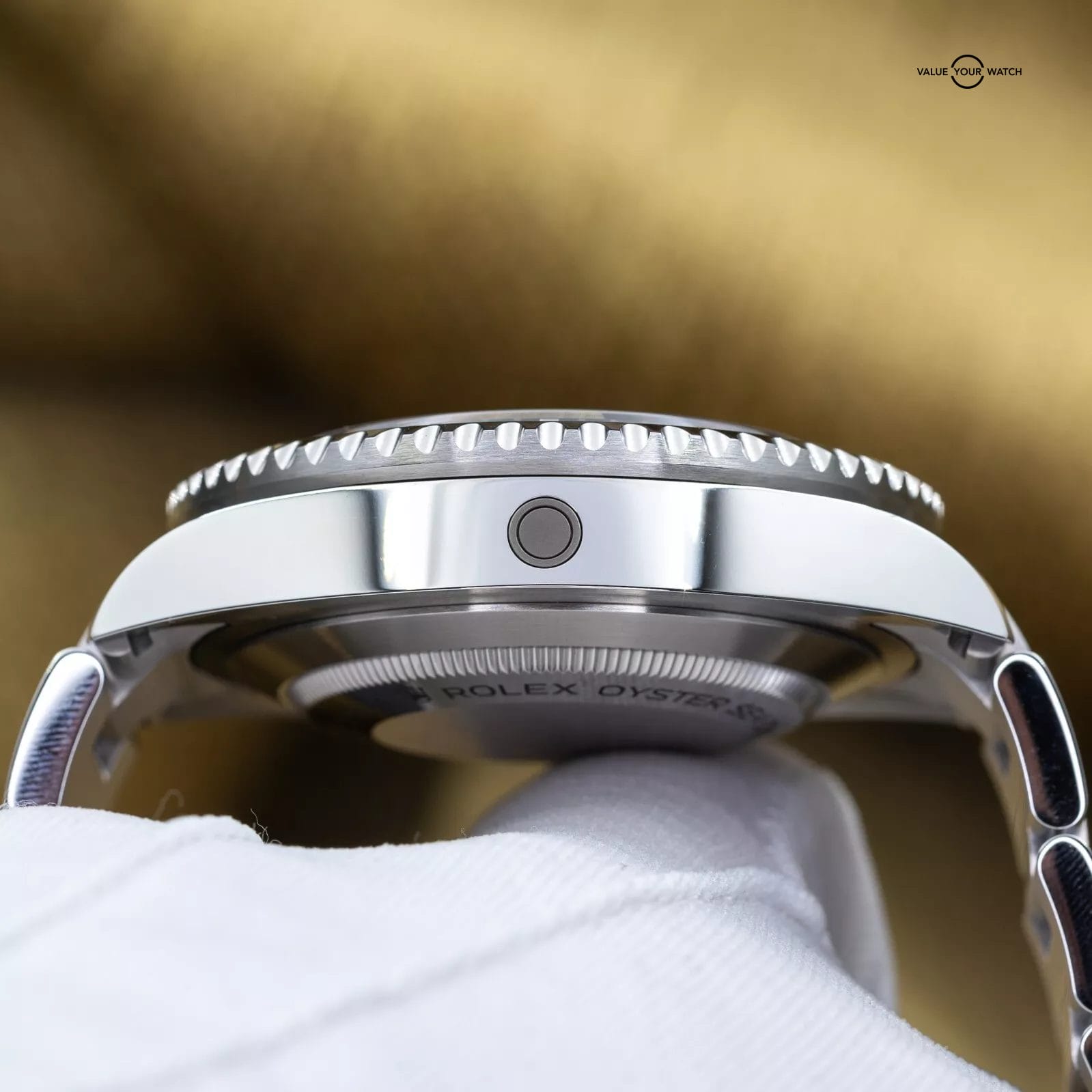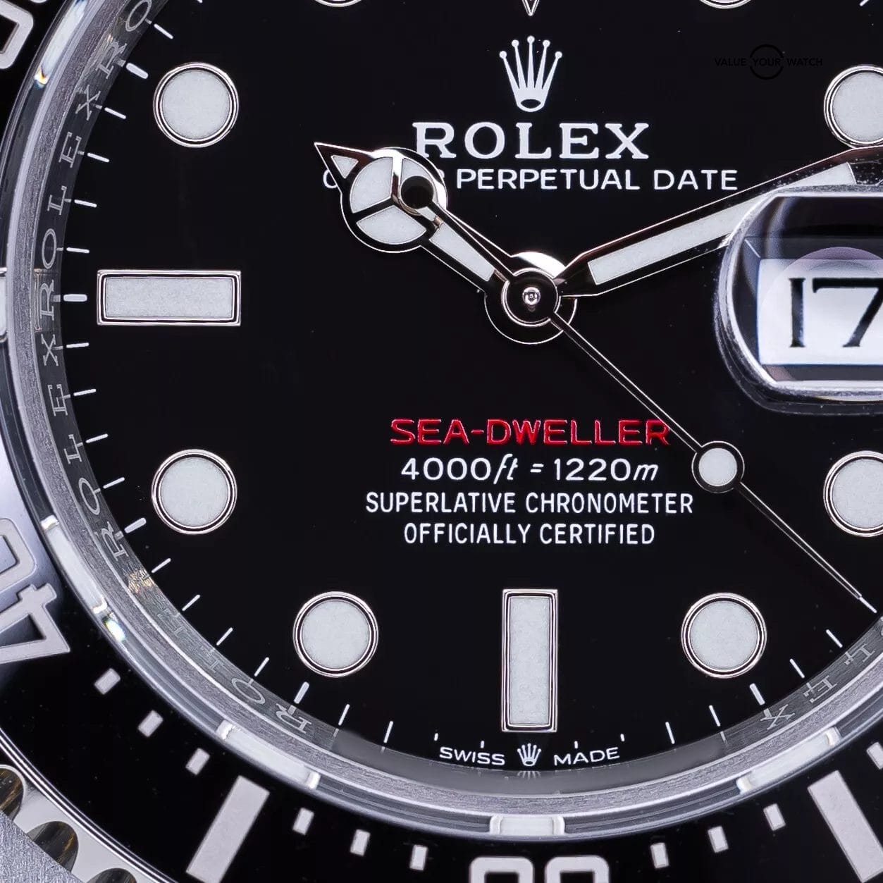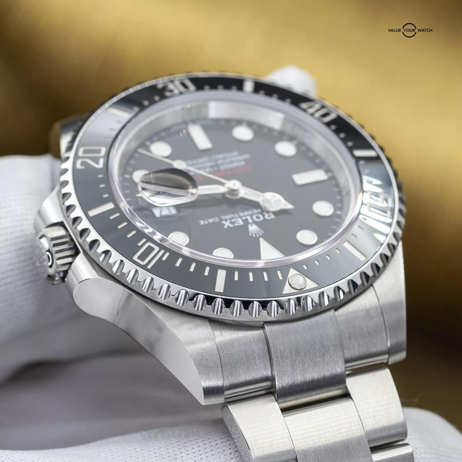 For your consideration is a near mint condition 50th Anniversary edition of the Sea-Dweller. This is the newer 43mm steel case and ceramic bezel version of the Sea-Dweller launched to commemorate 50 years since the watch was originally released. It is the first in decades to feature the red “Sea-Dweller” writing on the dial as well as the first in many years to feature the cyclops magnifier over the date. All of this plus the new movement with a 70-hour power reserve, the glide-lock clasp everyone loves, and years left on the Rolex International Warranty…you can’t go wrong!