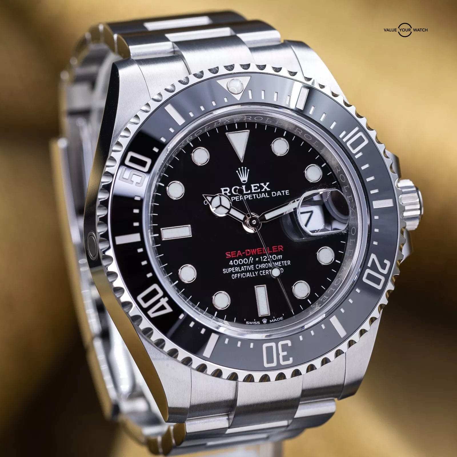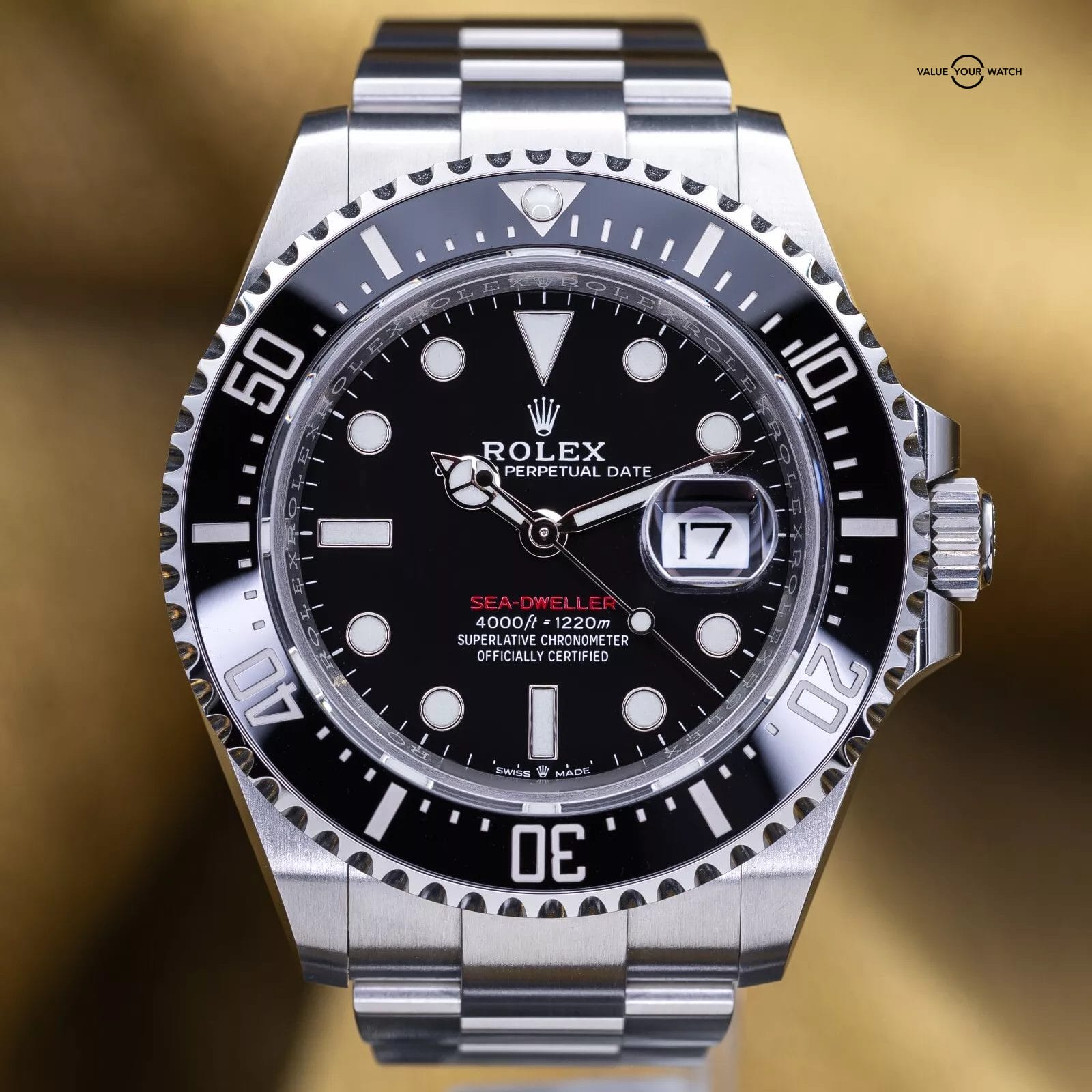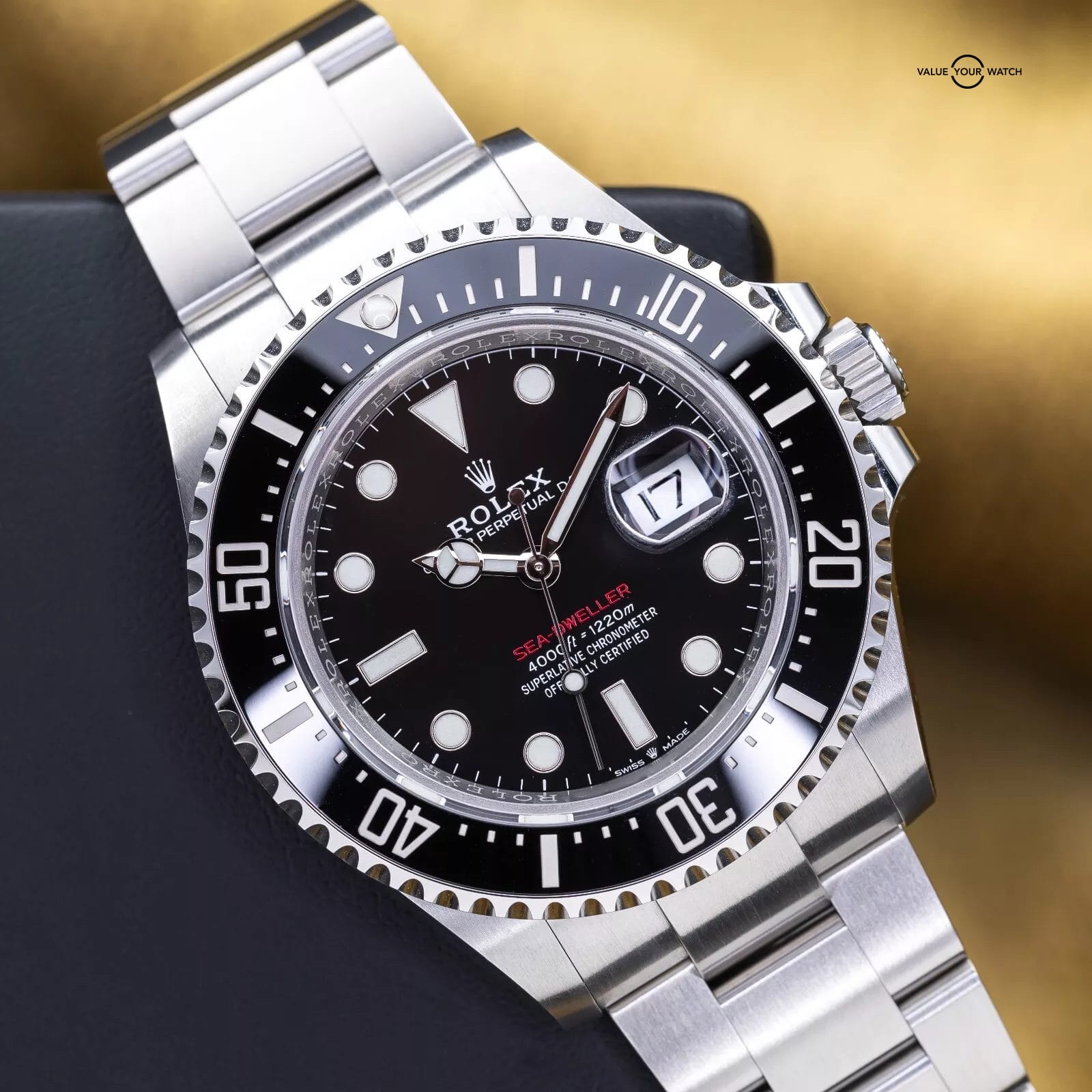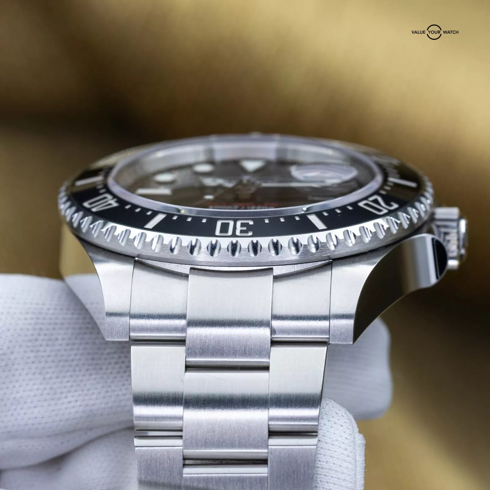 For your consideration is a near mint condition 50th Anniversary edition of the Sea-Dweller. This is the newer 43mm steel case and ceramic bezel version of the Sea-Dweller launched to commemorate 50 years since the watch was originally released. It is the first in decades to feature the red “Sea-Dweller” writing on the dial as well as the first in many years to feature the cyclops magnifier over the date. All of this plus the new movement with a 70-hour power reserve, the glide-lock clasp everyone loves, and years left on the Rolex International Warranty…you can’t go wrong!