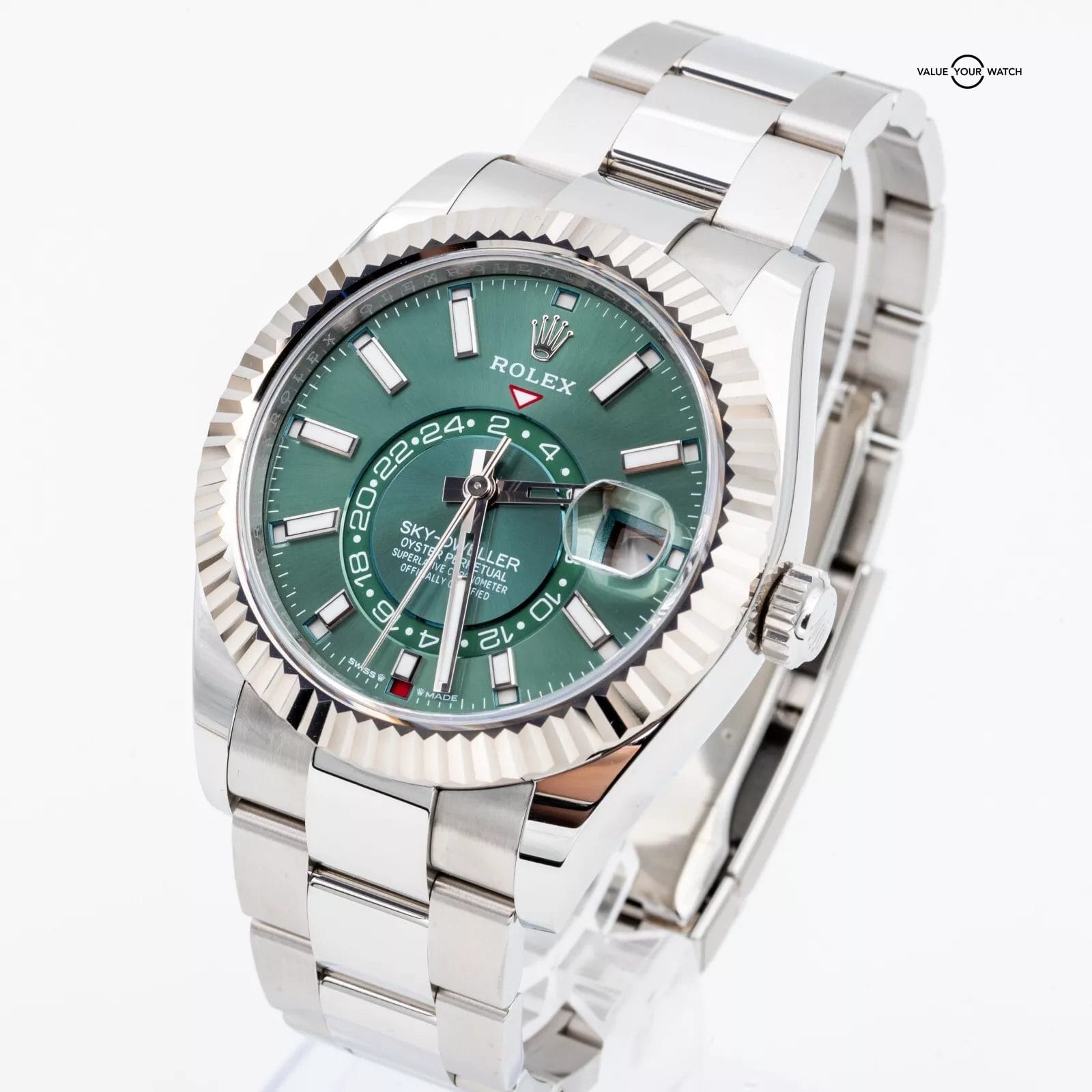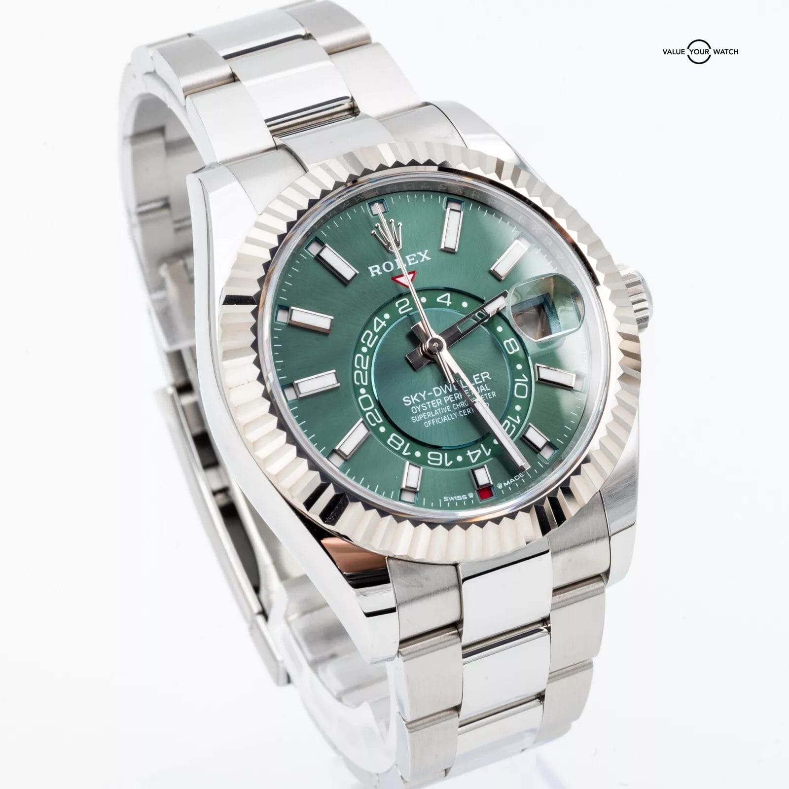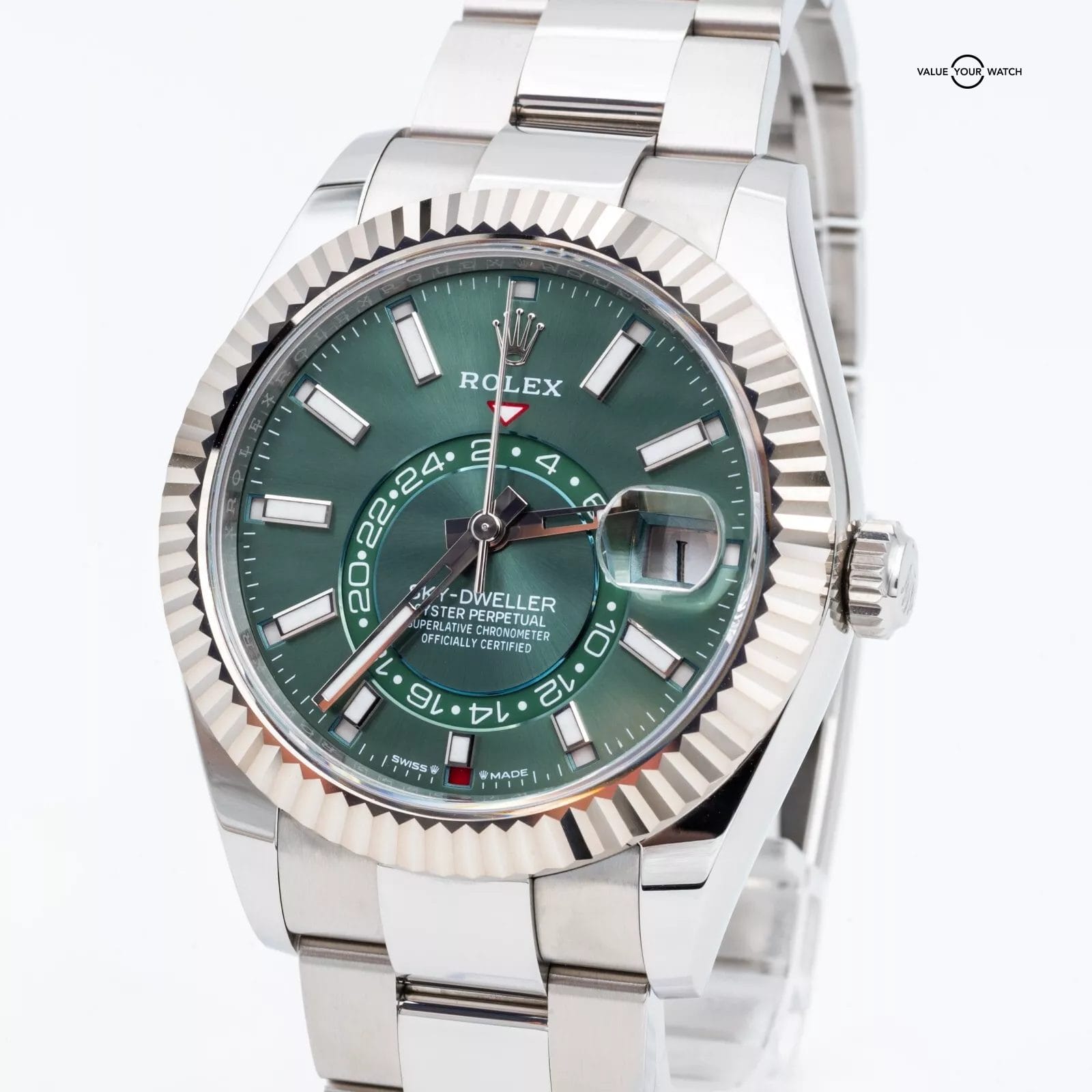 Specification: 2024 Rolex Sky-Dweller 336934 Green Dial Fluted White Gold, Oyster Bracelet