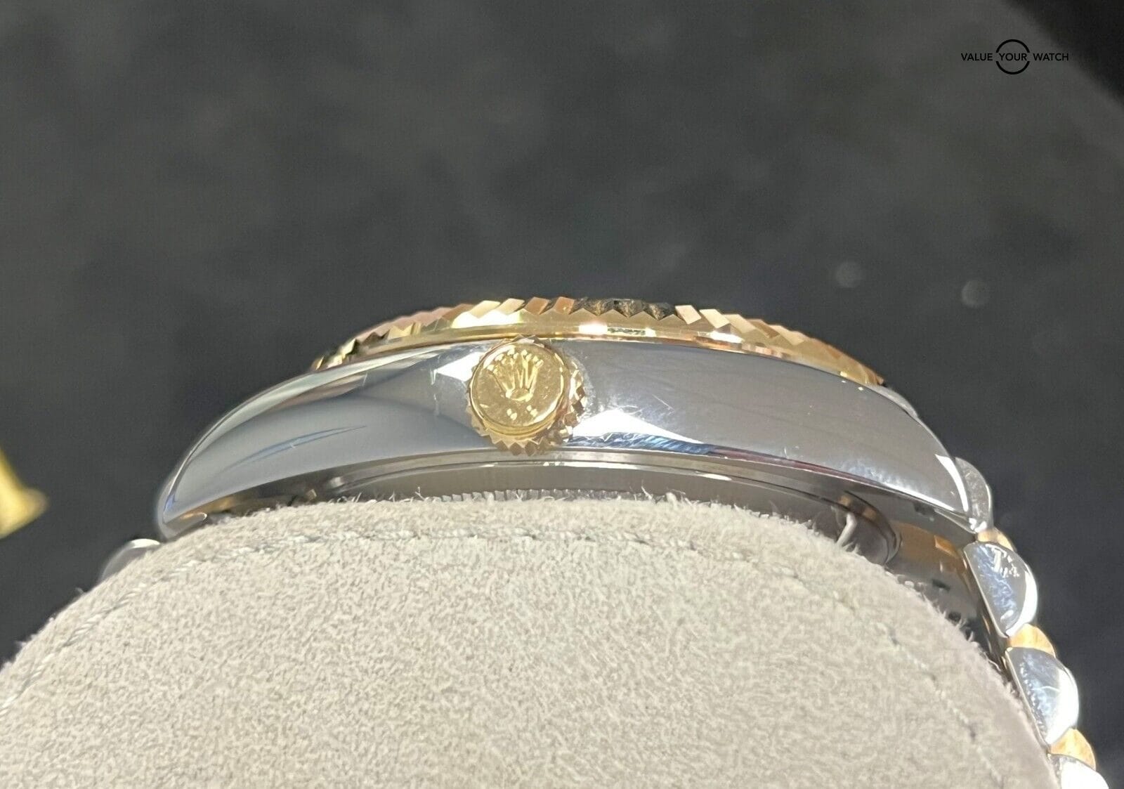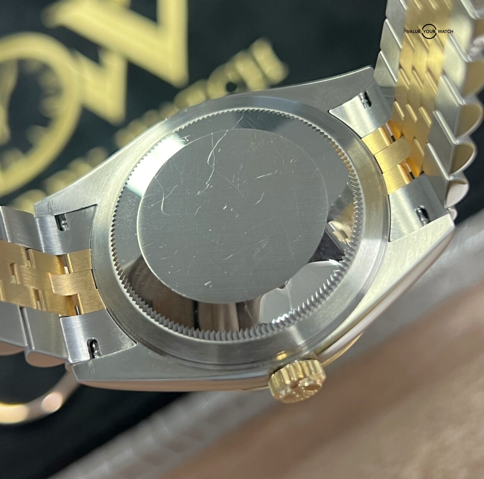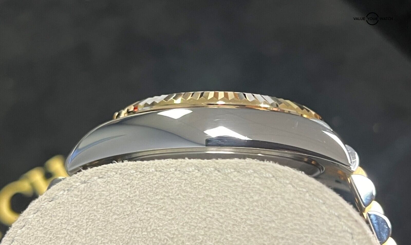 This beautiful timepiece comes with the outer cream box, inner green box, all booklets, all links, both hangtags, and original warranty card (Dated in December 2022). The watch is in excellent pre-owned condition with your typical cosmetic wear throughout the case and bracelet. Pay close attention to the pictures as they accurately describe the condition. Mechanically the watch is functioning as it should. Serial numbers and names are blurred in photos only for privacy reasons.