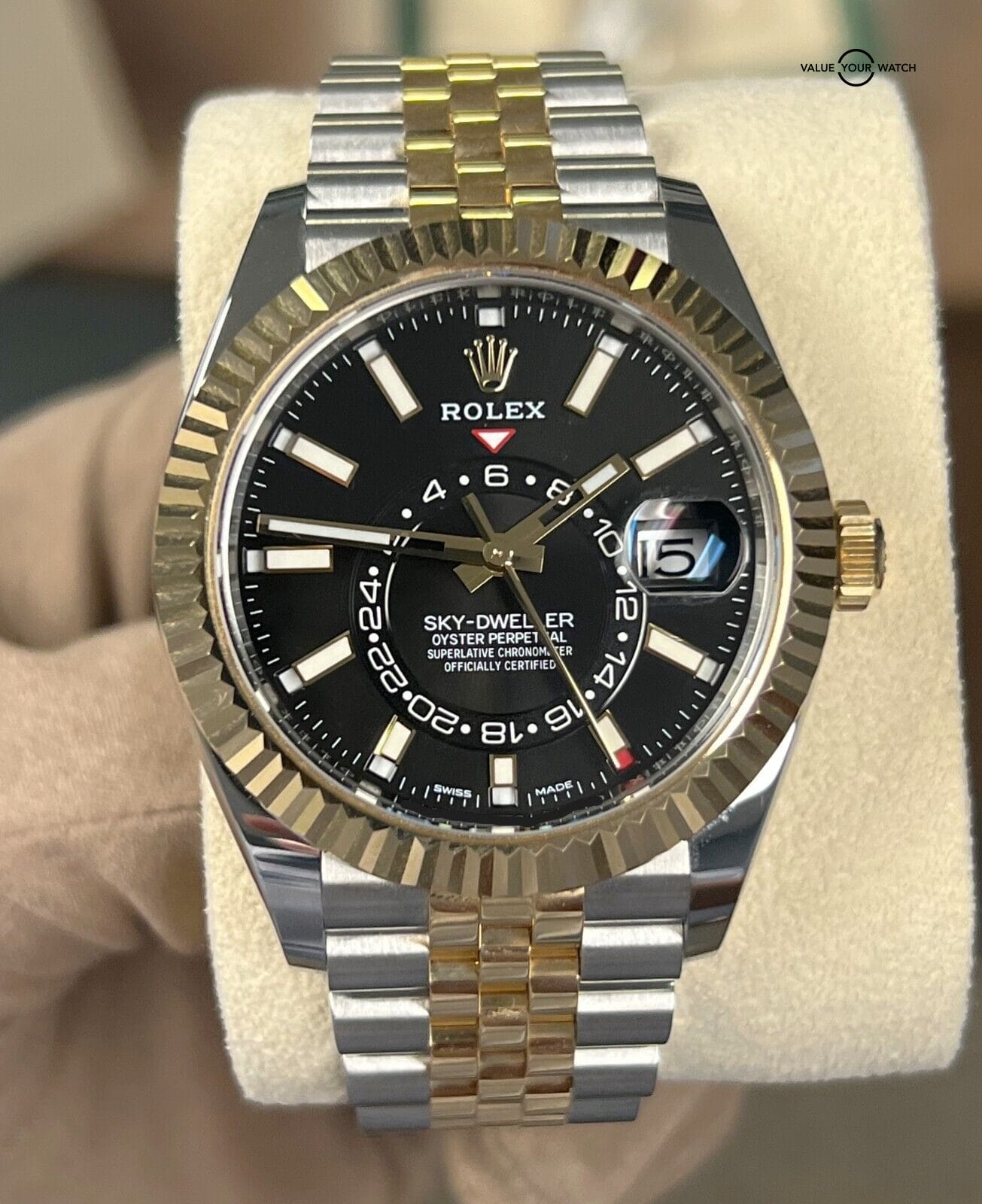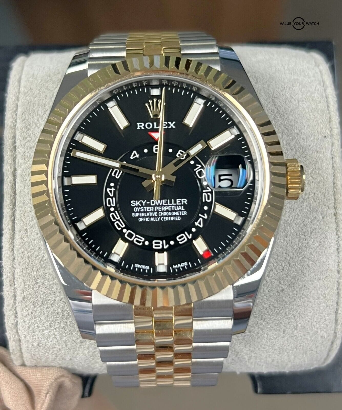 Rolex Sky-Dweller 326933 Stainless Steel and 18K Yellow Gold Jubilee Black Dial!
