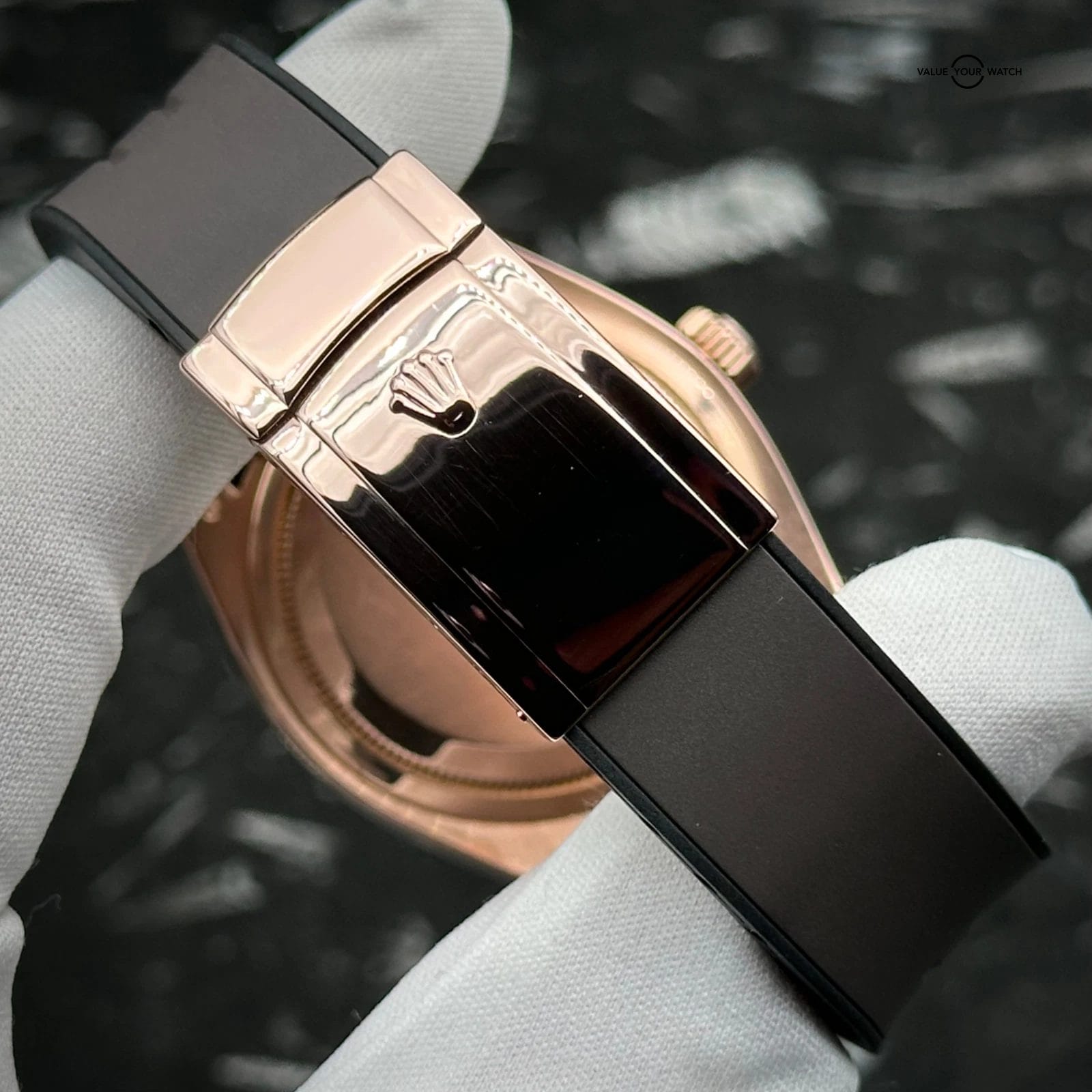 This watch comes as a complete set with inner and outer box, warranty card dated 2016 (card damaged and relamanated bust still fully legible), green hang tag, service booklet, instruction booklet, and card holder. It is in good condition showing light marks on the dial (unnoticeable in daily wear) and light hairlines on the the clasp. The Rubber B strap and case are in excellent condition and the crystal is flawless. Get this beautiful timepiece before it’s gone!
