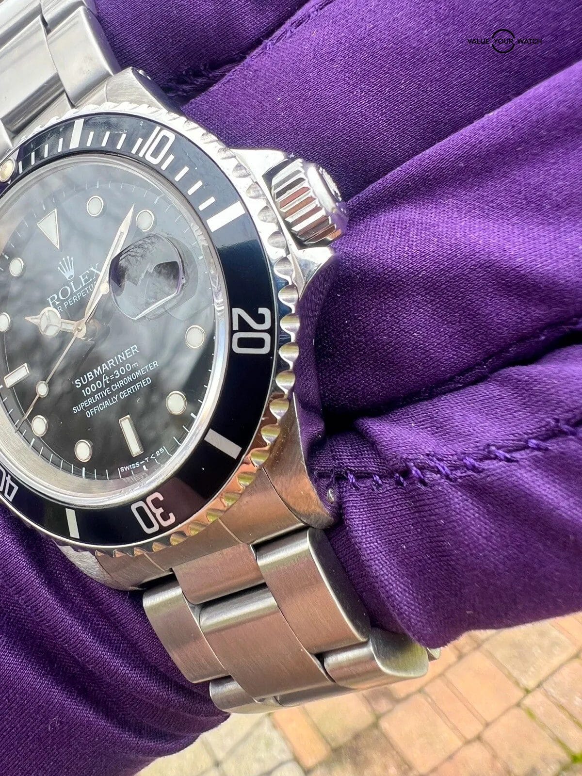 This is a stunning example of a late 90s (1998) submariner date in very good condition for its age, complete with the original box, papers, serialized hang tag, and all of the additional booklets and red tag that came with it.
