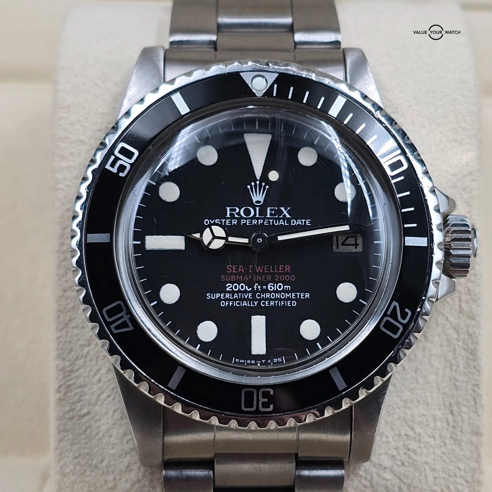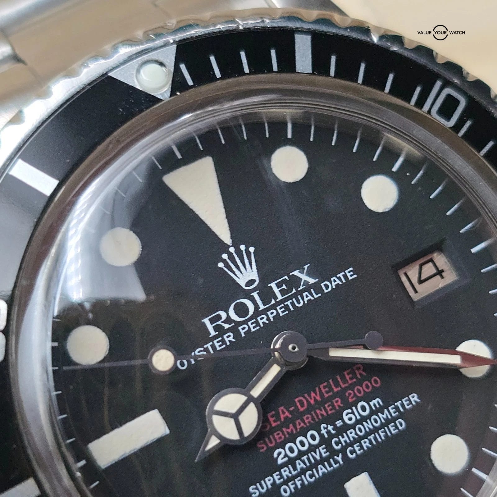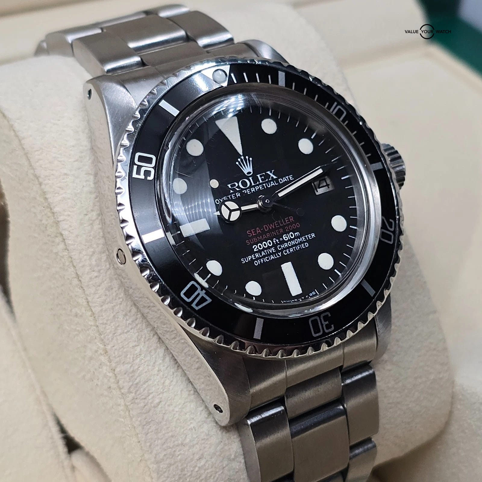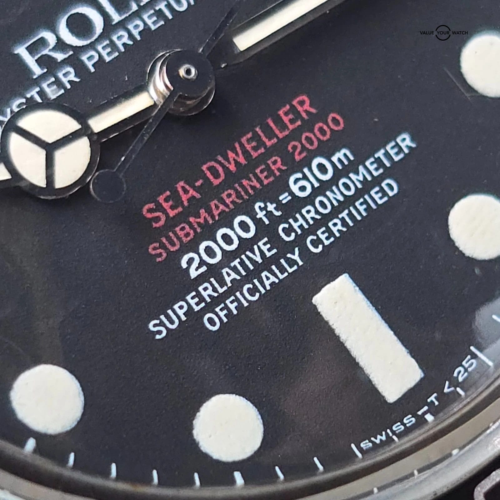 Specification: 1976 Rolex Submariner 2000 Sea Dweller “Double Red” MK4 dial. All original parts