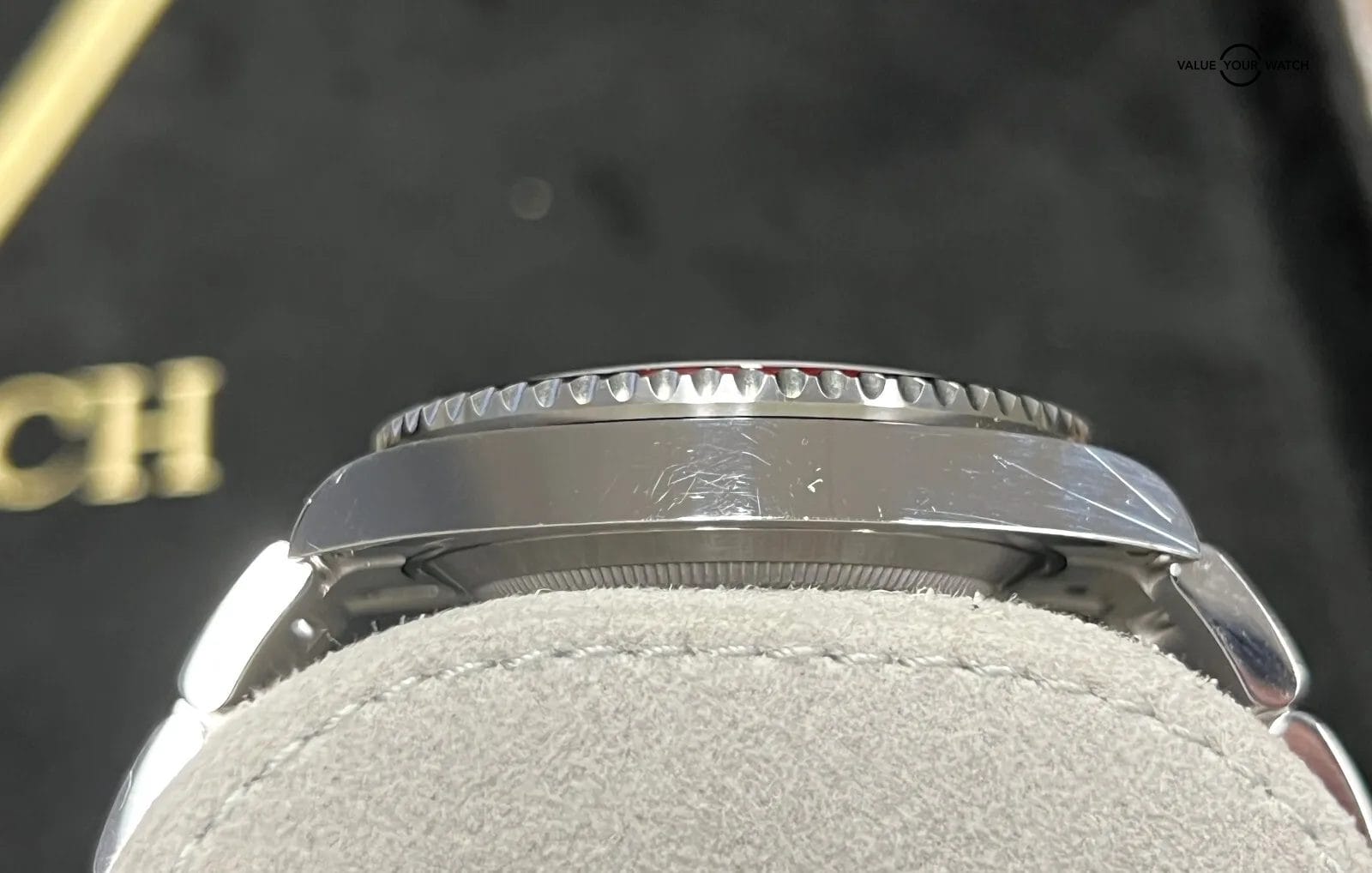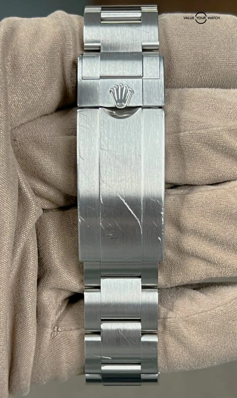 This beautiful timepiece comes with the outer white sleeve, outer cream box, inner green wave box, manual booklets, all links, both hangtags, bezel protector and original warranty card (Dated January 24, 2022). The watch is in nice pre-owned condition. The case and bracelet show typical cometic wear and some small pinpoint dings on the lugs. Pay close attention to the pictures as they accurately describe the condition. Mechanically the watch is functioning as it should. Serial numbers and names are blurred in photos only for privacy reasons.