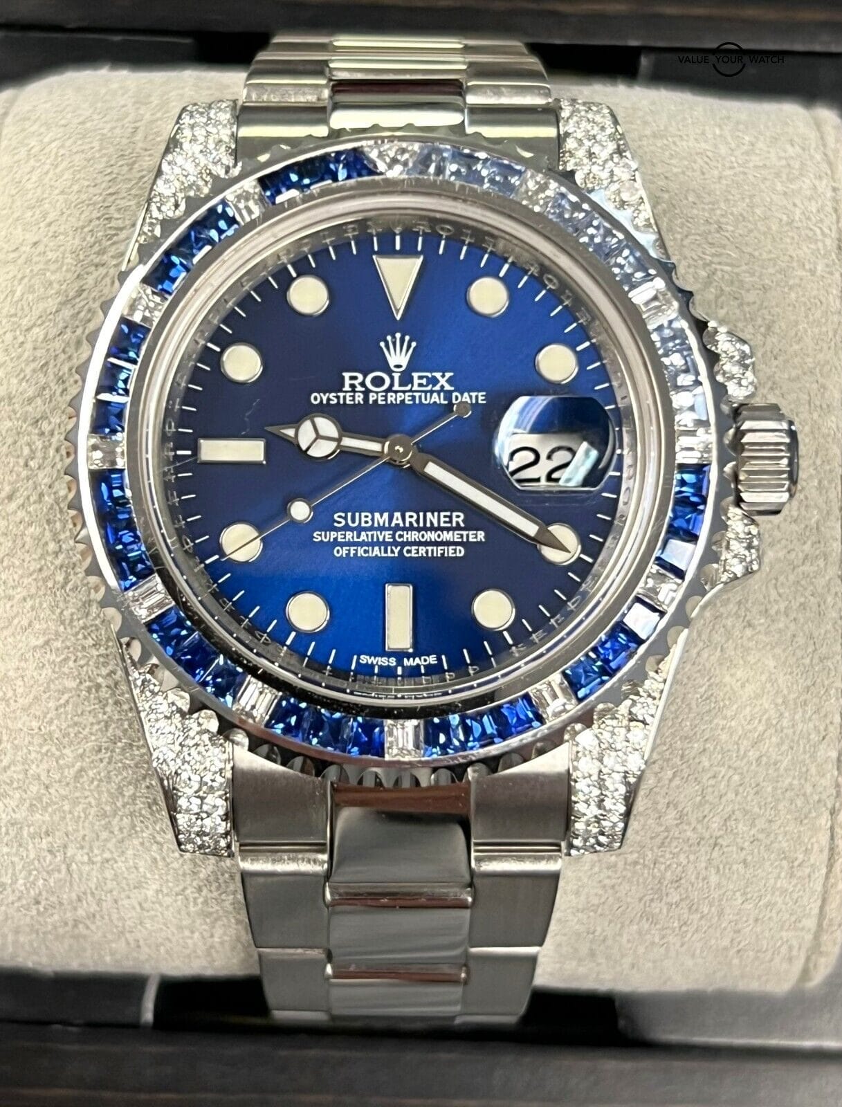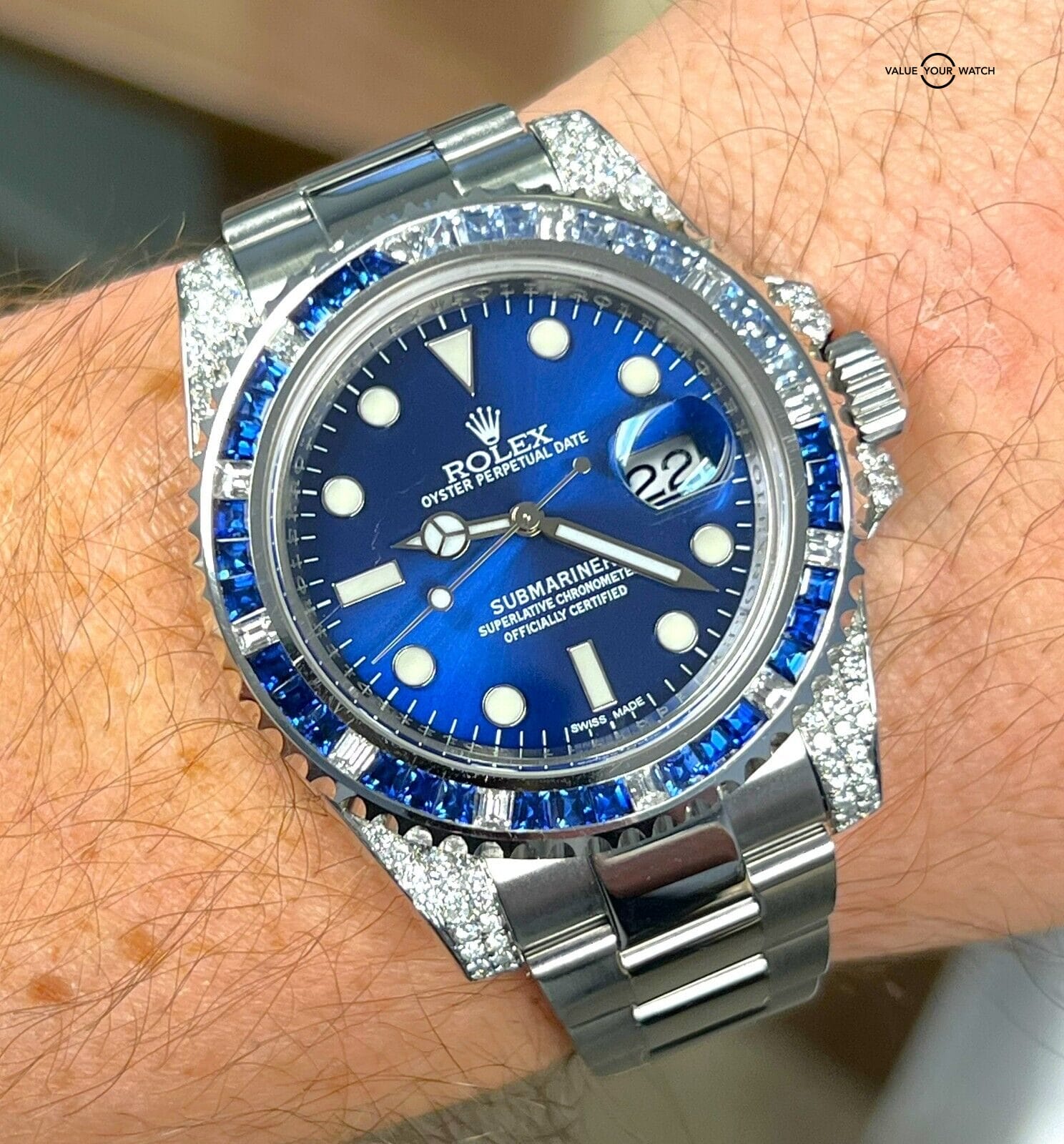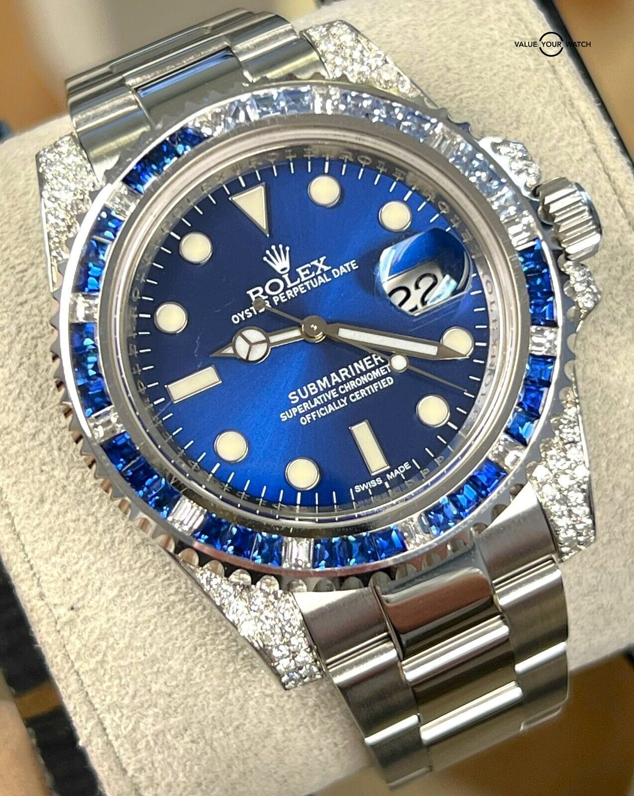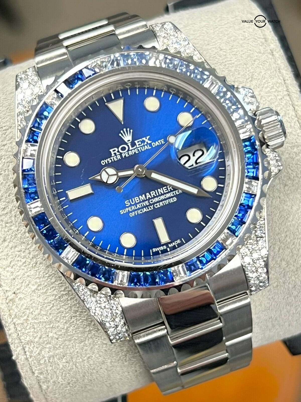 The addition of diamonds and sapphires can alter the watch’s value. Compare prices with similar custom Rolex watches to gauge the market value. Be prepared for a higher price point due to the added luxury elements.