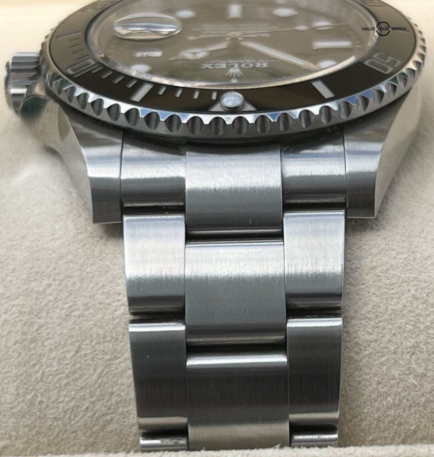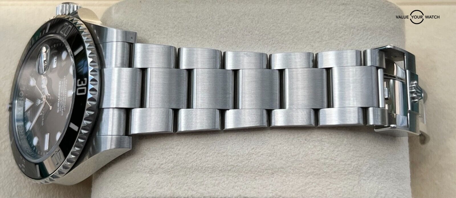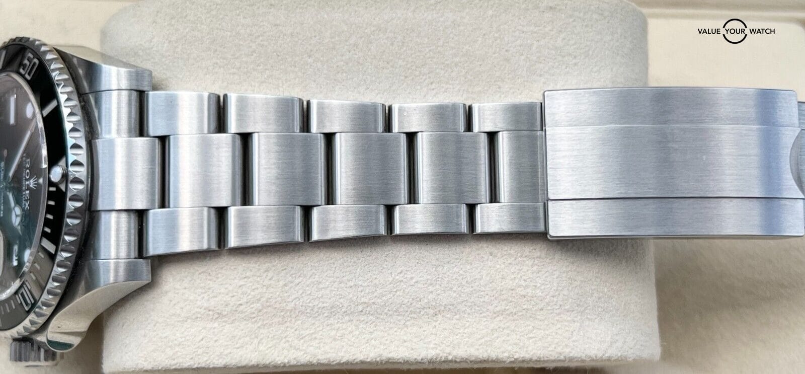 This beautiful timepiece comes as a complete set. It comes with the outer cream box, inner green wave box, all manuals, both hangtags, all links, and the original warranty card (Dated September 2020). The beautiful timepiece is in excellent pre-owned condition with just minor cosmetic wear throughout. The sapphire crystal and ceramic bezel are both clean with no nicks or scratches. Everything Is functioning as it should. Serial numbers and names are blurred in photos only for privacy reasons.