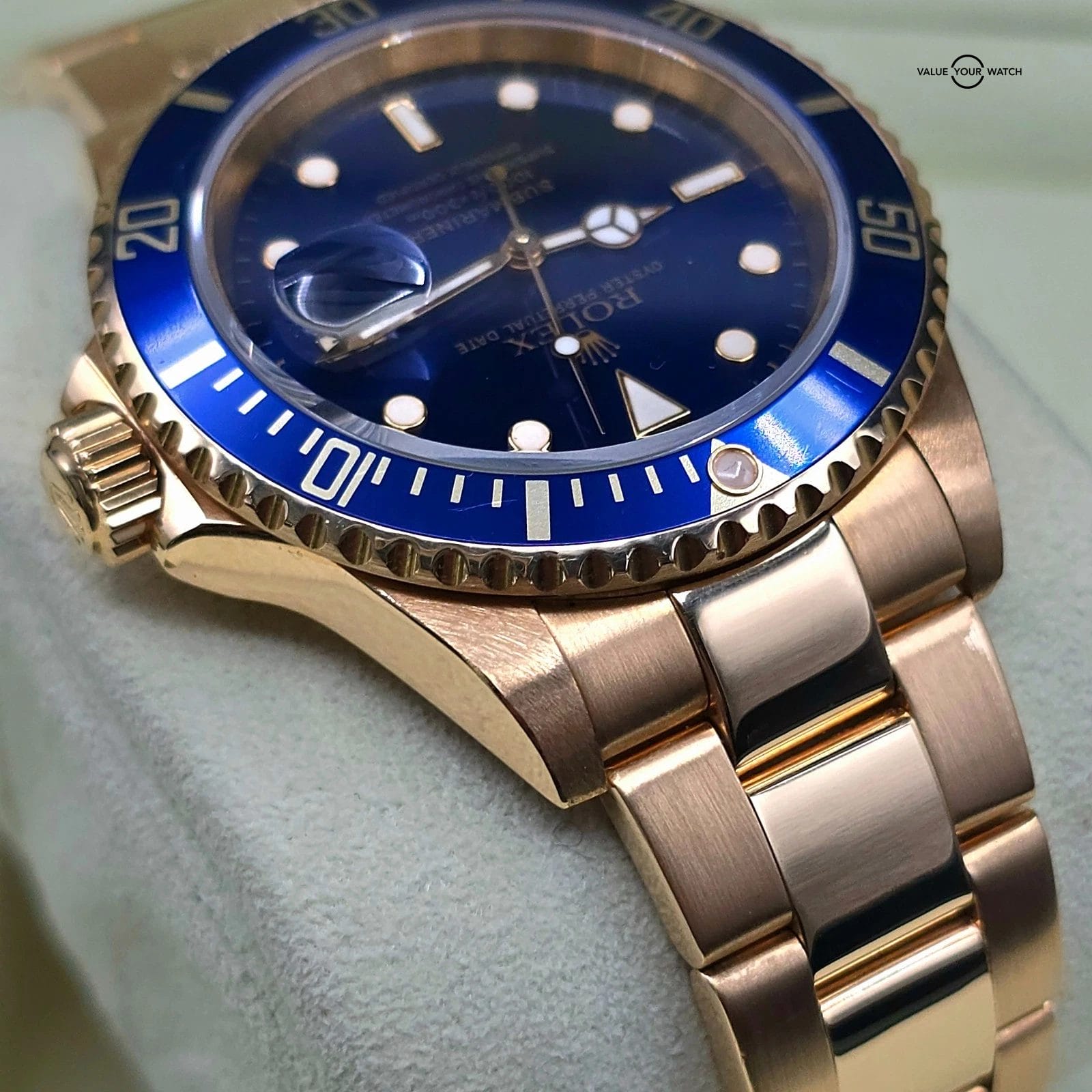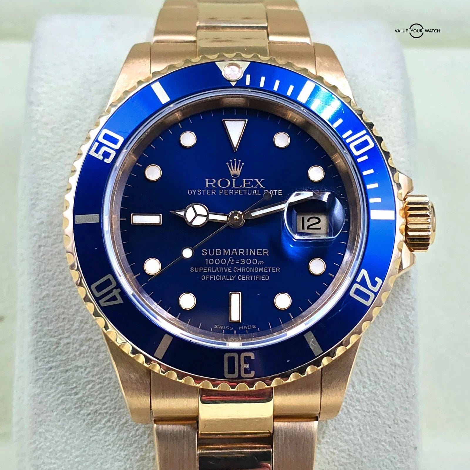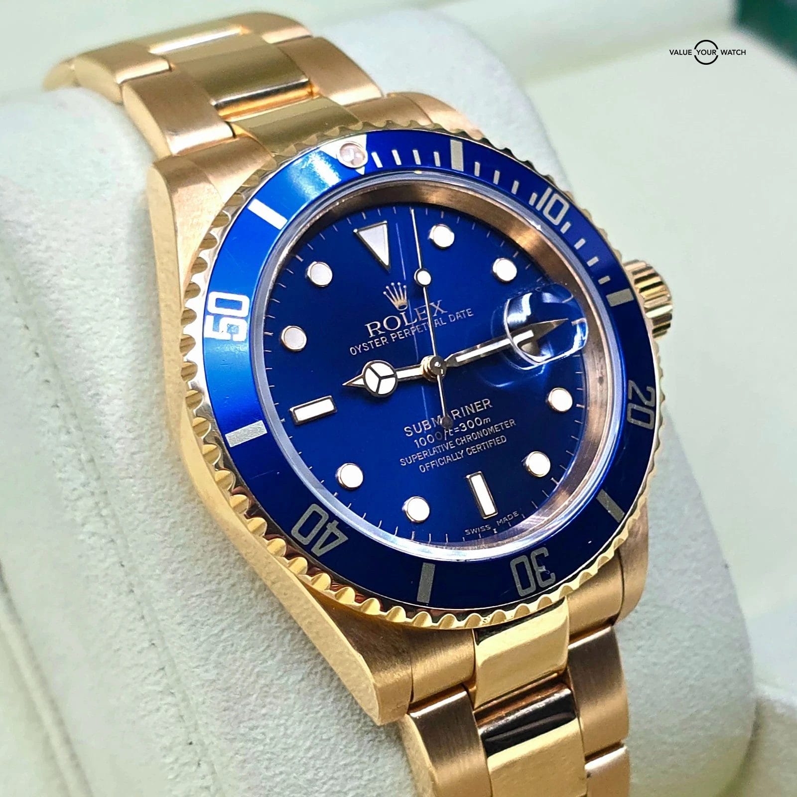 Specification: Rolex Submariner Date, 18k Yellow Gold with Blue dial, circa 2002