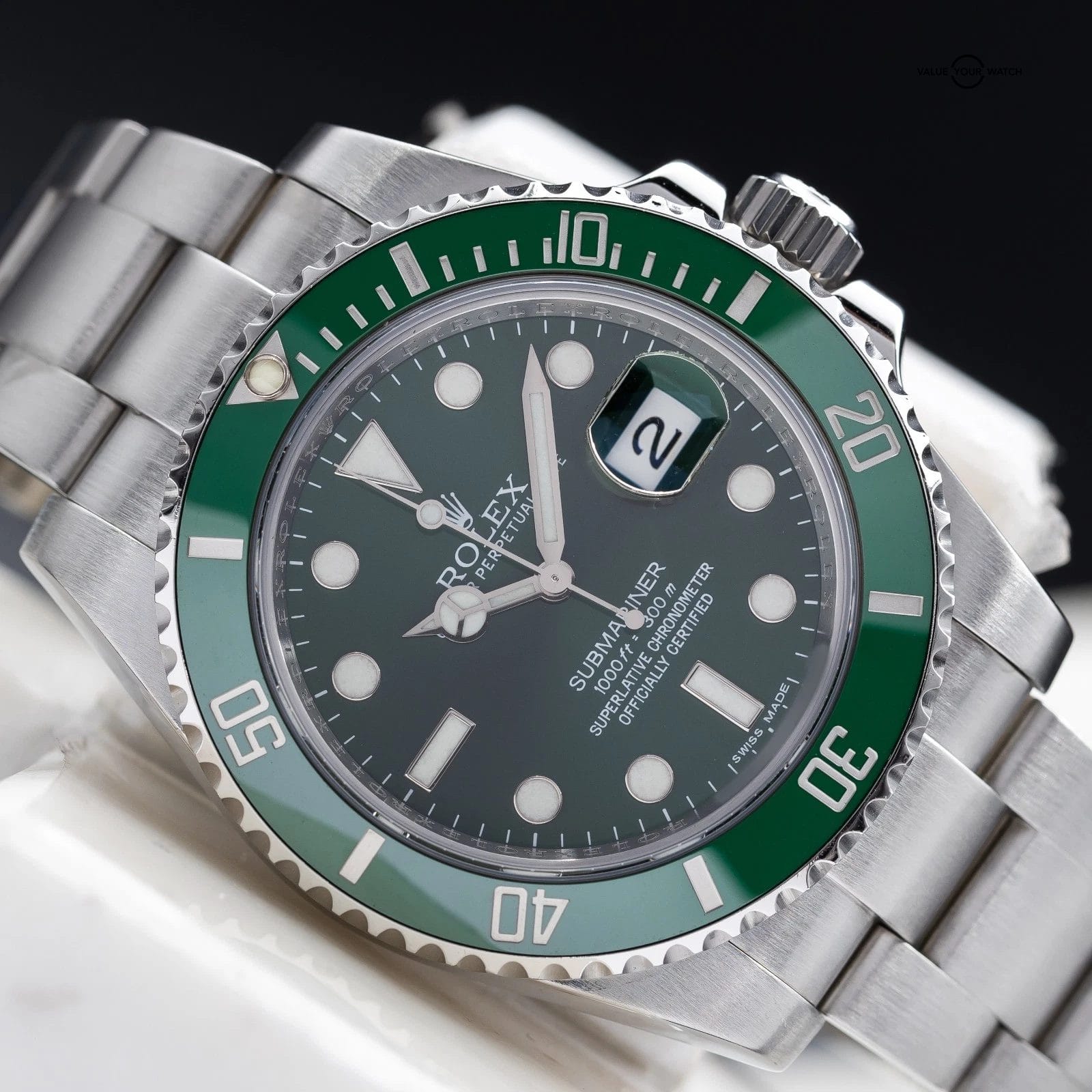 The Rolex Submariner “Hulk” brings a punch of color to Rolex’s most legendary dive watch. With its vibrant sunburst green dial and matching ceramic bezel, it is the ultimate green machine. The 40mm Oystersteel case, beefy lugs, and iconic Oyster bracelet give it that rugged, go-anywhere toughness, while the trusted Caliber 3135 keeps it running with flawless Rolex precision. Discontinued in 2020, the Hulk isn’t just a watch – it’s a collectible icon with serious bragging rights. If you want a Submariner that makes a statement every time it catches the light, this is the one.