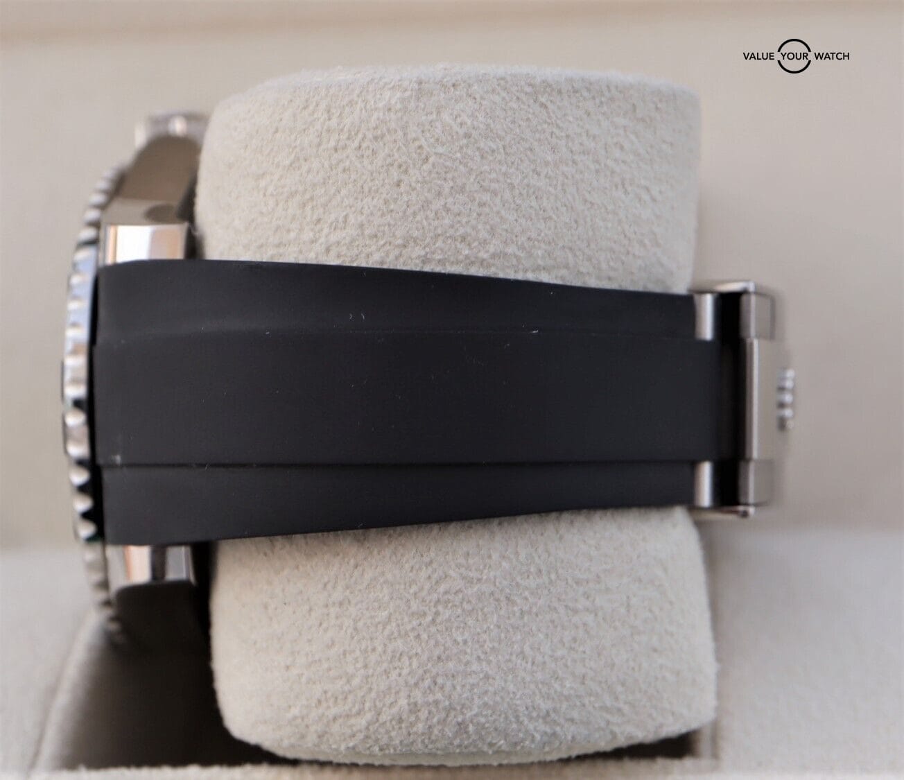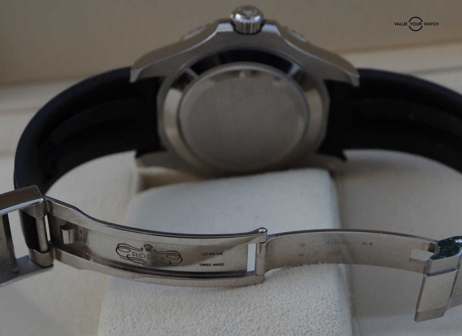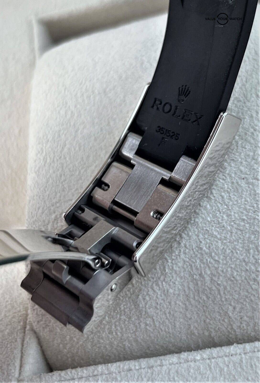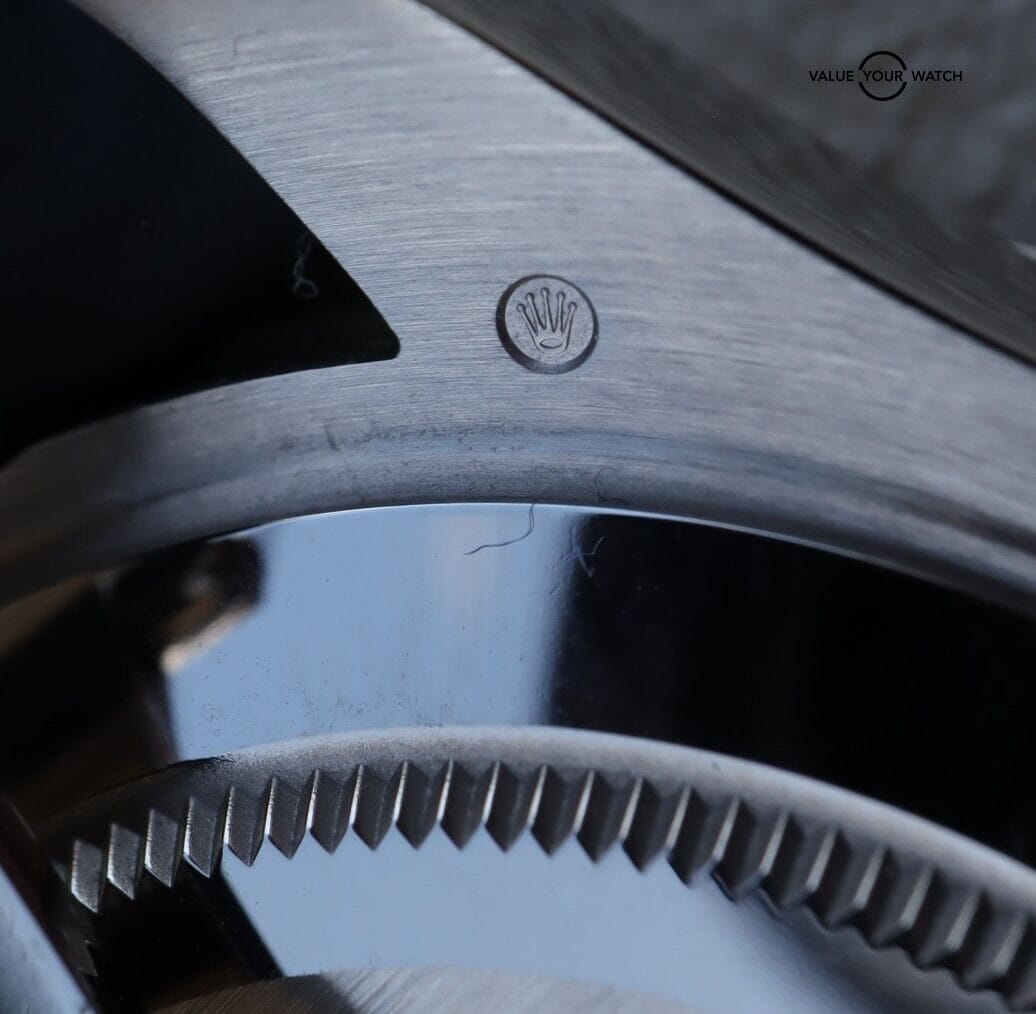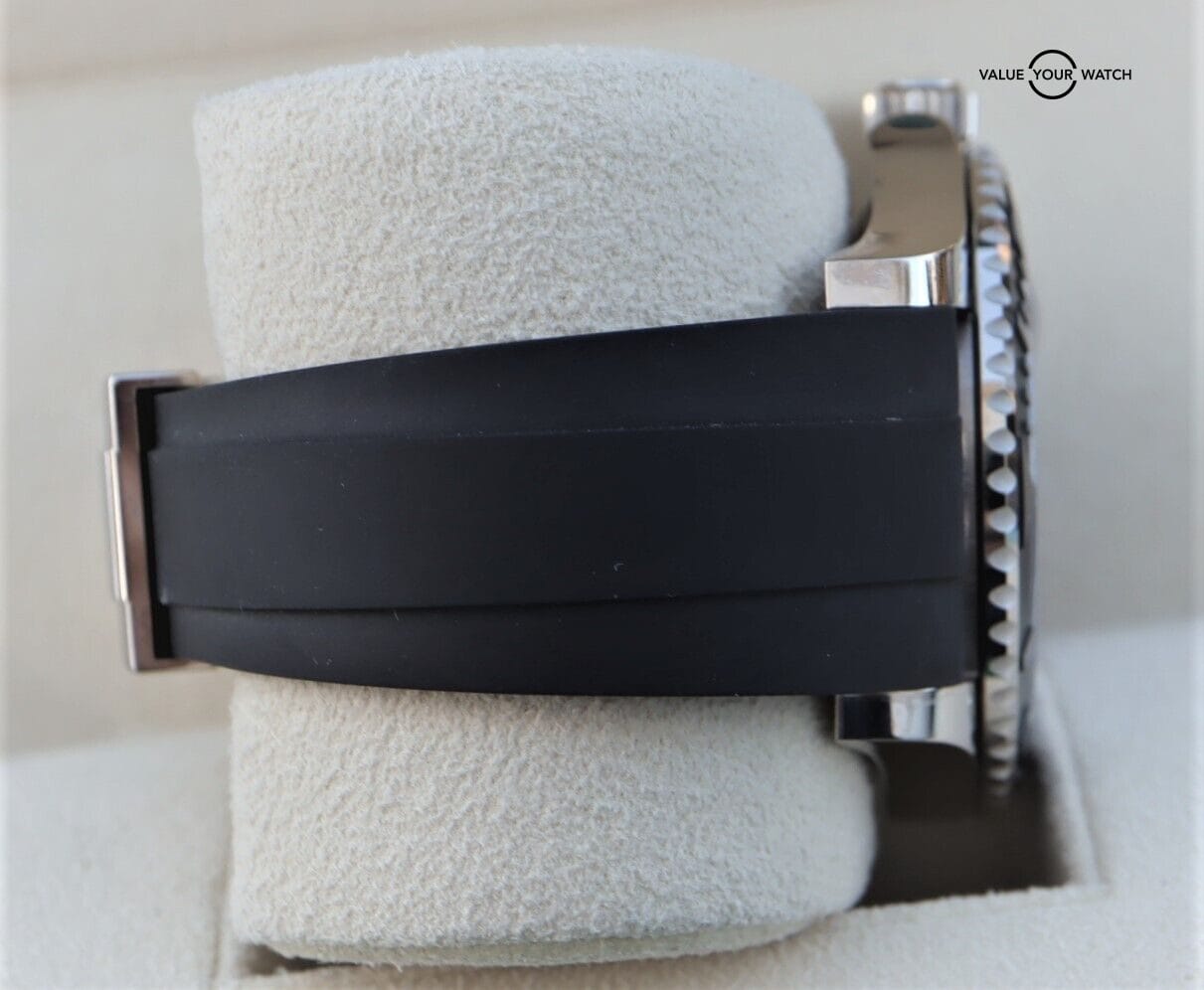 The timepiece is in nice pre-owned condition with just minor cosmetic wear throughout. The sapphire crystal & ceramic insert are both clean with no nicks or scratches. You can enjoy wearing it comfortably, as the oysterflex bracelet with the glidelock clasp will accommodate a wrist size ranging from 7-7.5” wrist. It comes with E-F sizes.