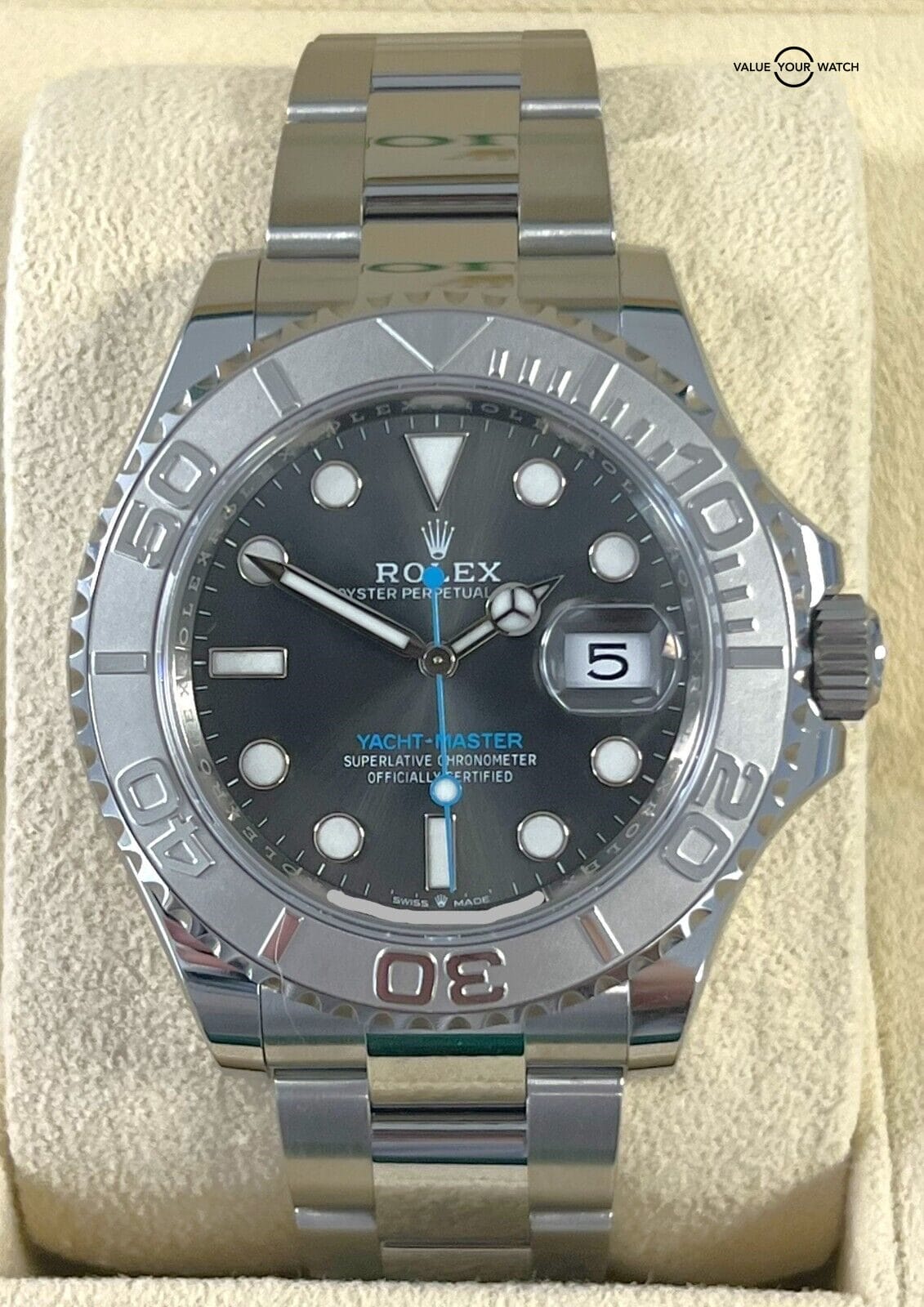 When purchasing the 2023 Rolex Yacht-Master 126622, it’s crucial to verify the authenticity of the watch. Buy from reputable dealers or platforms that guarantee the legitimacy of their timepieces. Check for the original BOXES/PAPERS, as they are important indicators of authenticity.