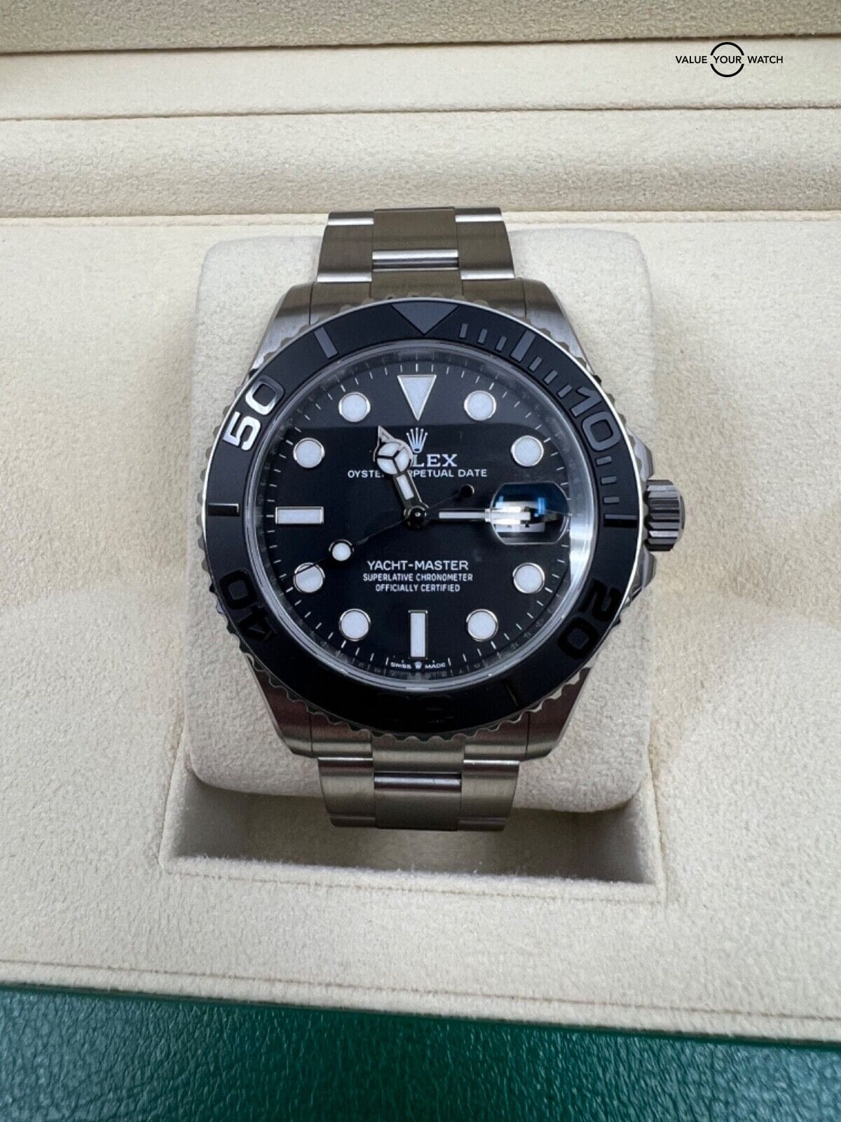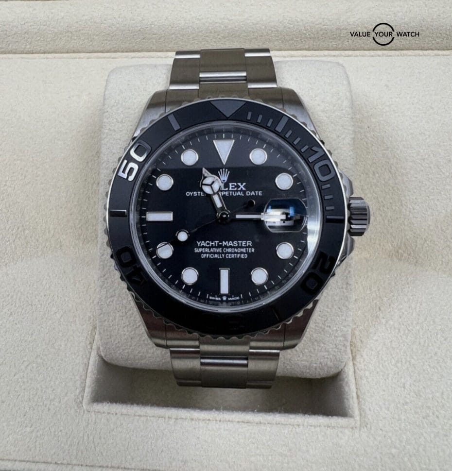 BLACK CERAMIC BEZEL, BLACK DIAL, Date, ROLEX, Rotating Bezel, YACHTMASTER
