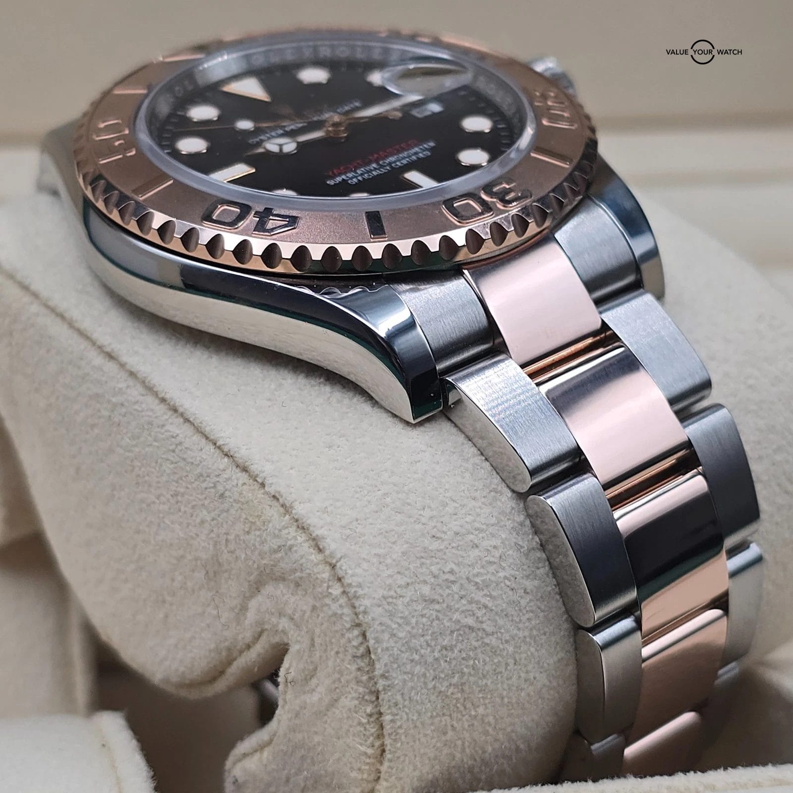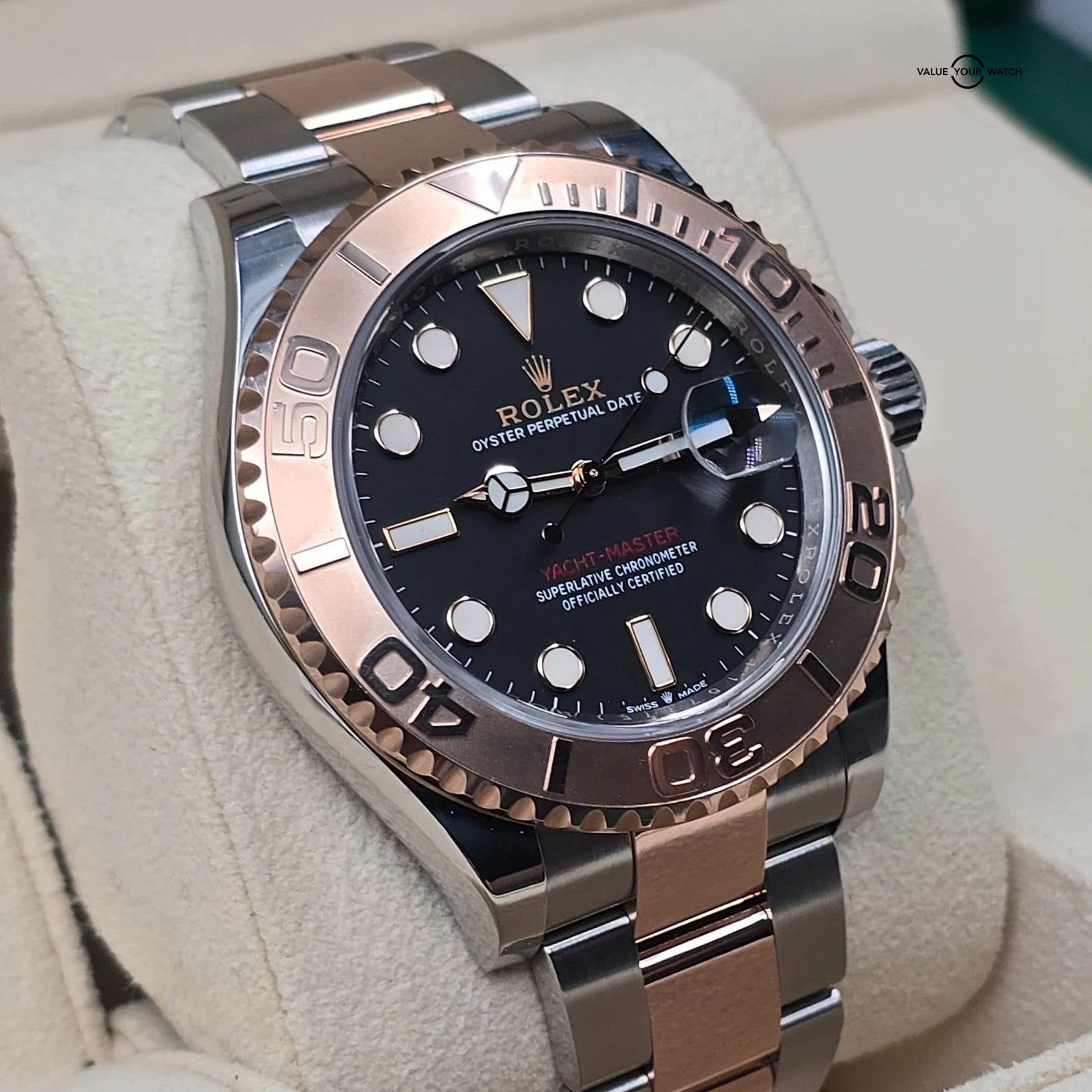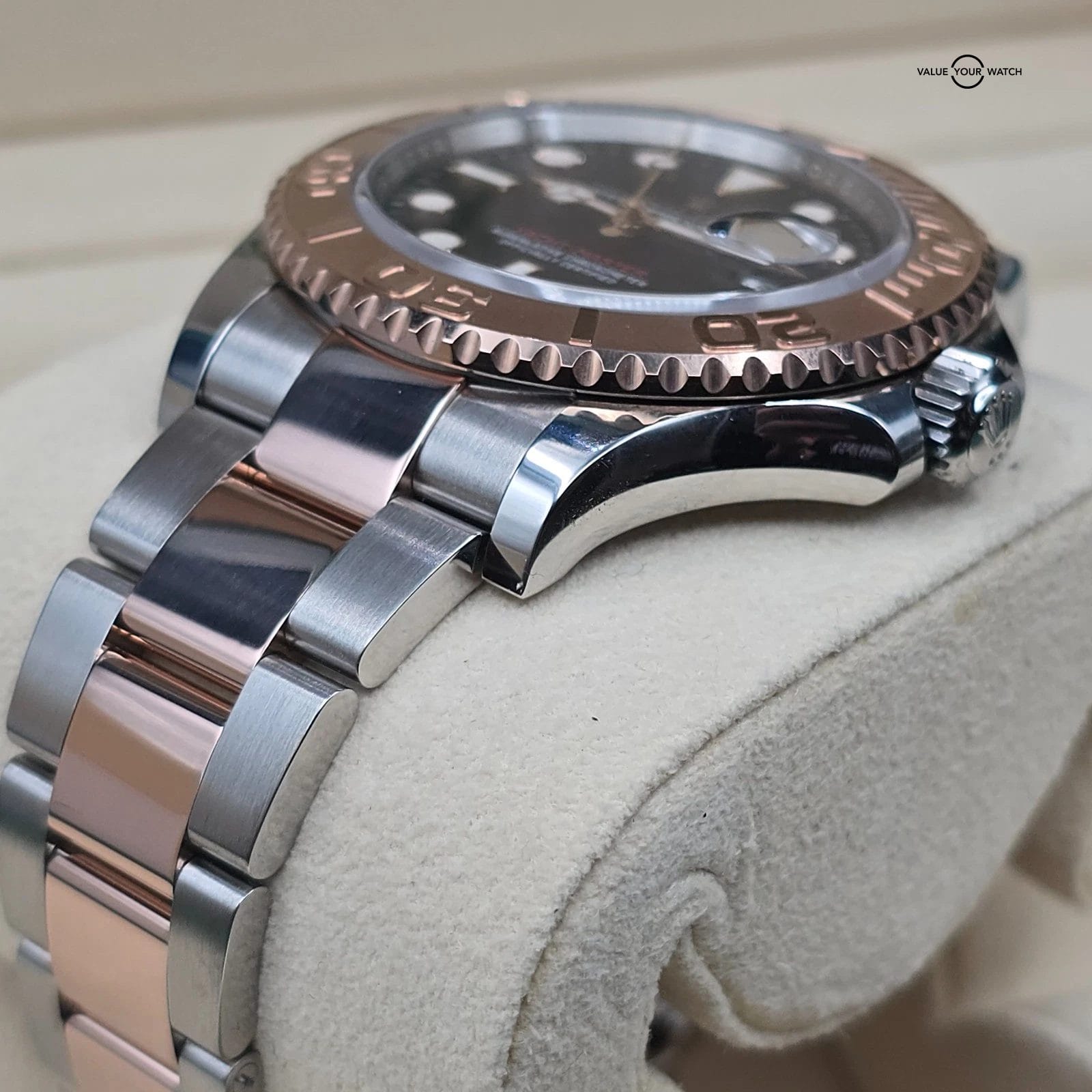 For sale here is an excellent example of the Rolex Yacht-Master 1. This one has the matte black dial, which looks very nice against the rose gold bezel. Ref. 126621.