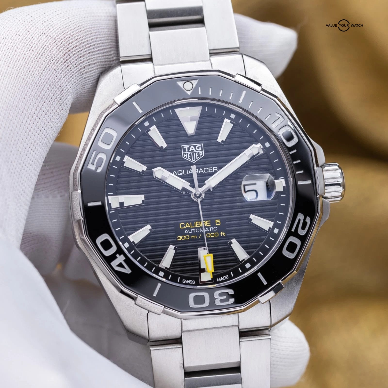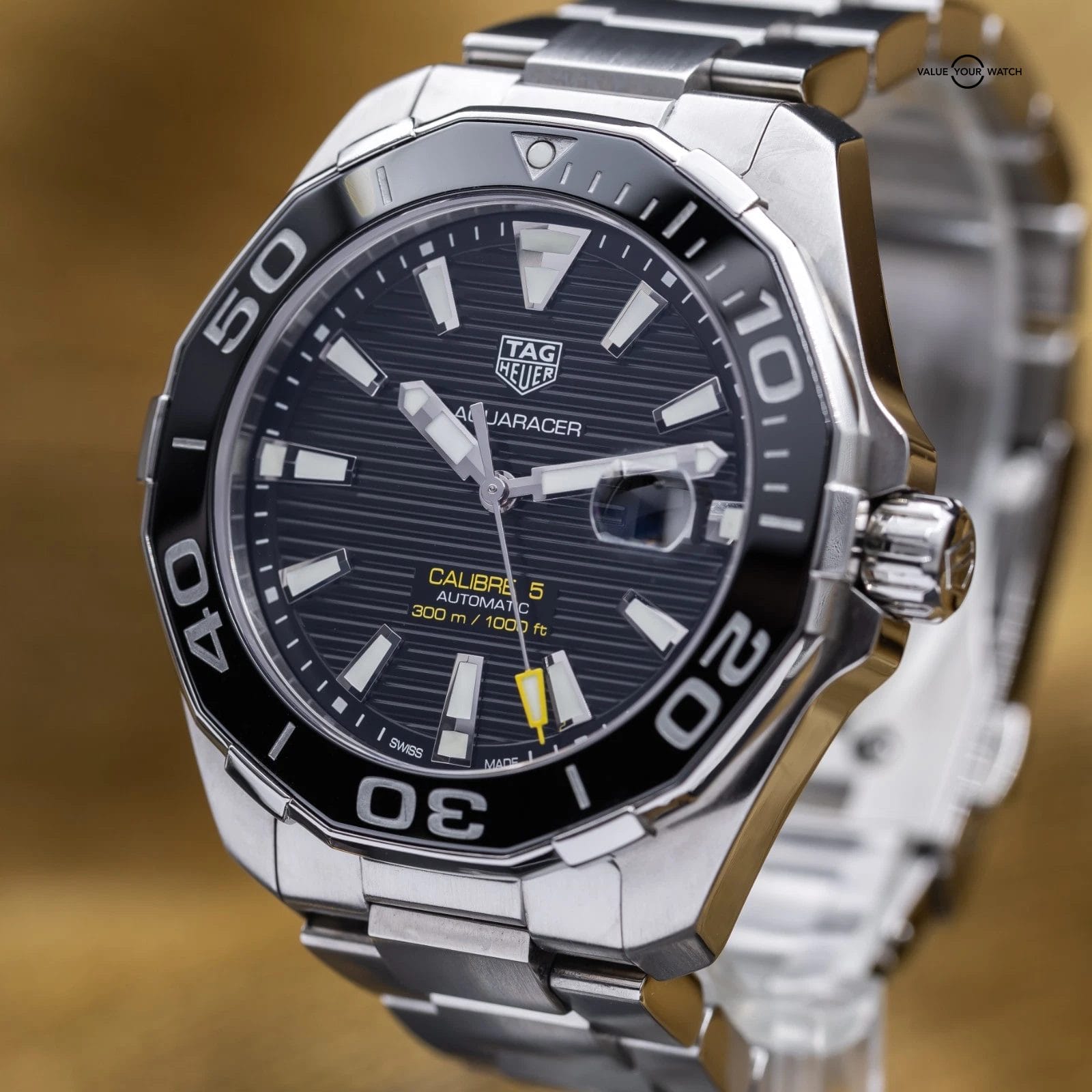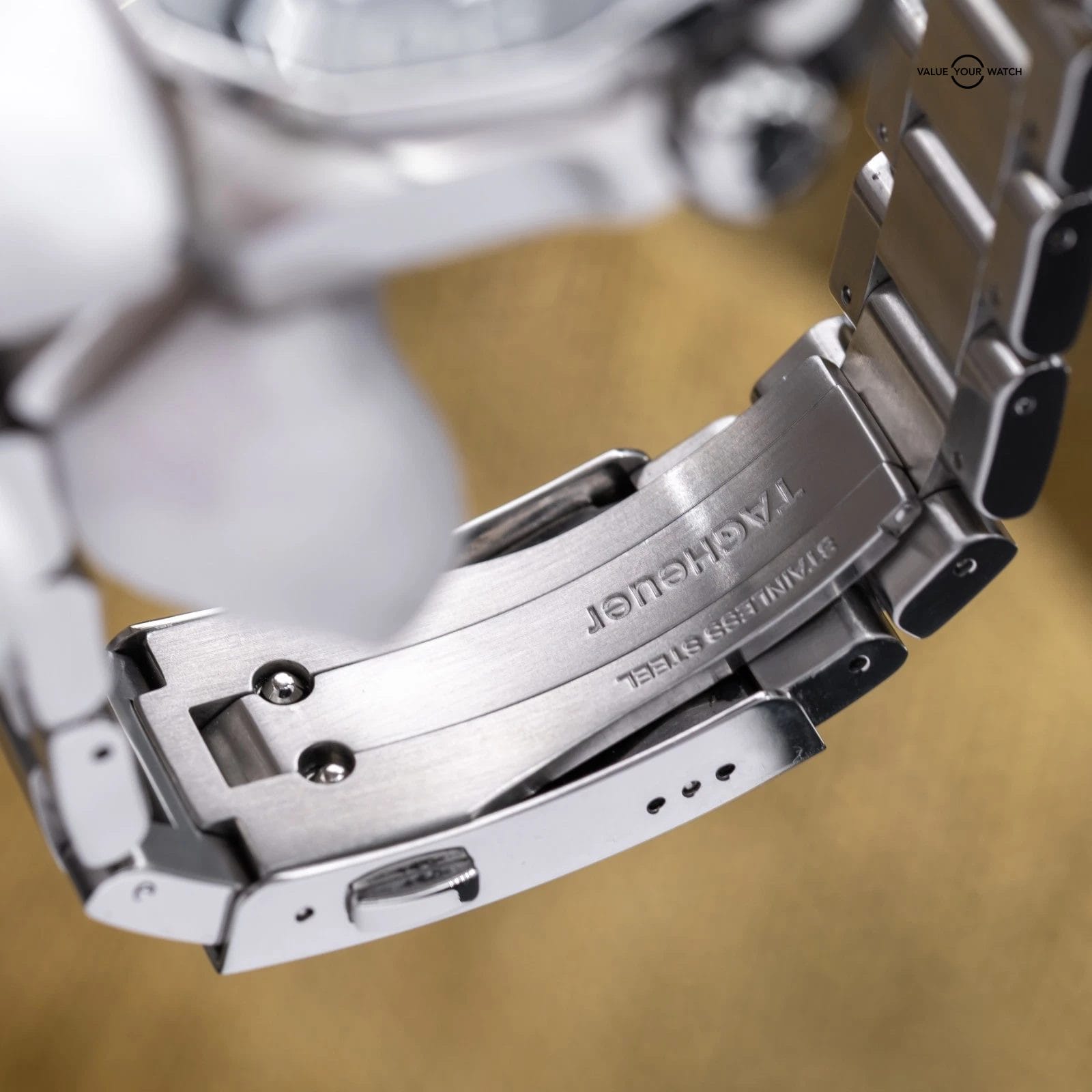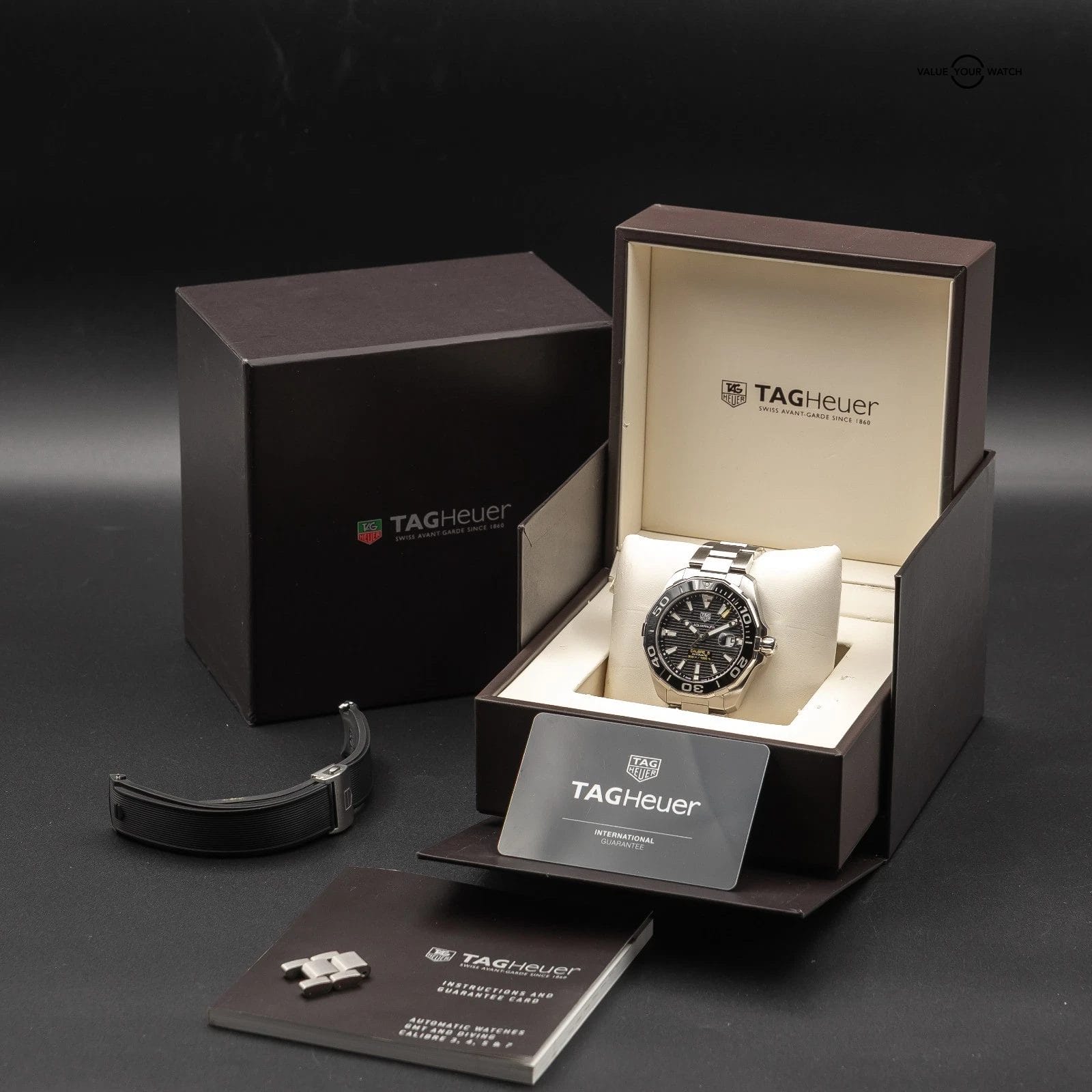This watch is pre-owned, originally purchased in 2017. Included are boxes and papers from the authorized TAG Heuer dealer, as well as the addition of the TAG Heuer rubber strap and steel deployant buckle. It is in complete working order and keeping great time. The bezel, crystal and bracelet are in great shape. Come grab it while you can!