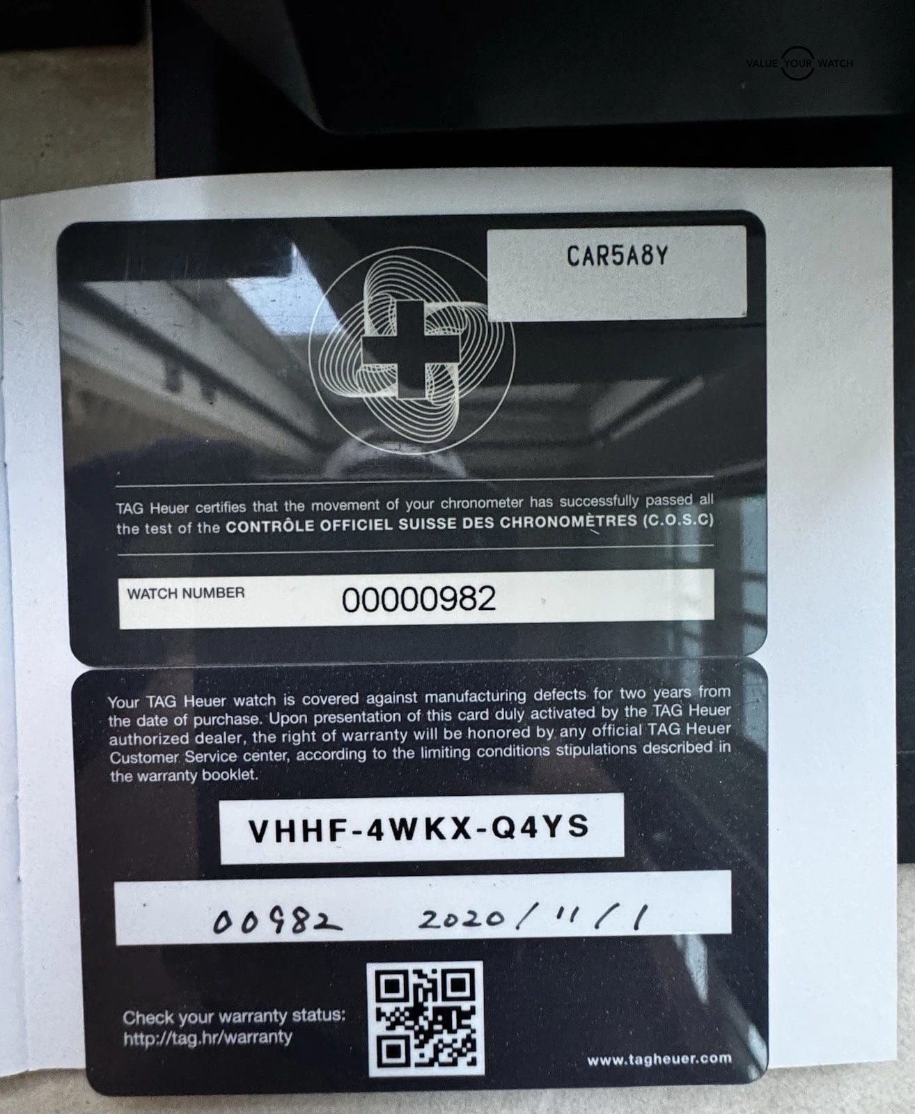 This Tourbilon Carrera comes as a complete set dated 2020, including the special edition wooden box and both cards (warranty and chronometer cards). It is in very good condition, as you can see in the photos.
