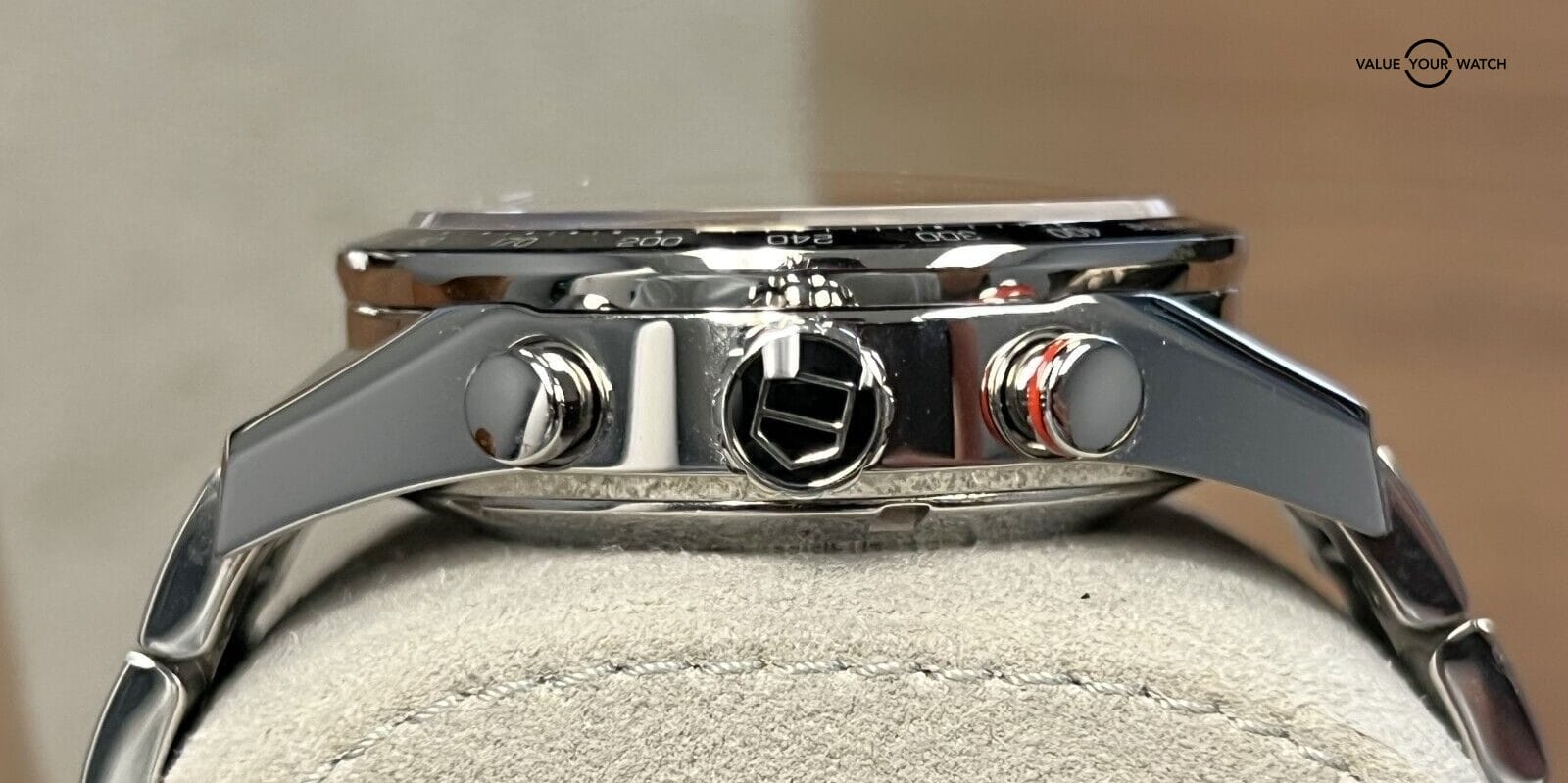 In addition to its timekeeping and chronograph functions, the Tag Heuer Carrera Calibre 16 includes a date display at the 3 o’clock position. This practical feature adds convenience to the watch, making it a well-rounded timepiece for daily use.
