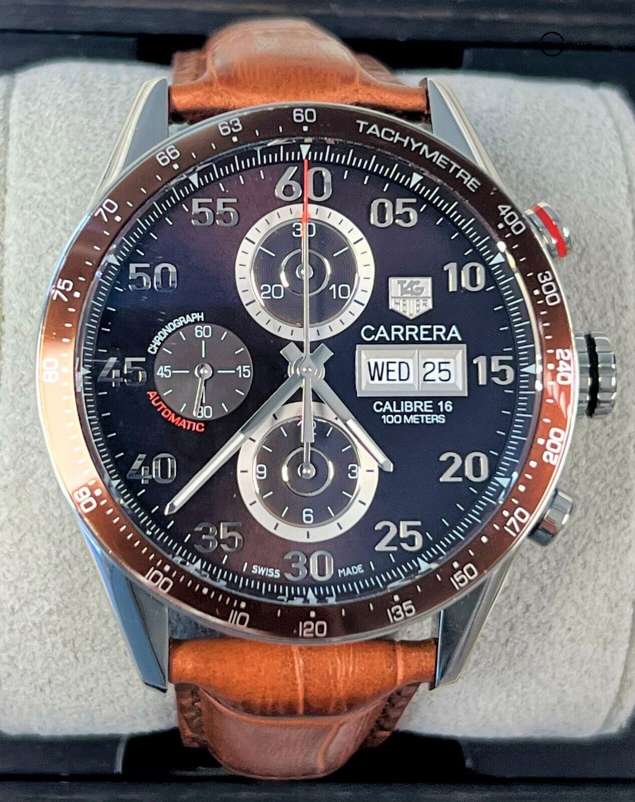 Summary of TAG Heuer Carrera Calibre 16 CV2A12 Calibre 16 Day Date Chronograph Brown Dial!