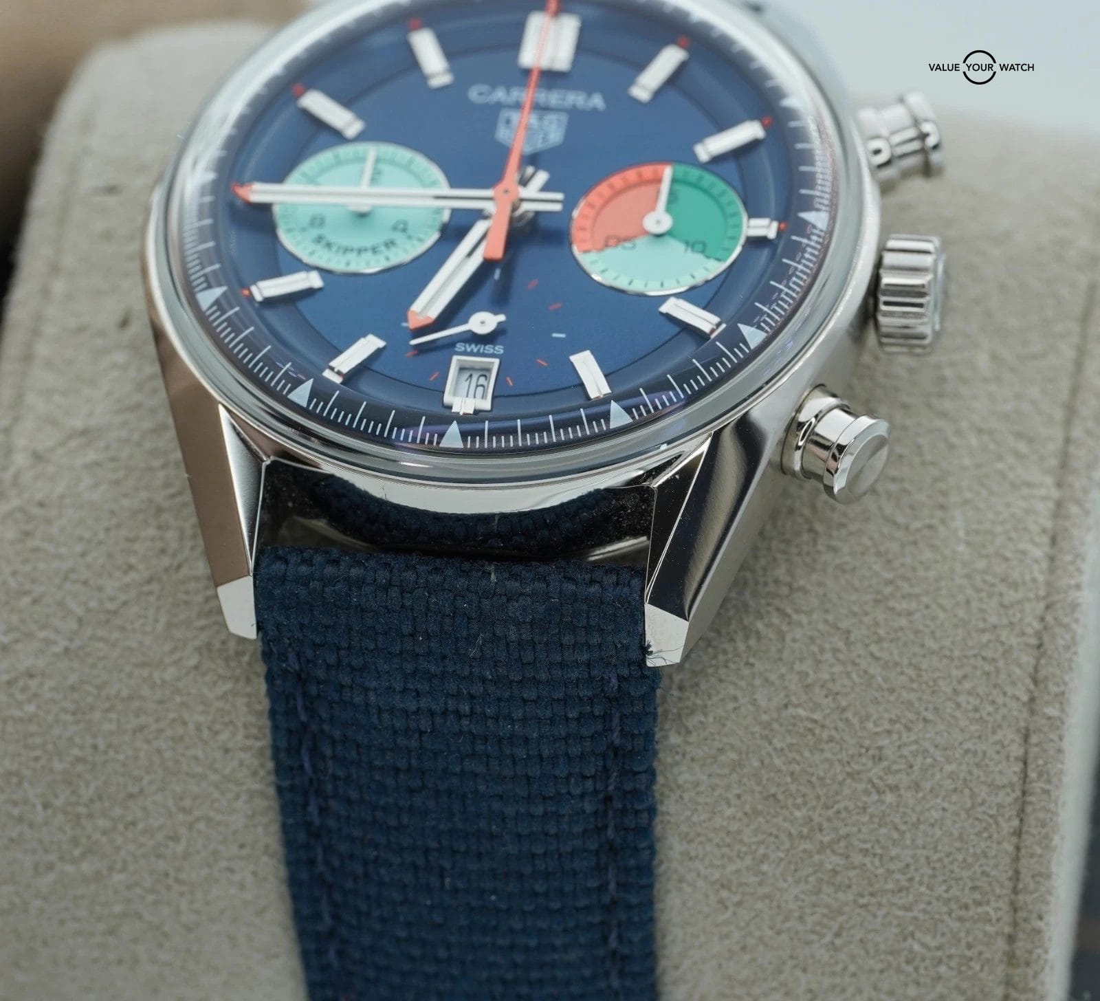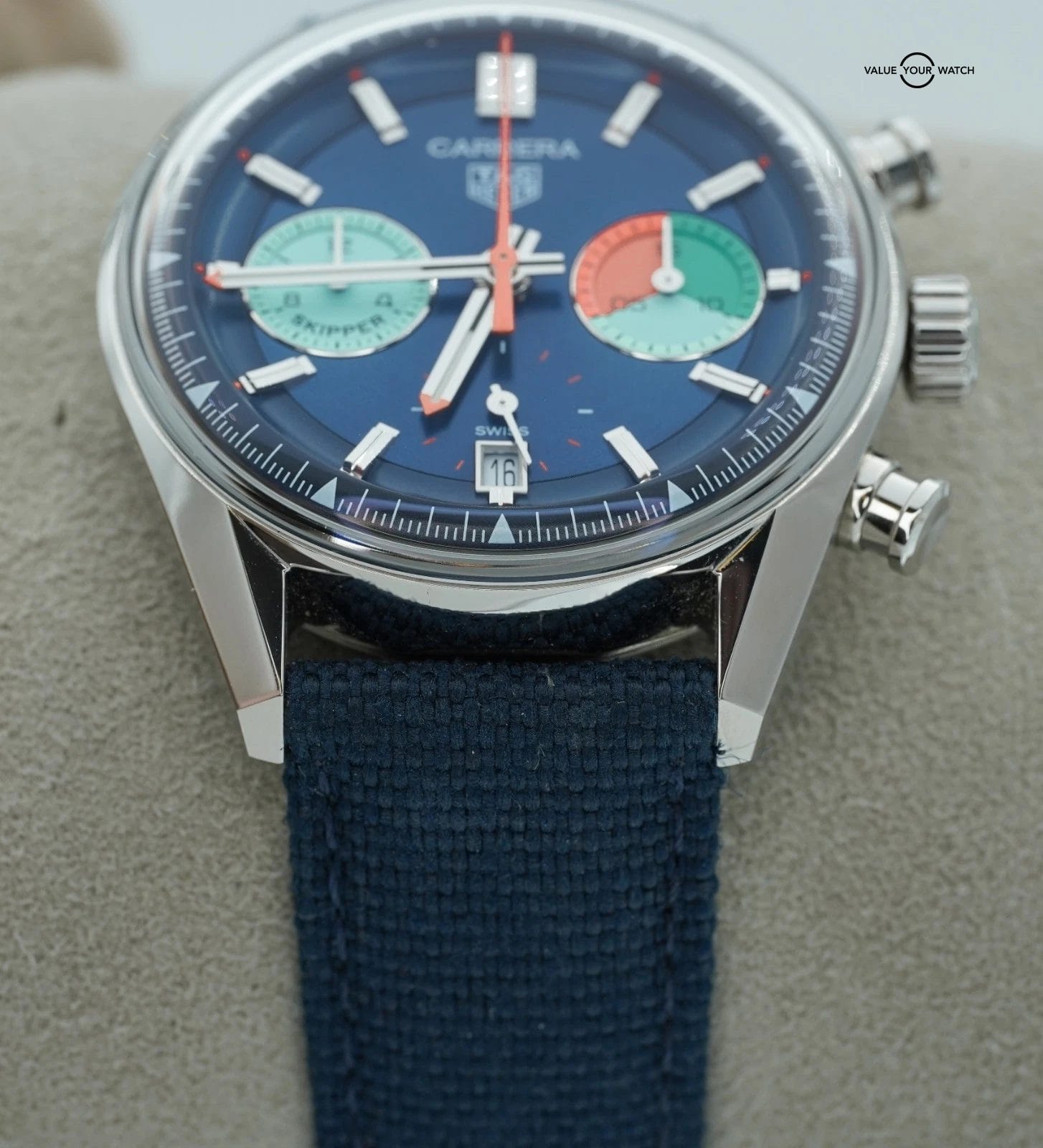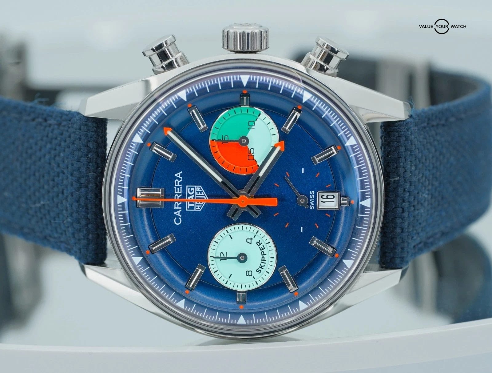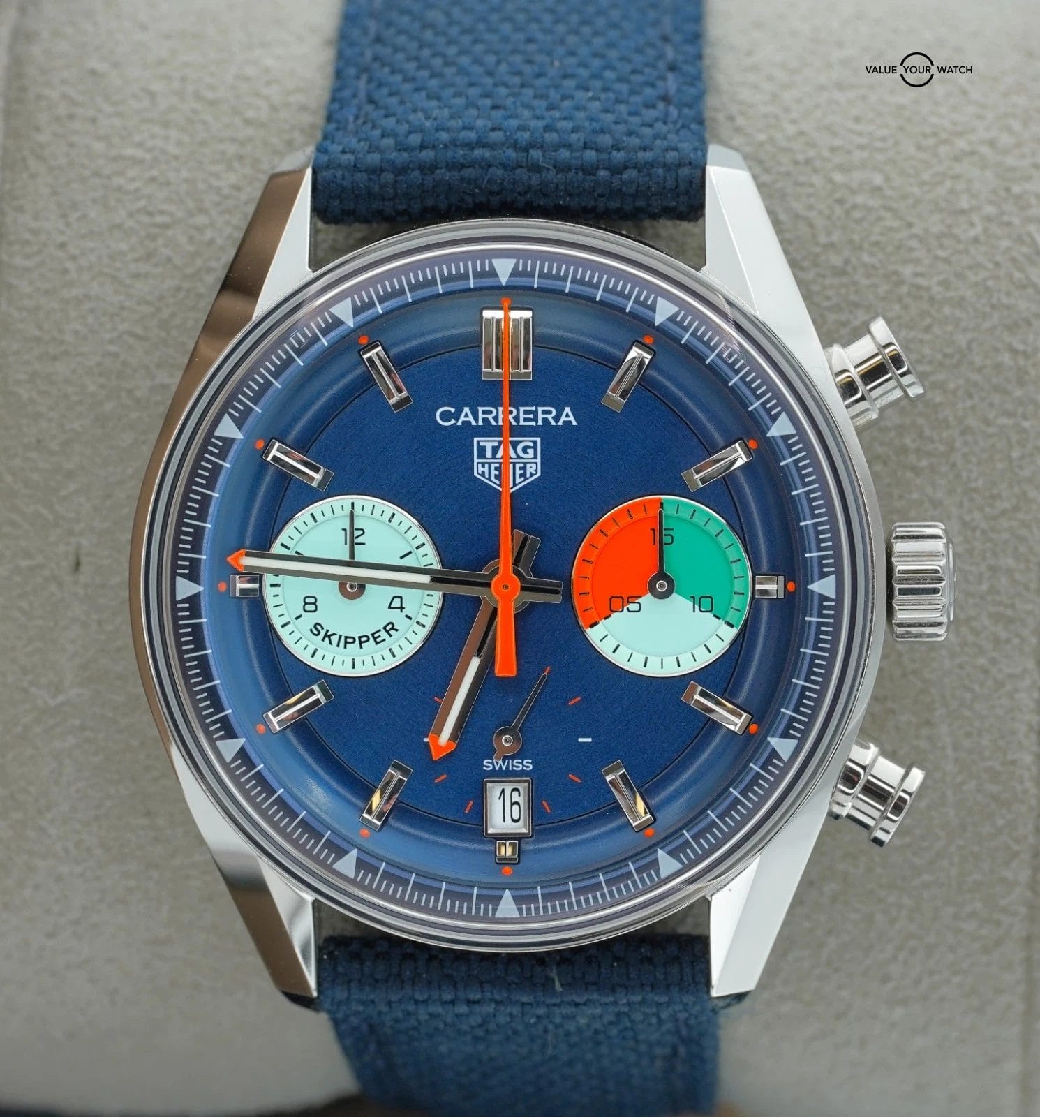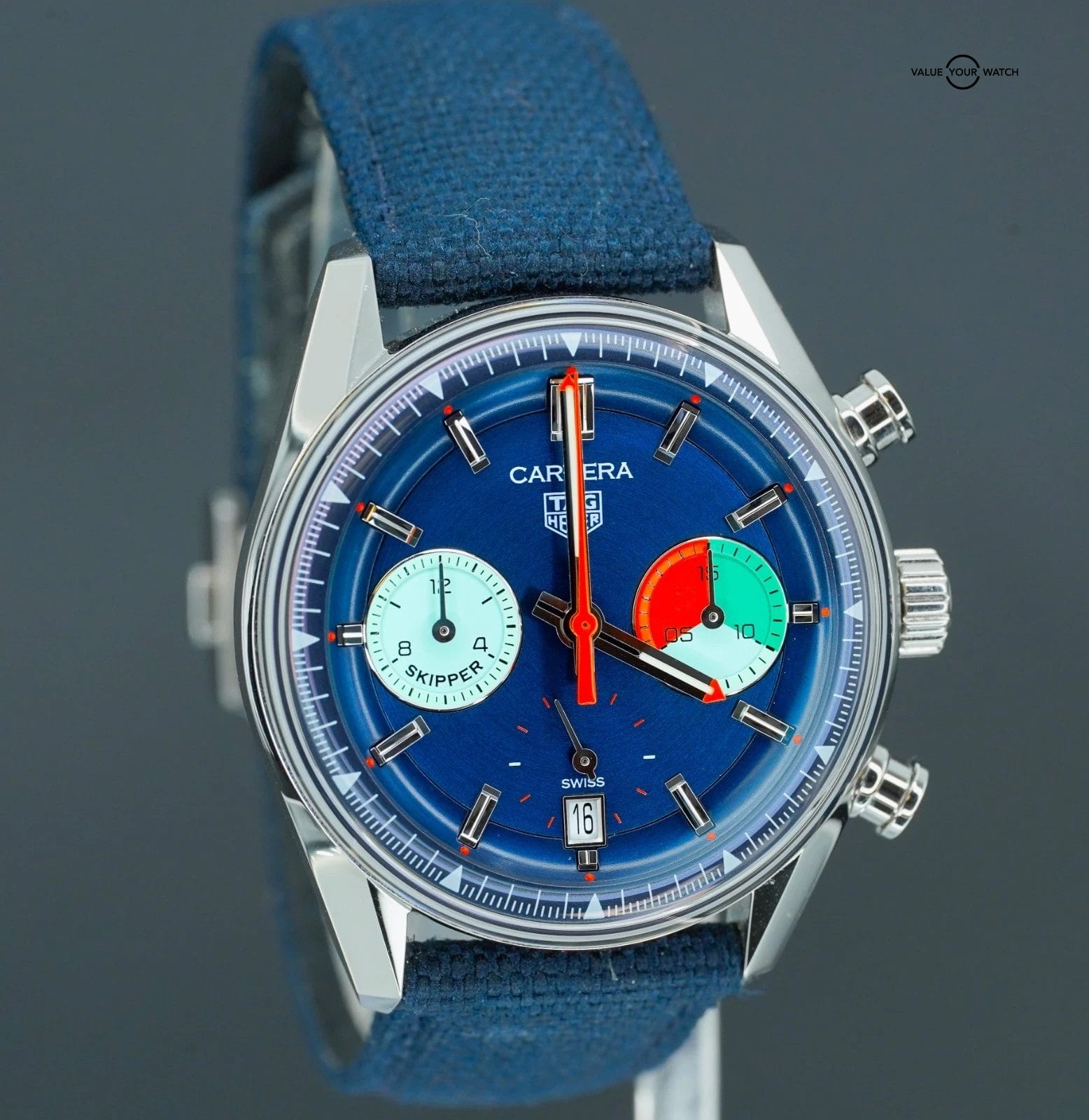 Specification: Tag Heuer Carrera Skipper Chronograph 39mm Blue Dial BOX/PAPERS!