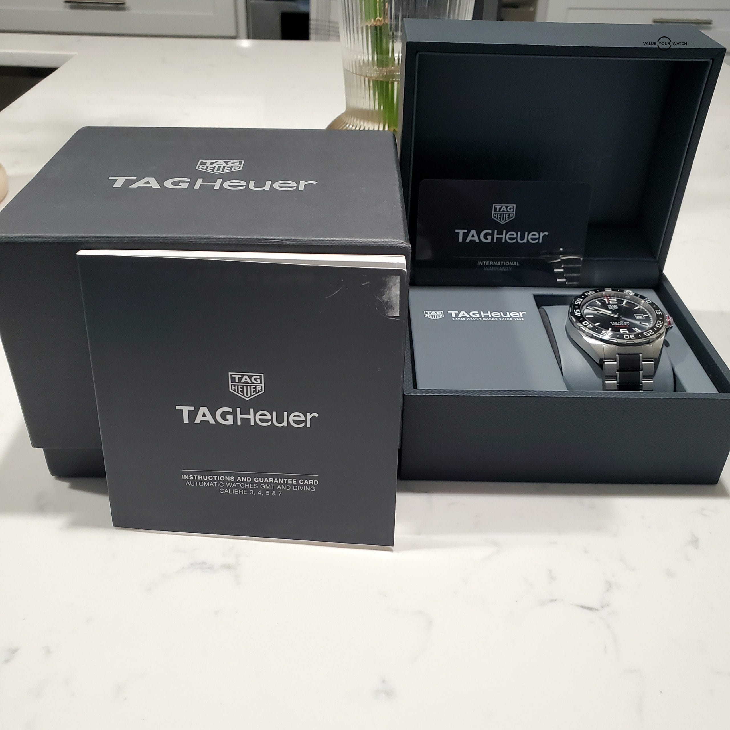 Your purchase will include: Tag Heuer Formula 1, Inner and Outer Box, Instruction Manual, International Warranty Card, and Link.