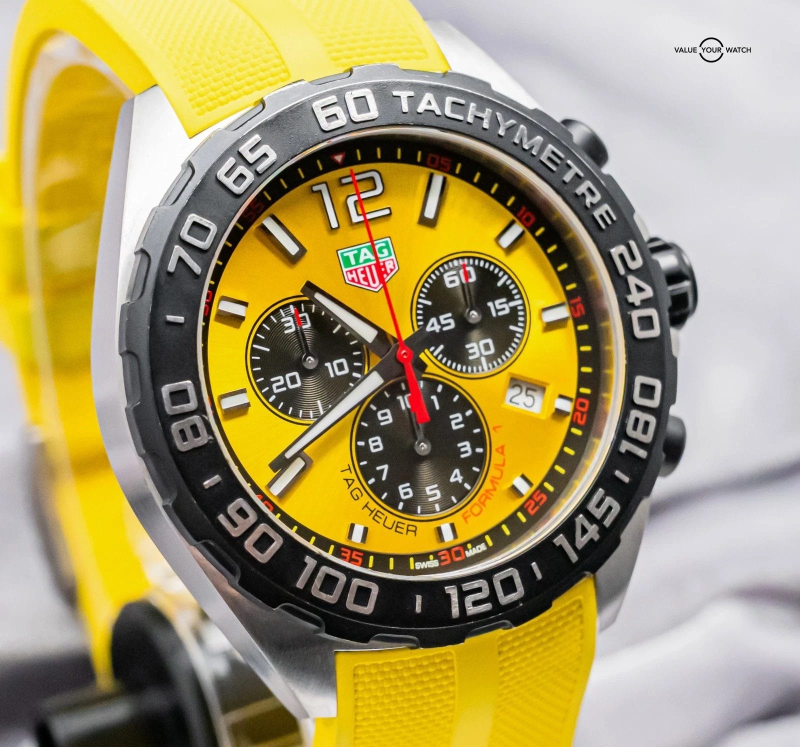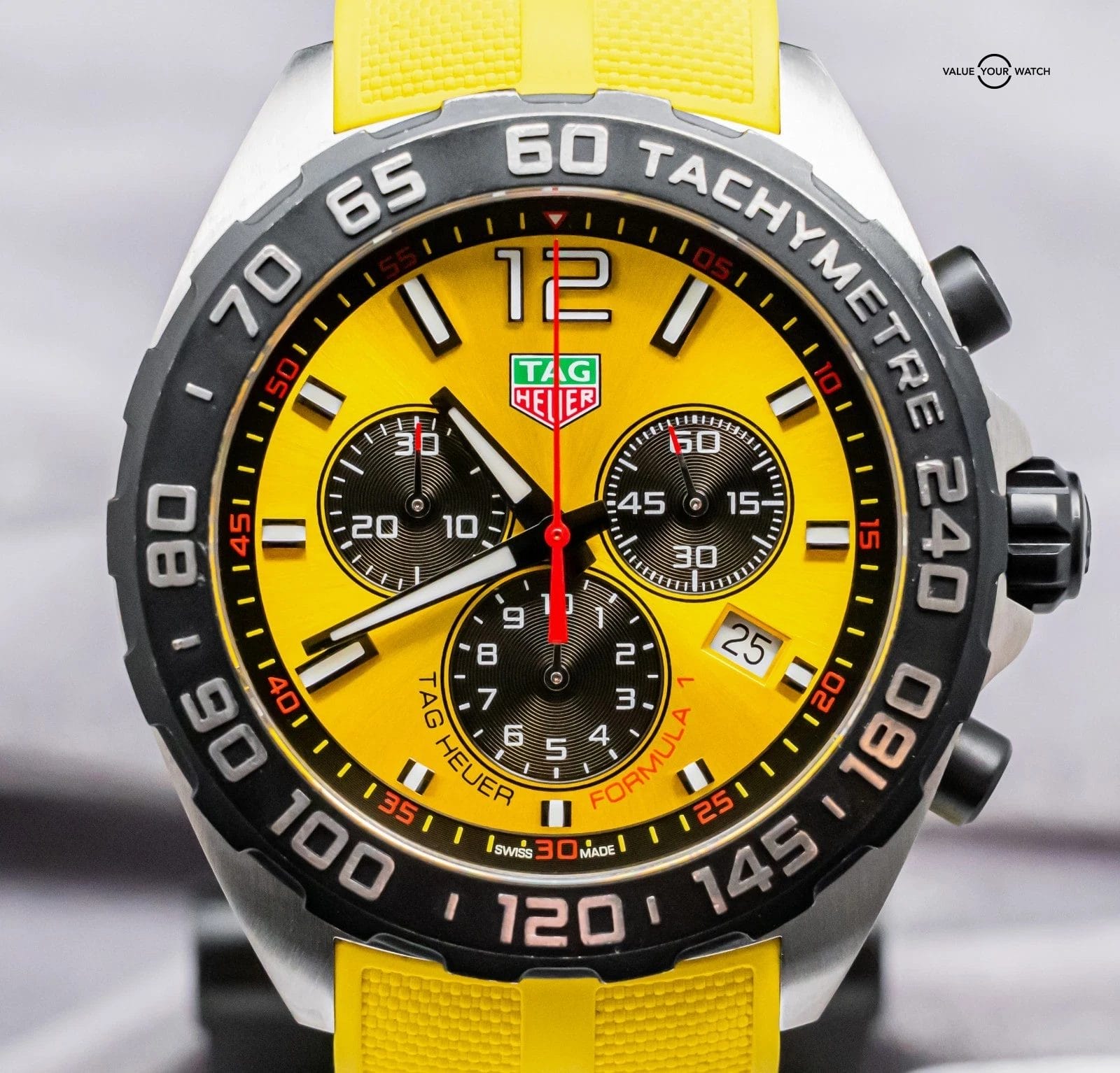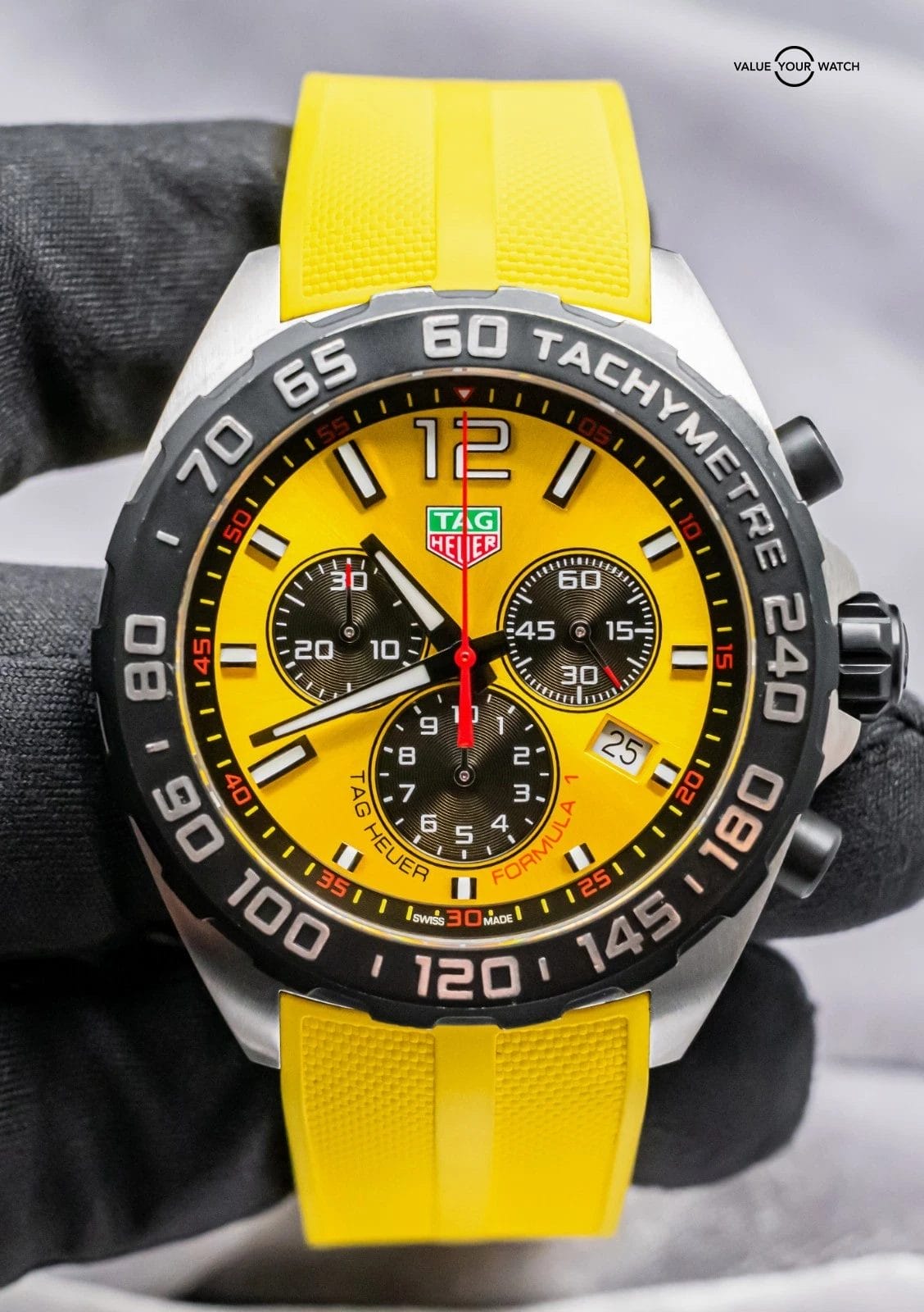 Specification: Tag Heuer Formula 1 Chronograph 43mm Yellow Dial Complete 2023 CAZ101AM.FT8054