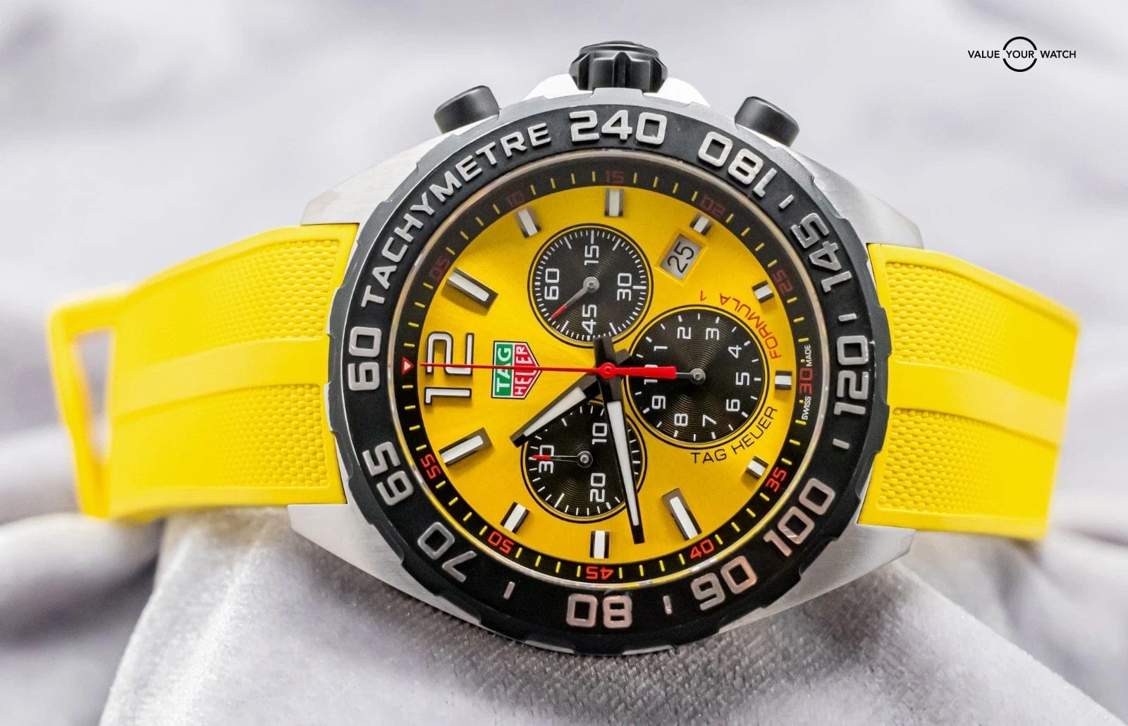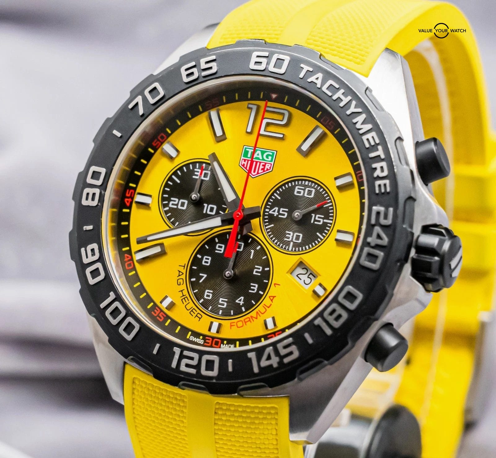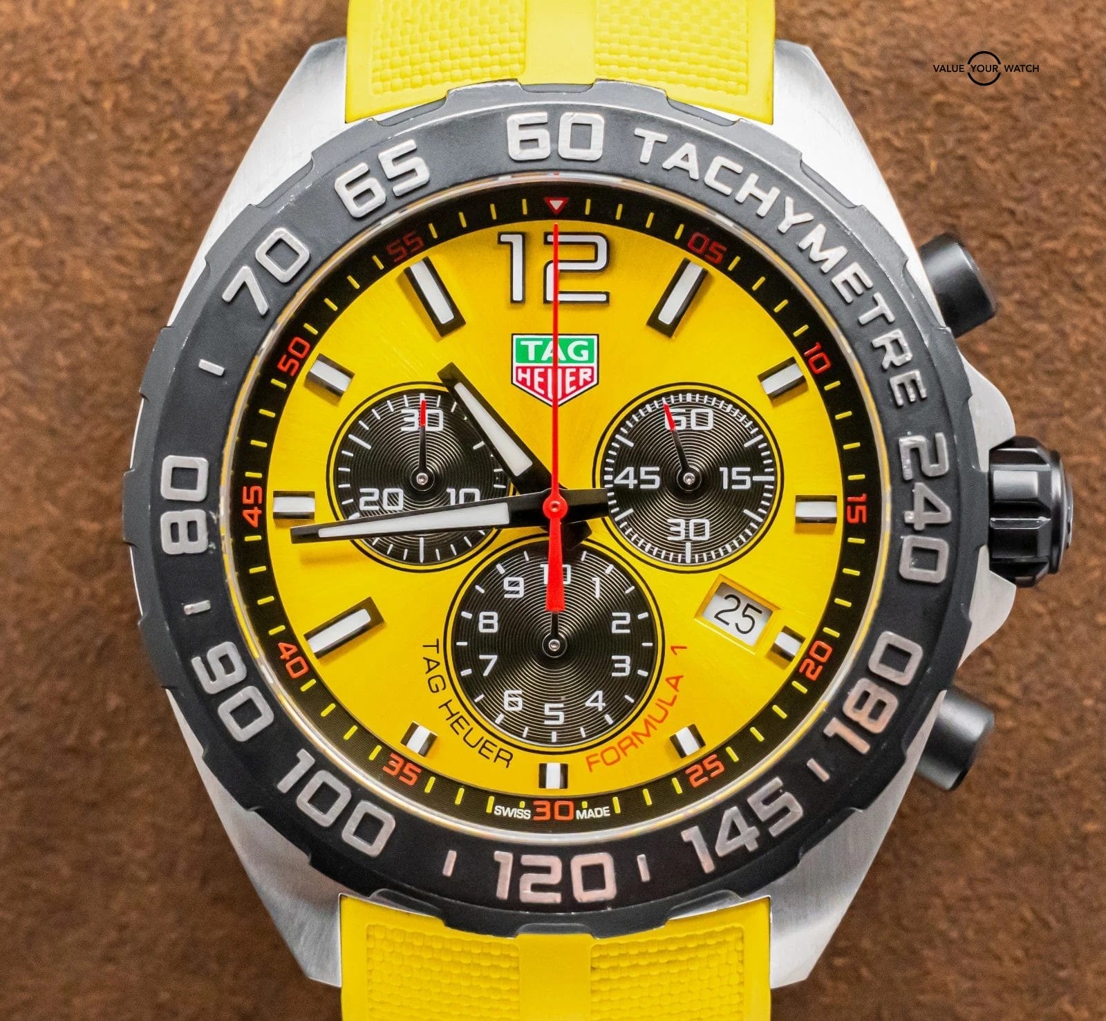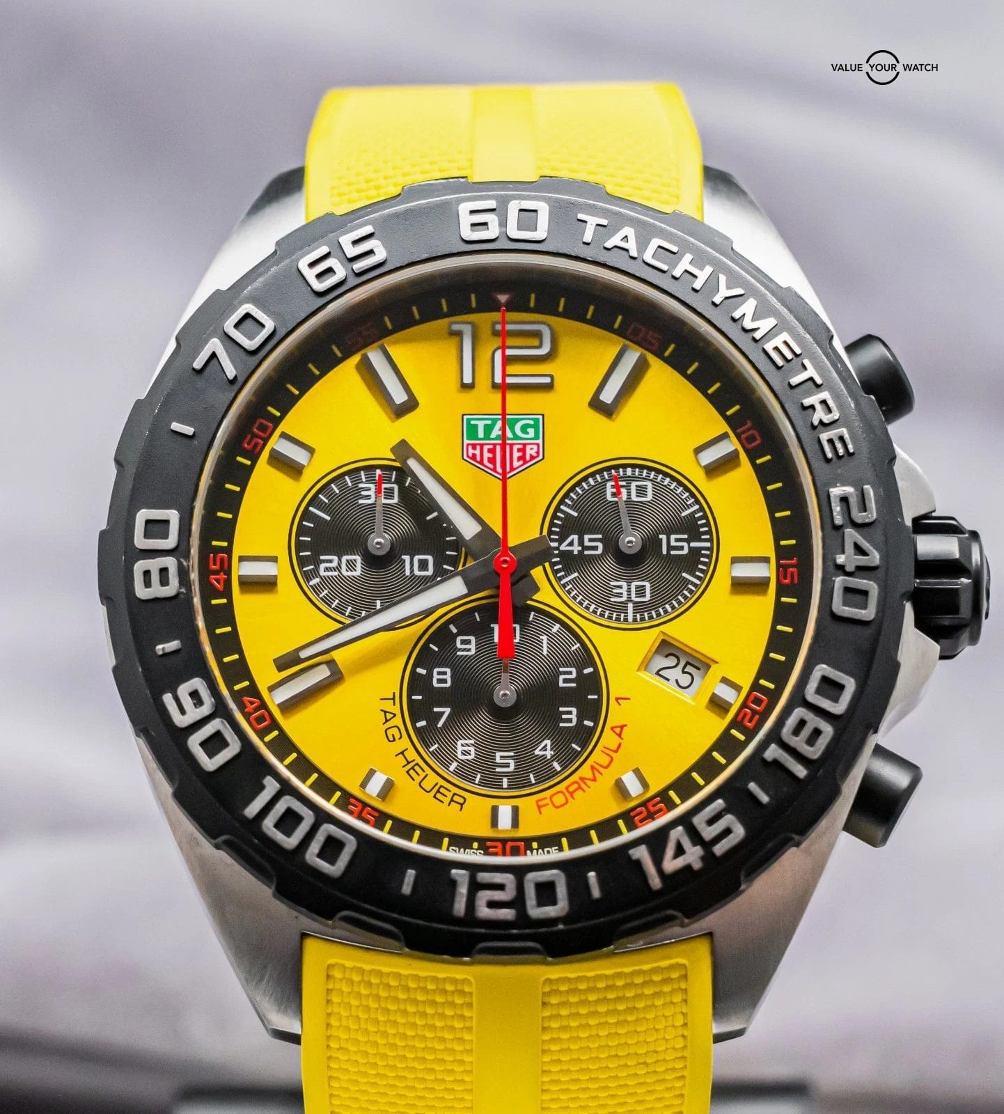 Specification: Tag Heuer Formula 1 Chronograph 43mm Yellow Dial Complete 2023 CAZ101AM.FT8054