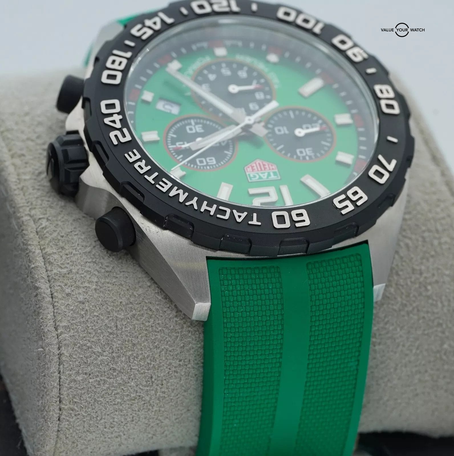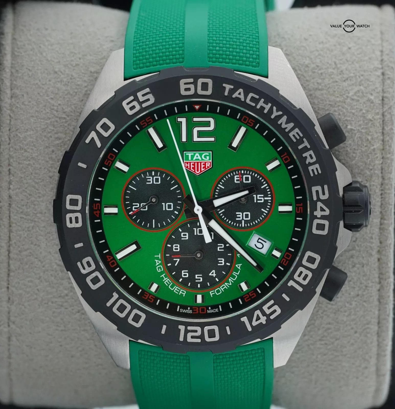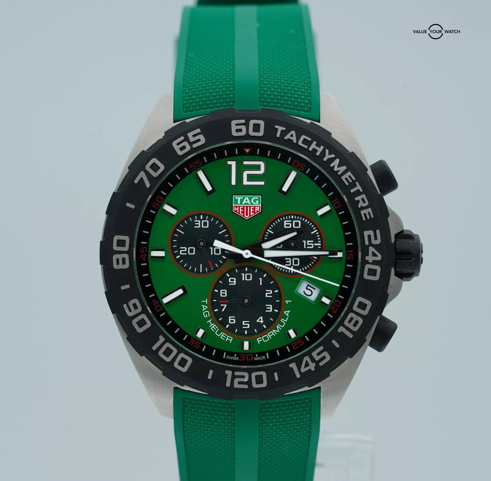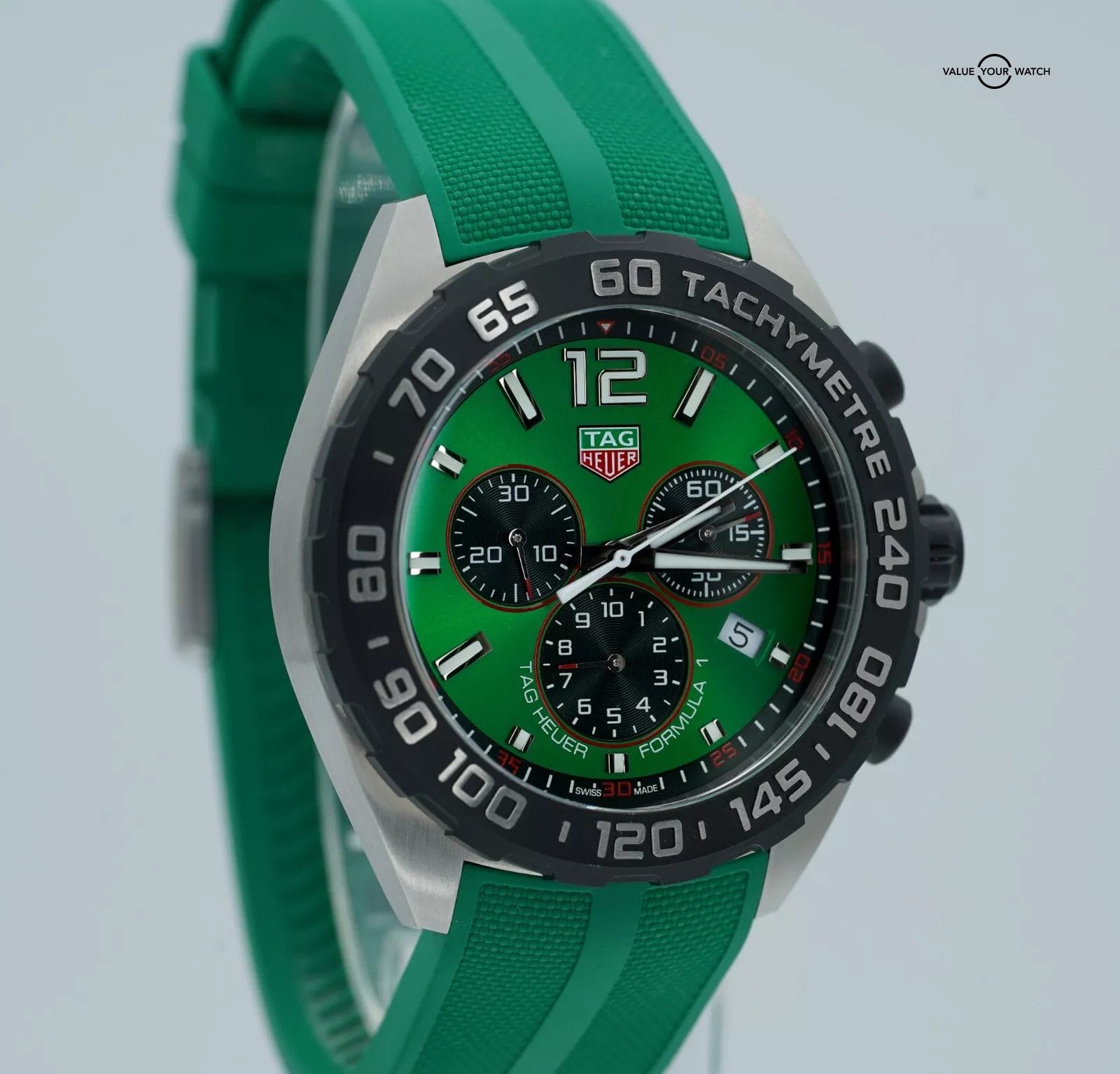 Specification: Tag Heuer Formula 1 Quartz Chronograph 43mm SS/Green CAZ101AP.FT8056 Boxes/Card!