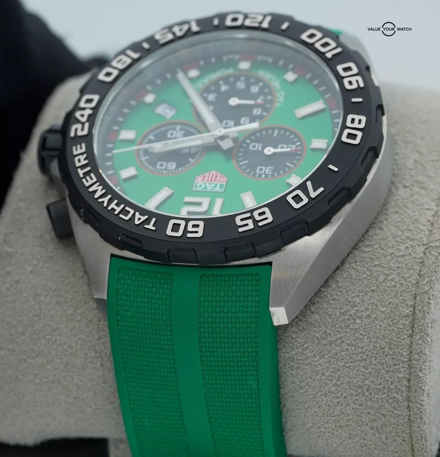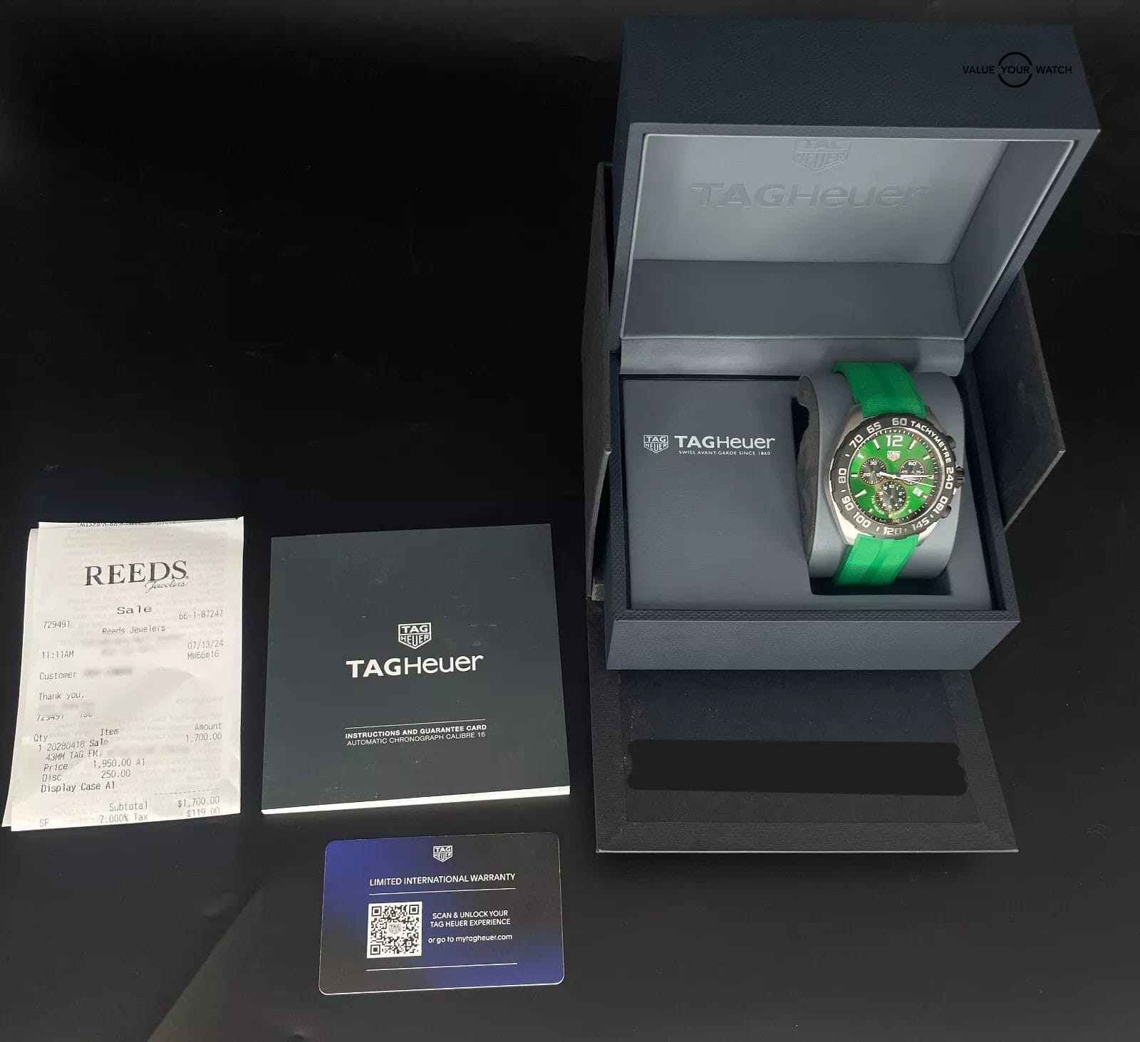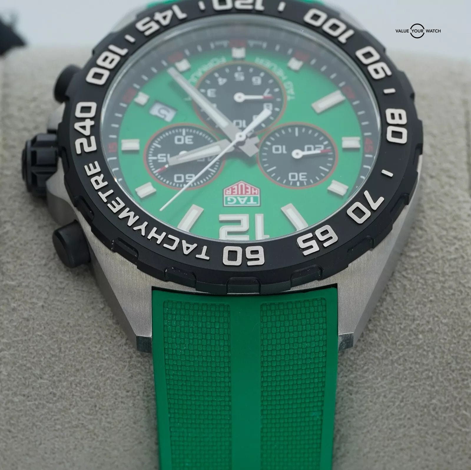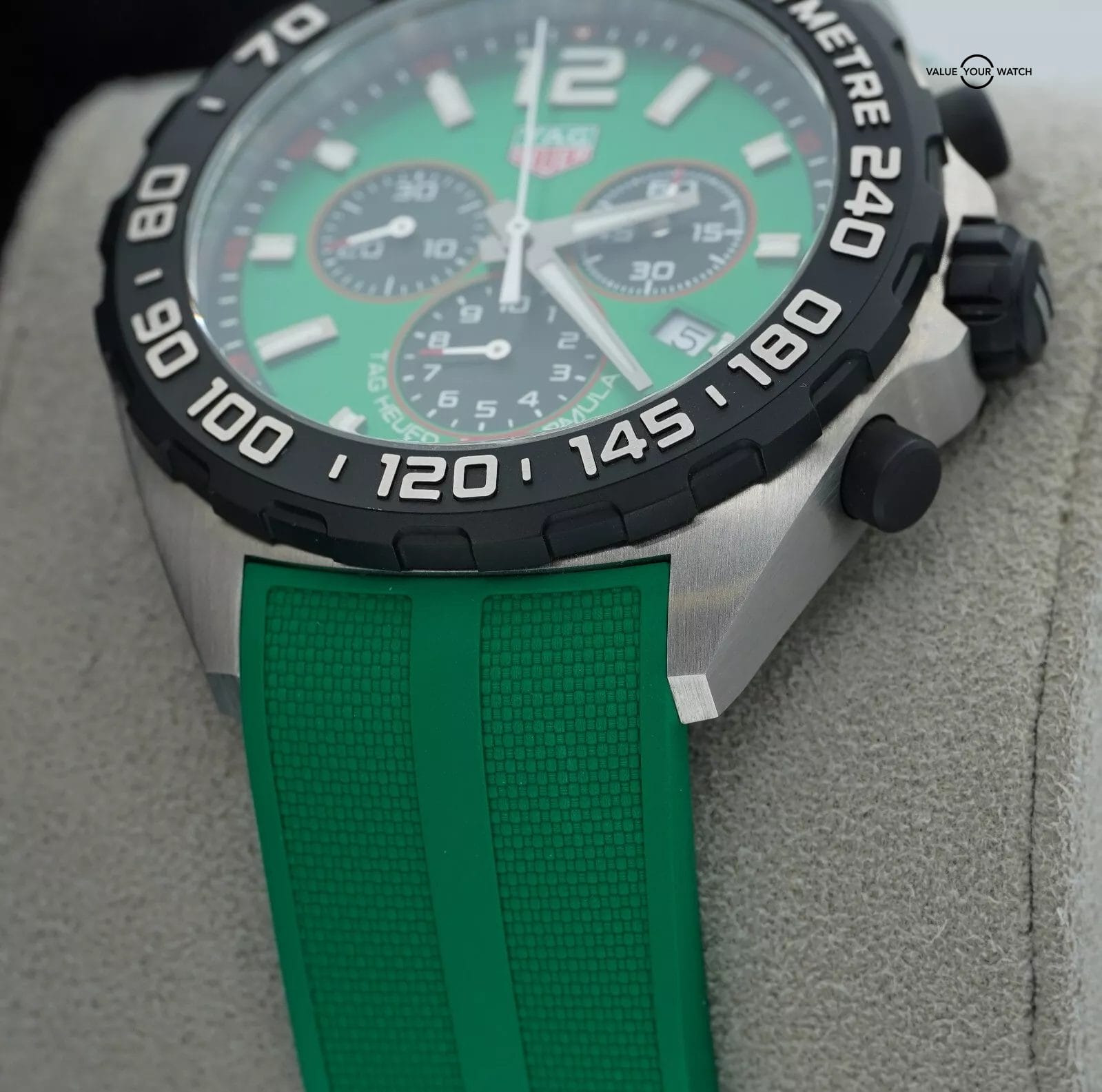 Specification: Tag Heuer Formula 1 Quartz Chronograph 43mm SS/Green CAZ101AP.FT8056 Boxes/Card!