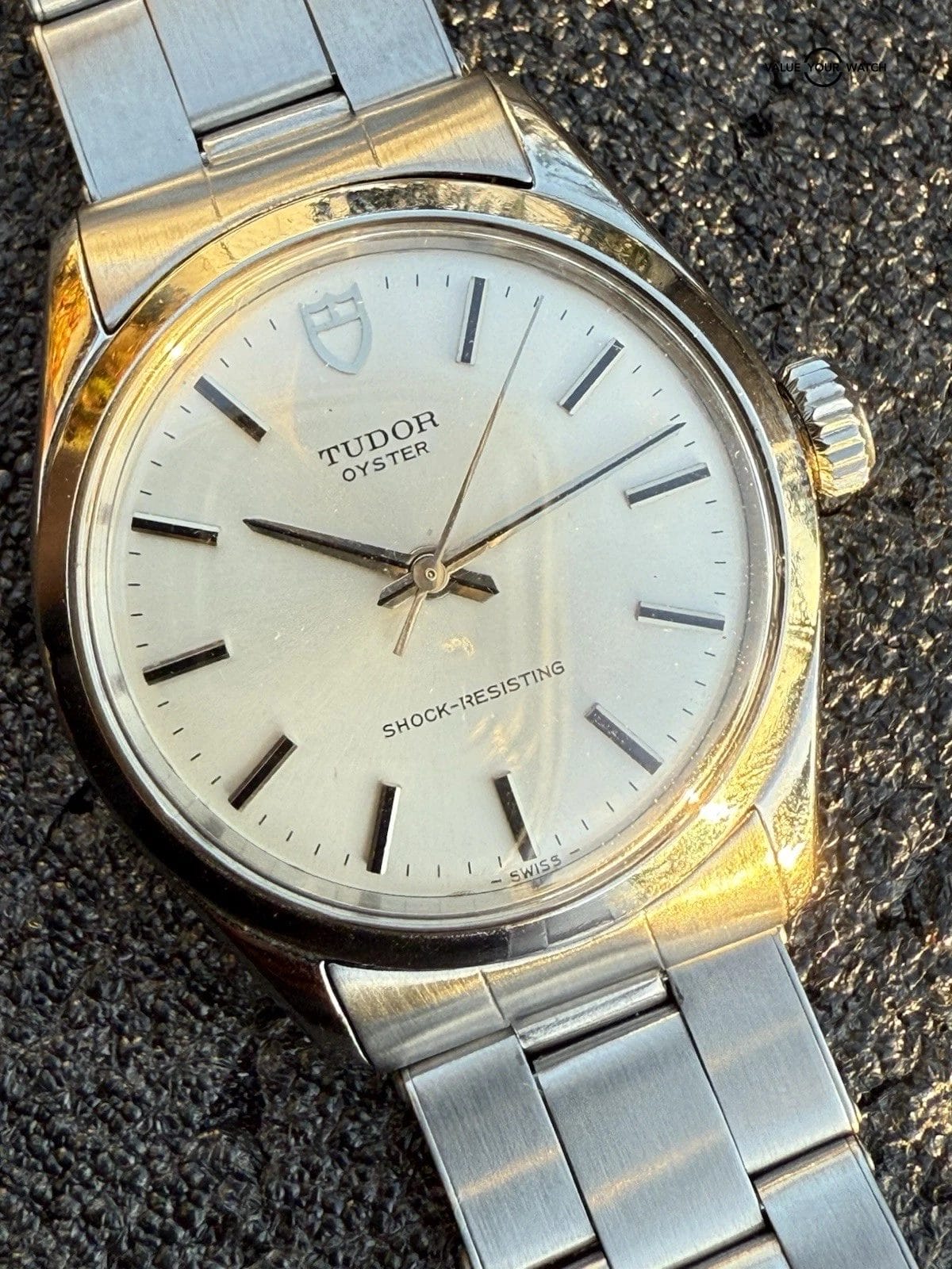 Original Small Rose dial was replaced with a newer Tudor service dial. Family unsure when this was done. Recommend sending it to eBay authentication for peace of mind.