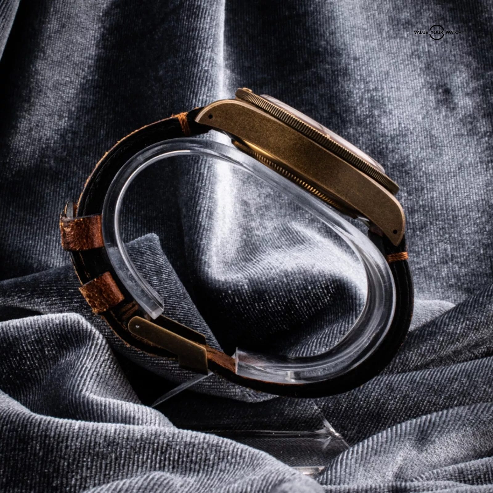 Bezel: Unidirectional Rotatable Bronze Bezel with 60-minute Graduated Disc