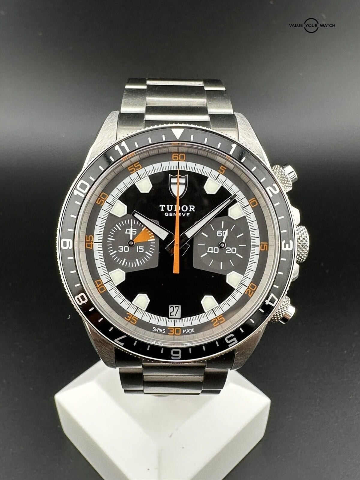 Features Date Indicator, Self-Winding, Sapphire Crystal, Swiss Made, Chronograph