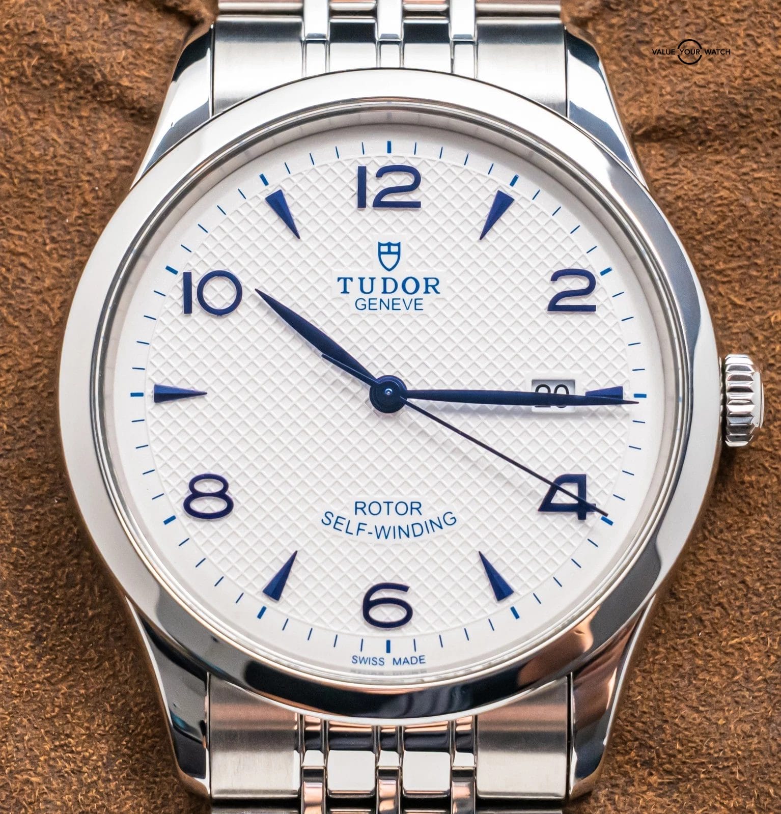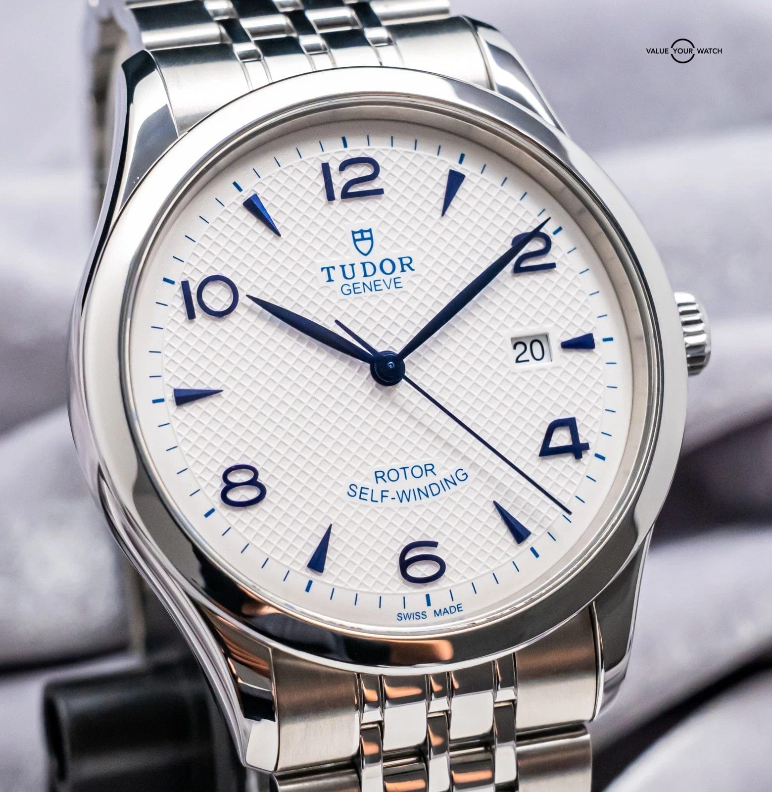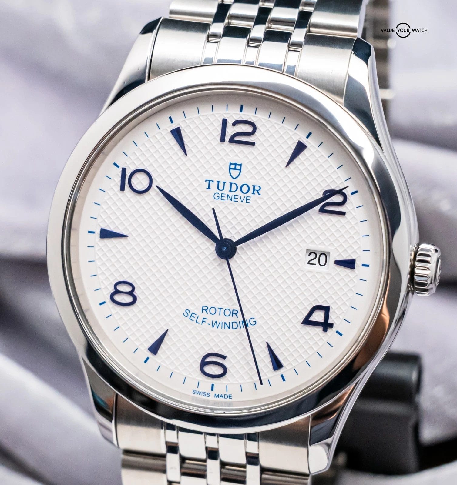STUNNING Tudor 1926 in Stainless Steel 41 mm with Opaline White & Blue Dial on Bracelet! Arrives as a significant value on the secondary market. Very nice mens’ piece from Tudor at an attractive price point, with the Hot White & Blue Color Combination!