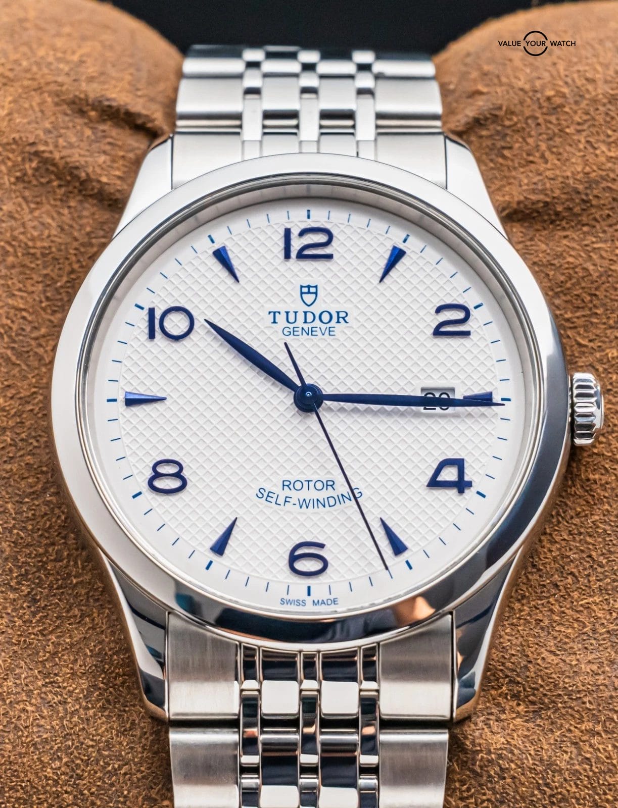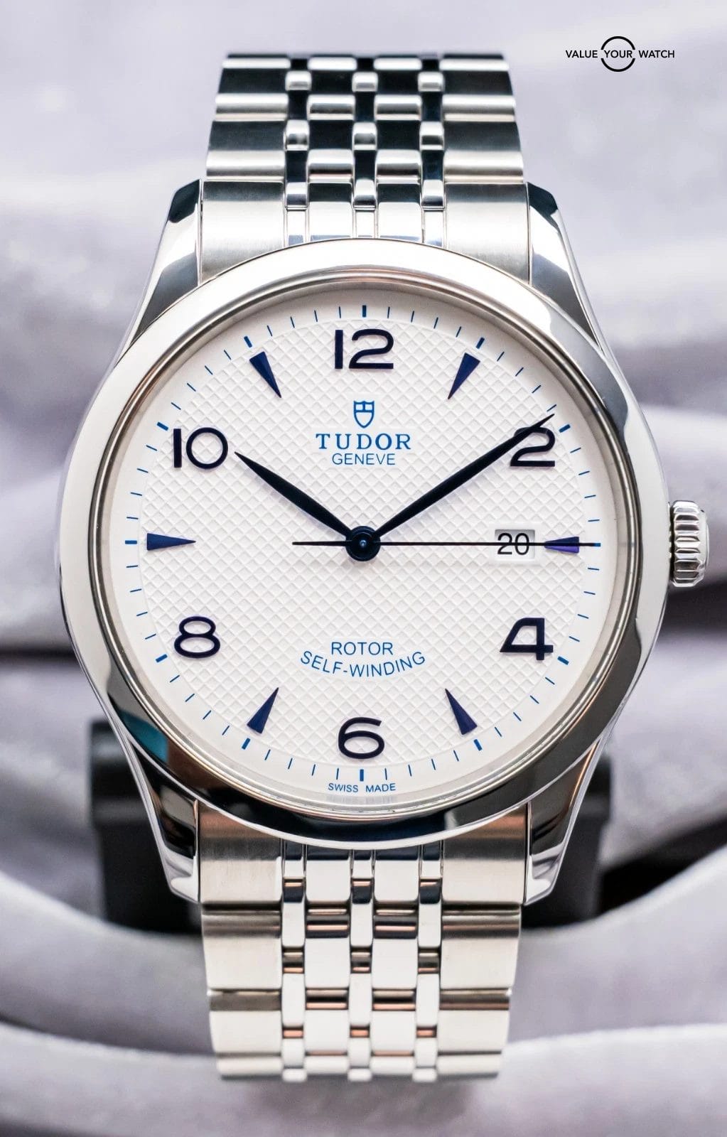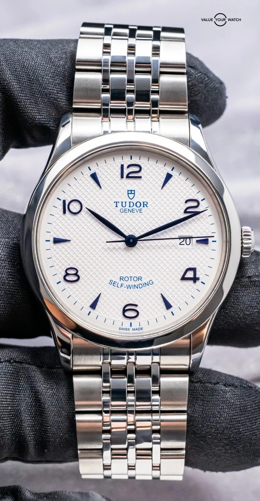 STUNNING Tudor 1926 in Stainless Steel 41 mm with Opaline White & Blue Dial on Bracelet! Arrives as a significant value on the secondary market. Very nice mens’ piece from Tudor at an attractive price point, with the Hot White & Blue Color Combination!