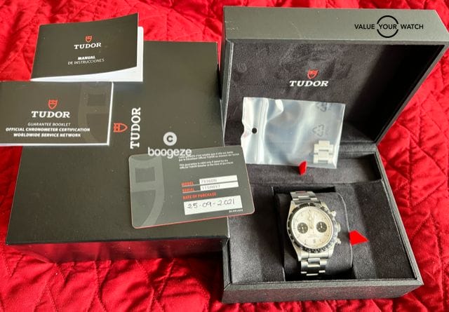 The warranty card is dated September 2021 and comes with 4.5 years of remaining Tudor warranty.