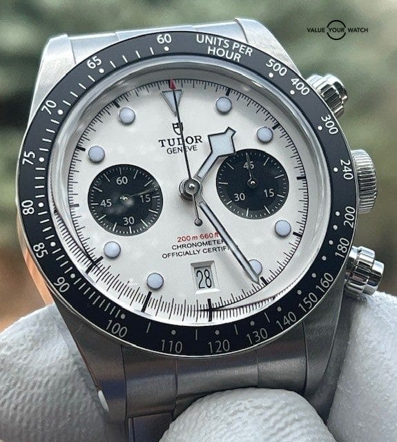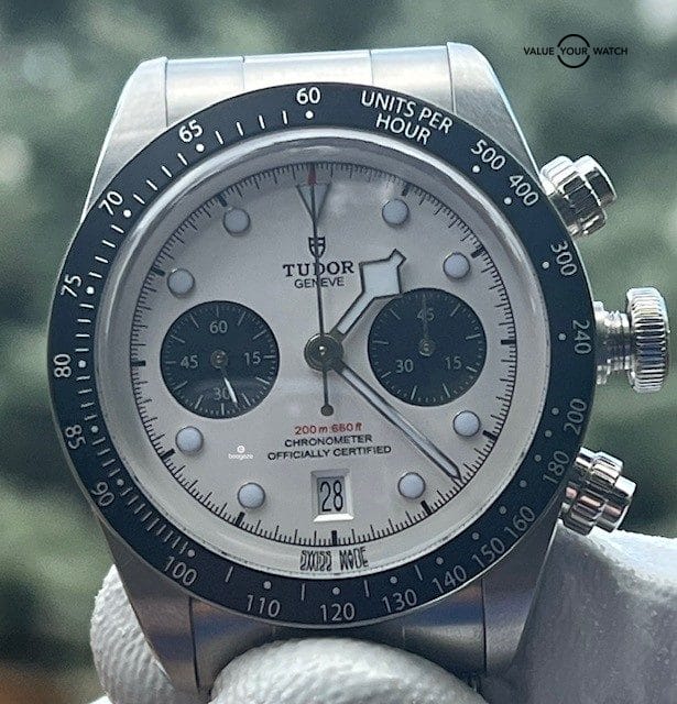 For your consideration is this excellent condition and highly sought after 41mm Tudor Black Bay Chrono with the white dial. Please see photos and condition grade which are an accurate representation of this striking chronograph. Gear Patrol calls this new (as of 2021) model from Tudor a “classic mid-century configuration that represents the pinnacle of chronograph aesthetics.” I couldn’t have said it better myself.