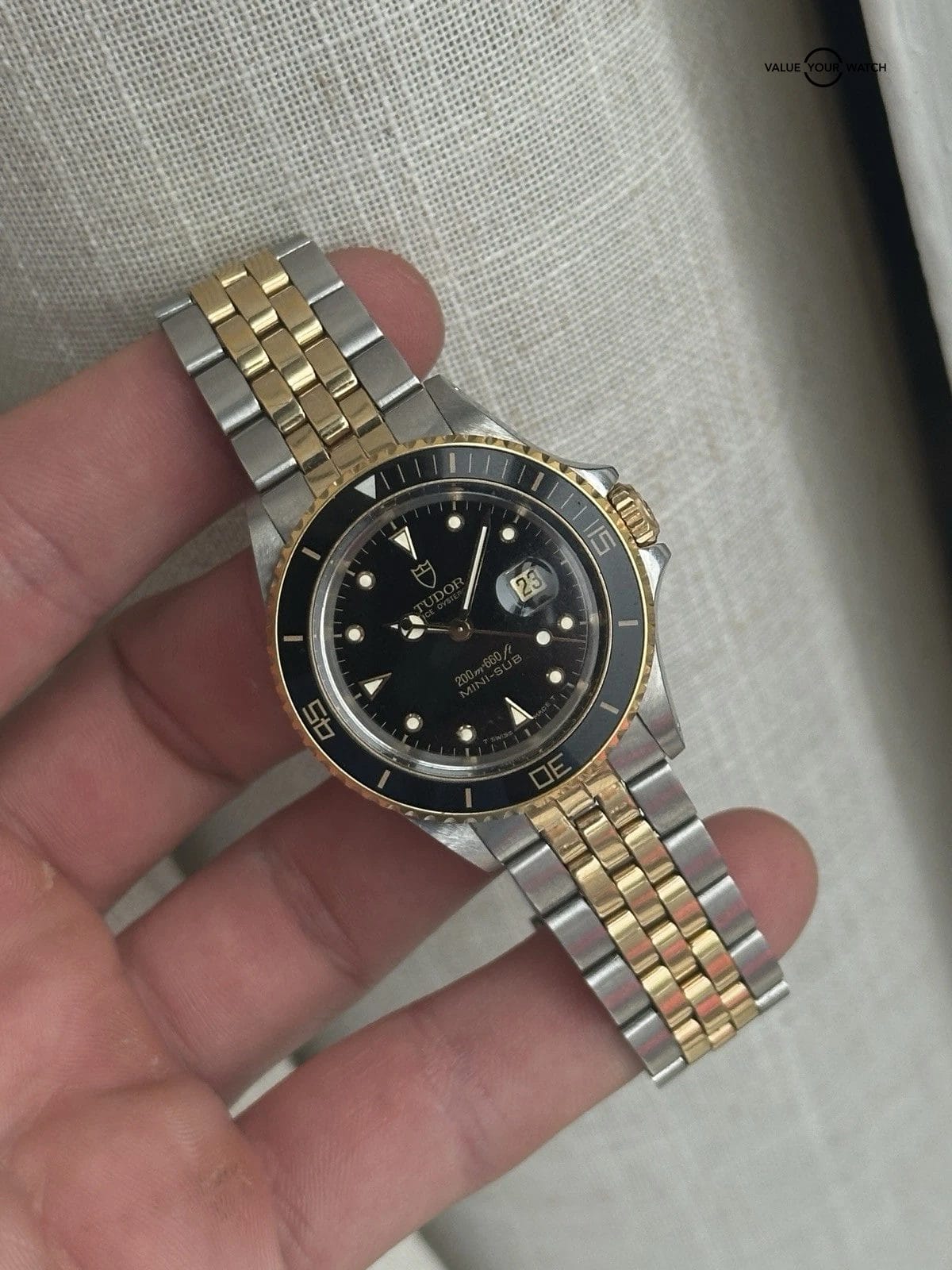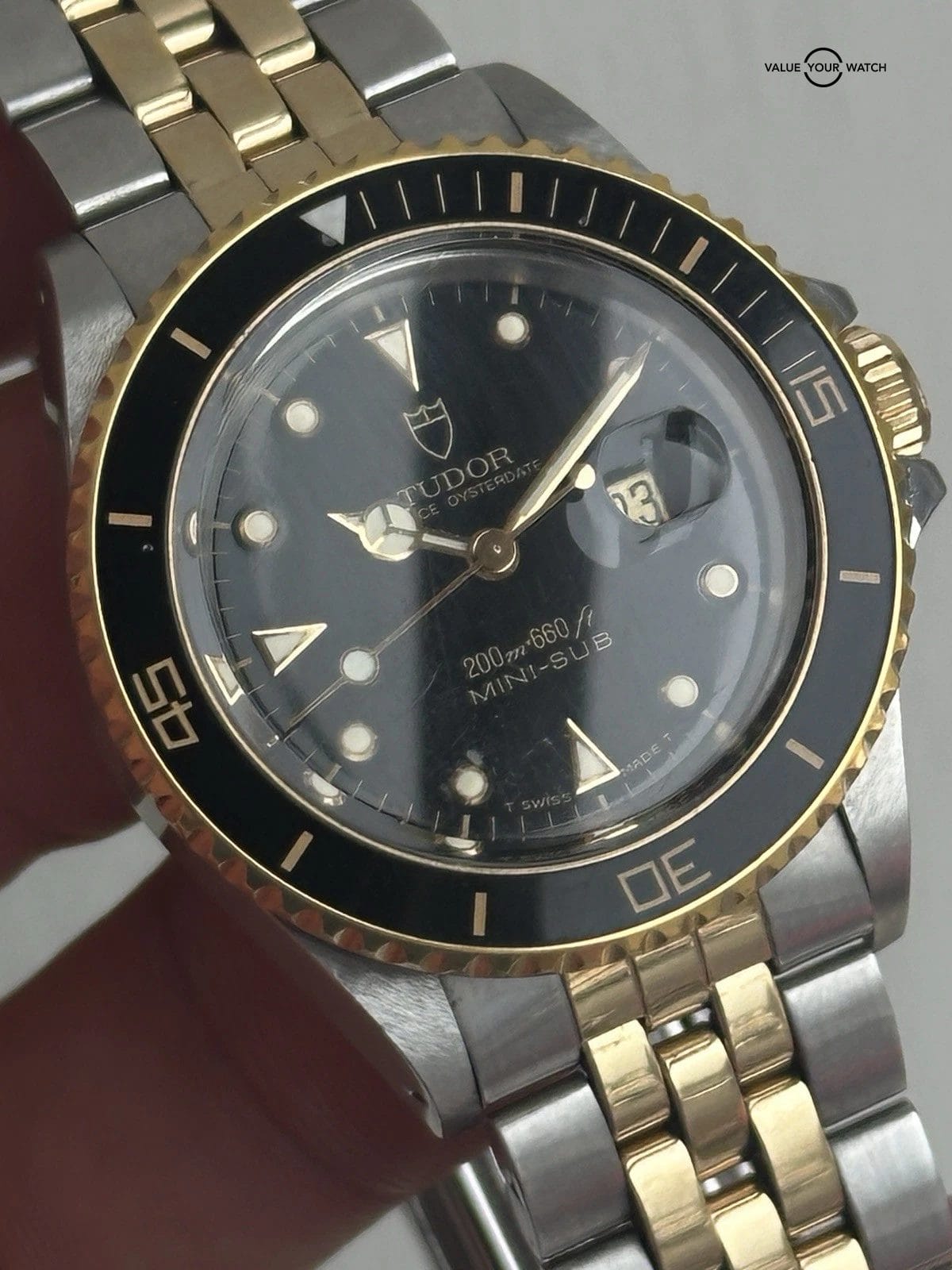Specification: TUDOR Mini Sub Prince Oyster Date 73091 YG bezel Cal.2671 Automatic
