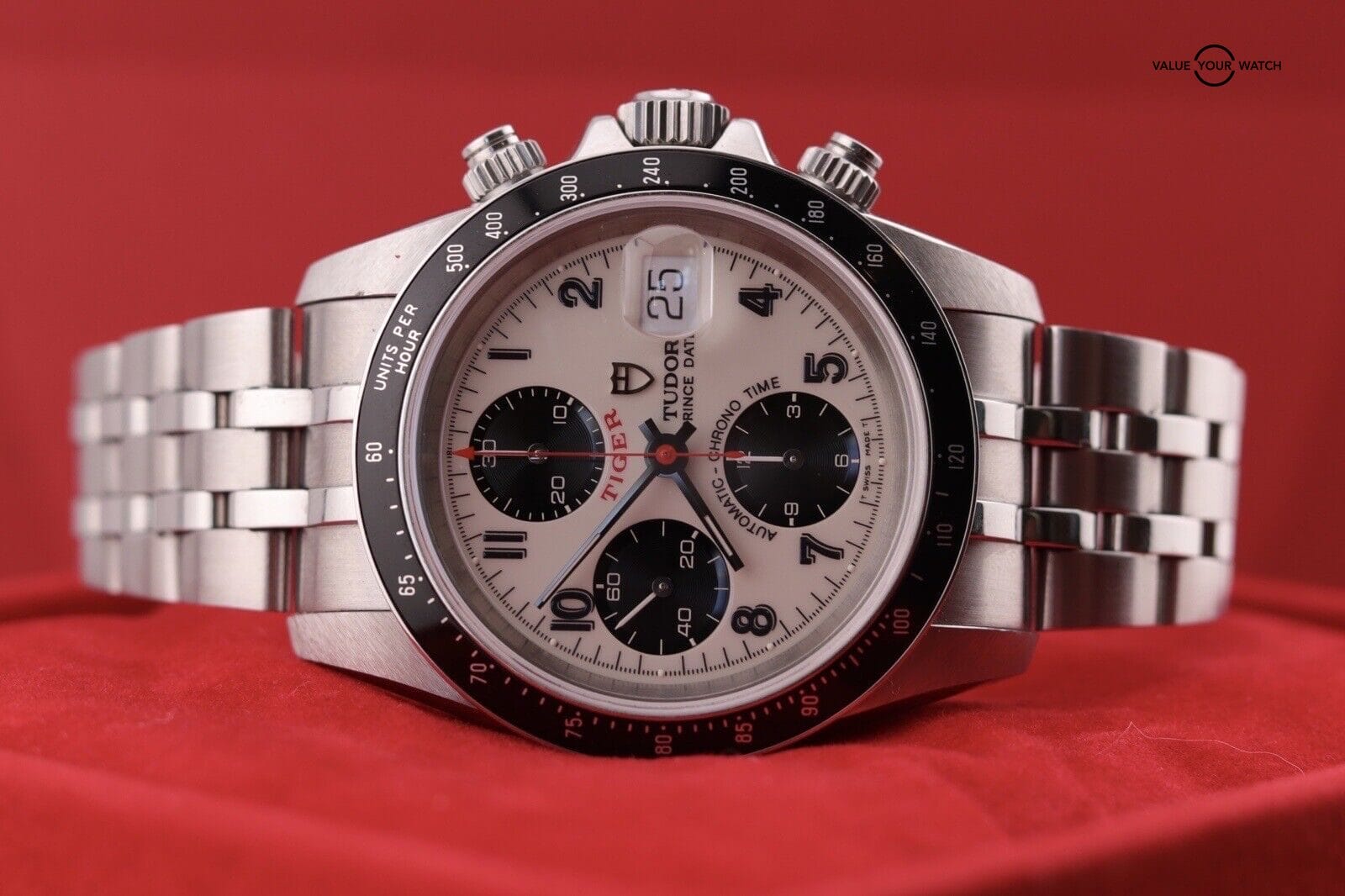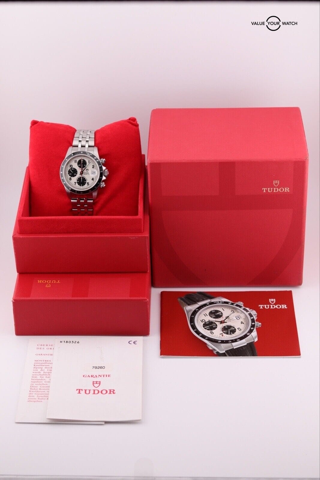 Research the current market to set a realistic price for the TUDOR Tiger Prince Date Chronograph 79260. The price should reflect the watch’s condition, rarity, and the completeness of original accessories and documentation.
