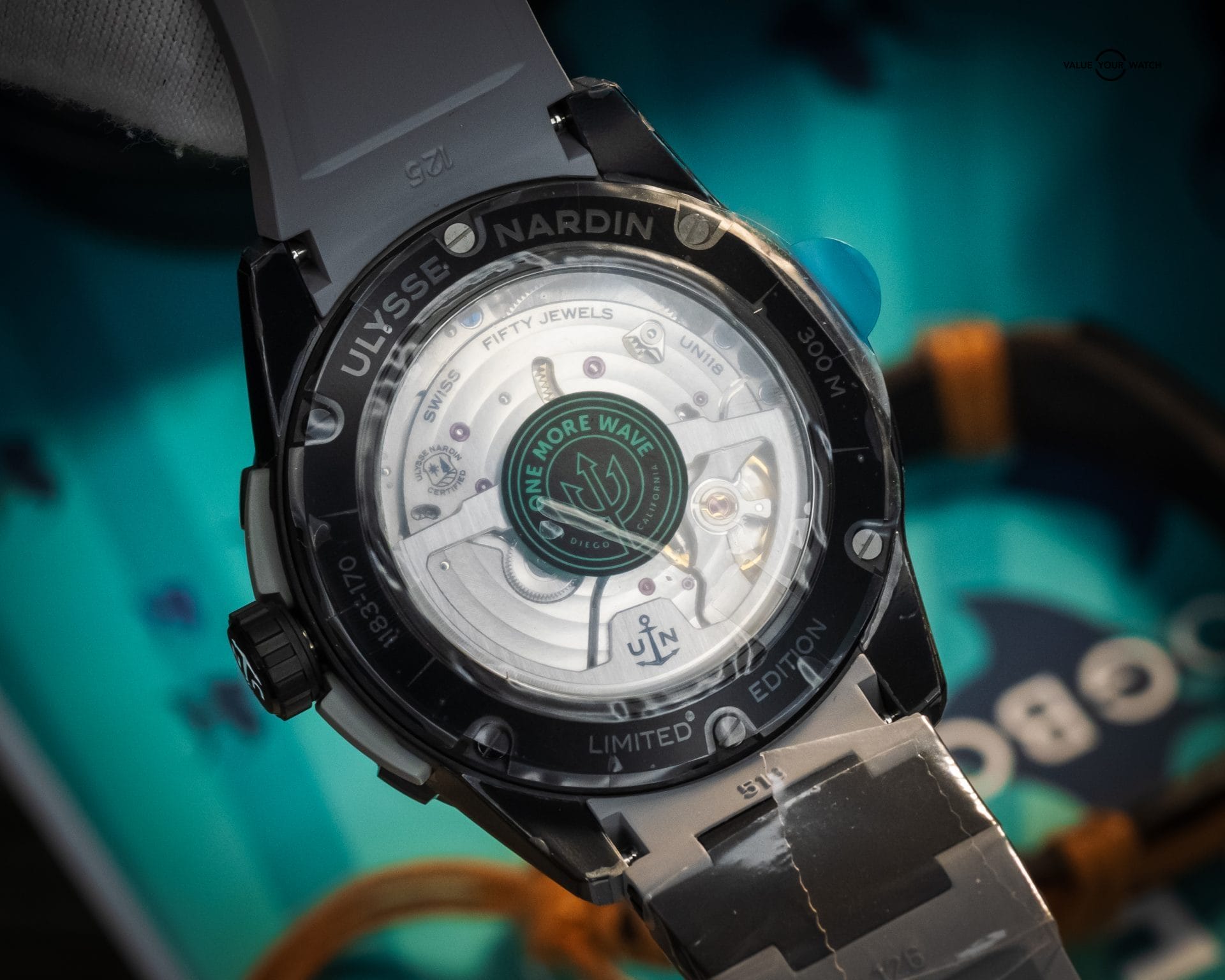 The inscription “San Diego, California” on the case back anchors the watch to the heart of the One More Wave community, making it a collectible with a profound story.