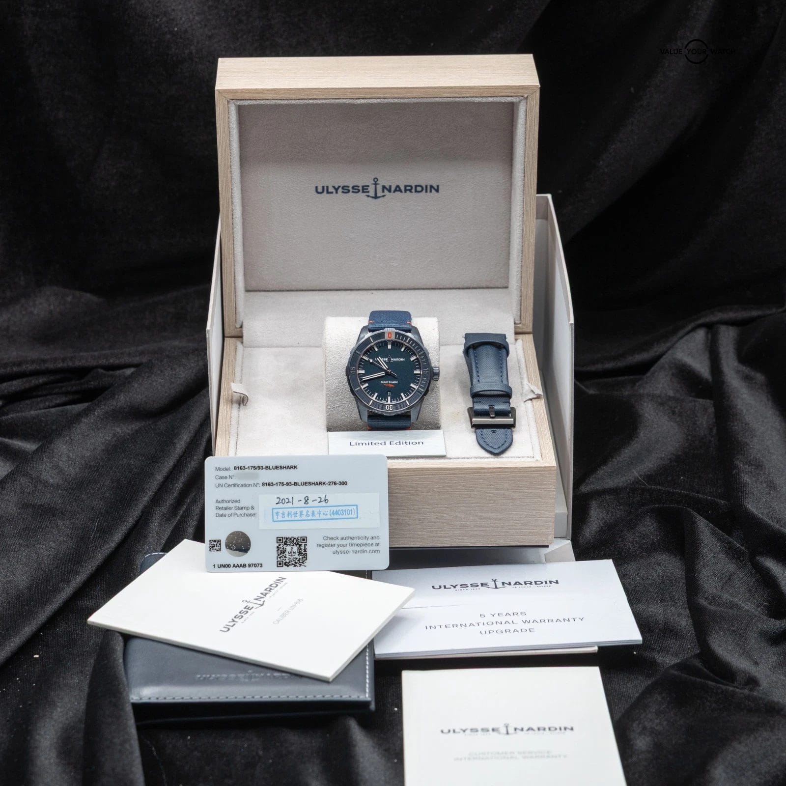Comes as a full set of box, booklets, and papers, with the warranty cert dated in 2021. Also includes a very nice Artem strap as pictured!