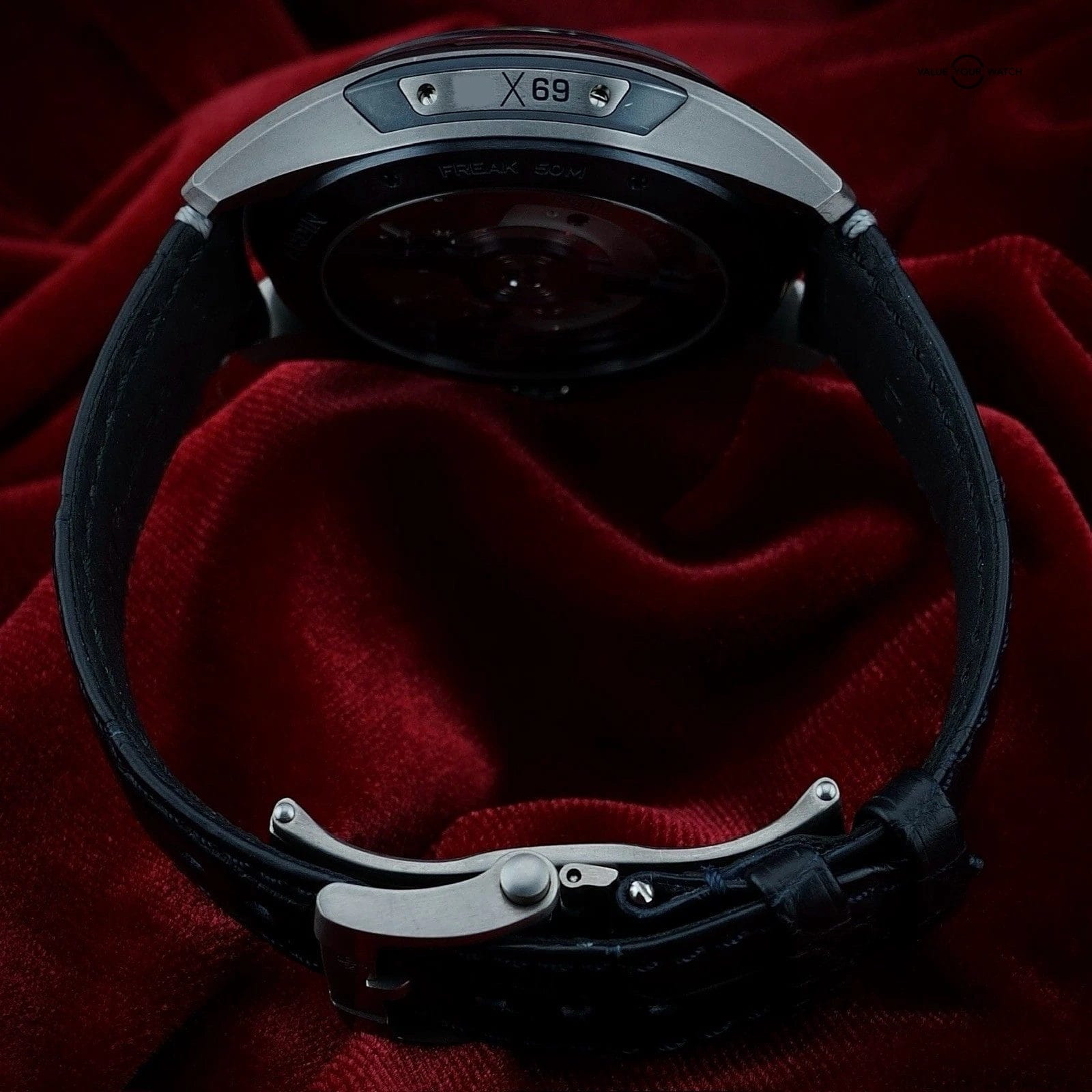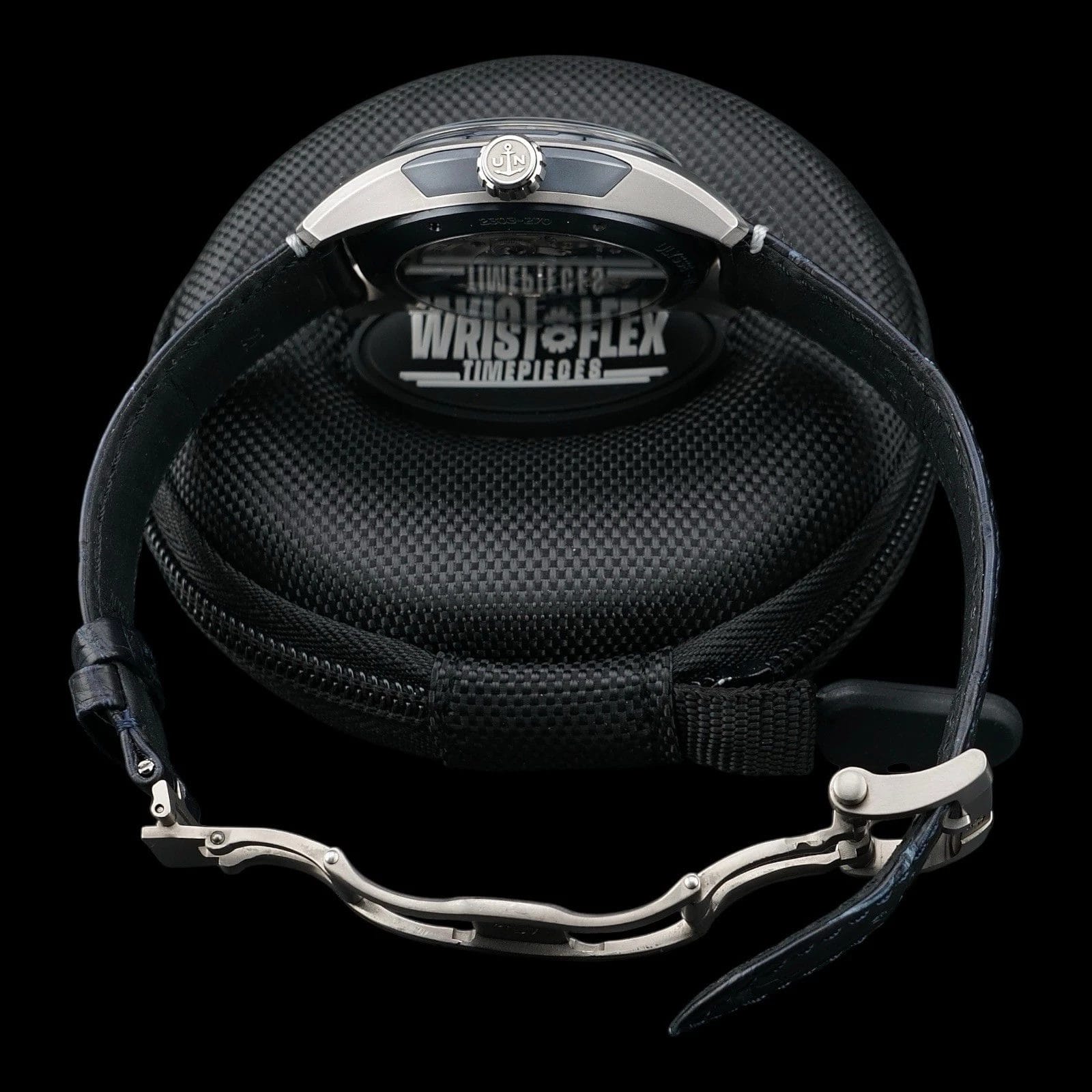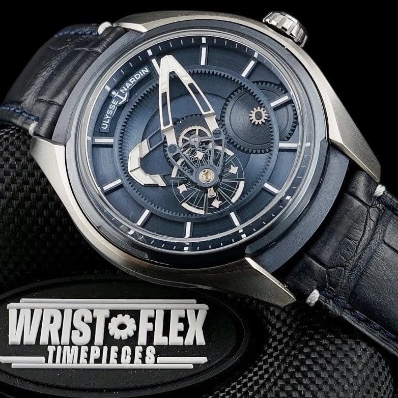 The Freak X blue titanium is the reference serious collectors keep coming back to. The open worked skeleton dial and flying carrousel are the whole point. The UN-230 caliber rotates as the display, no hands, no traditional dial architecture. In the blue titanium configuration the color runs through the case, accents, and strap as a complete composition.
