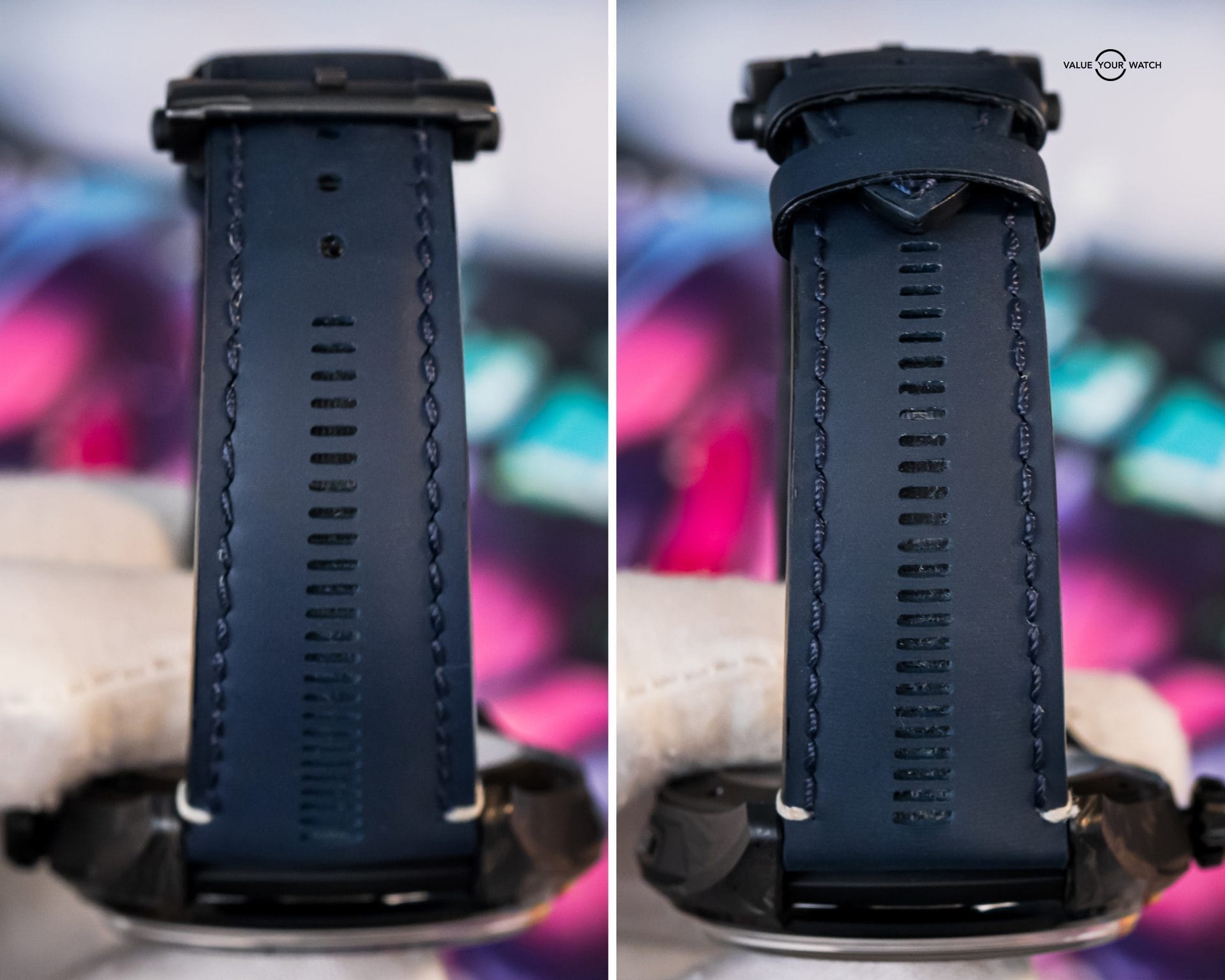 - Bracelet – OEM blue calfskin with deployant clasp.