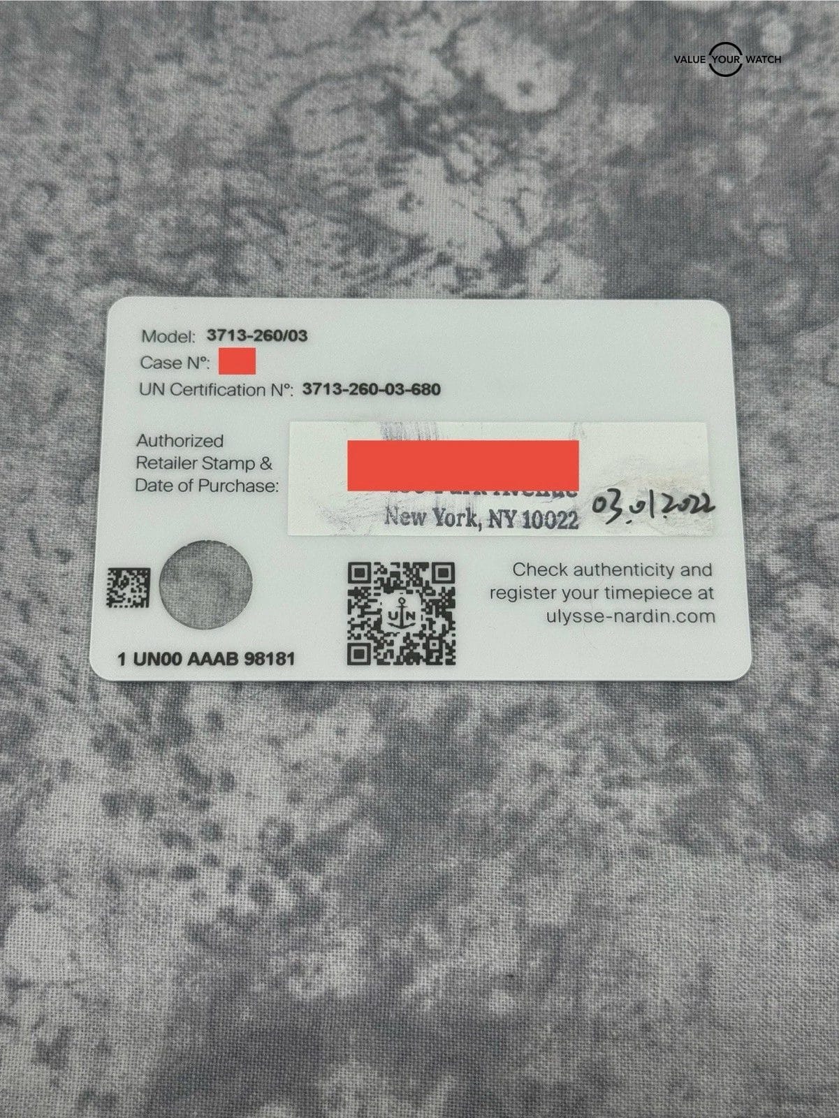 Condition: Excellent condition, little to no wear. Watch was recently serviced by Ulysse Nardin as well